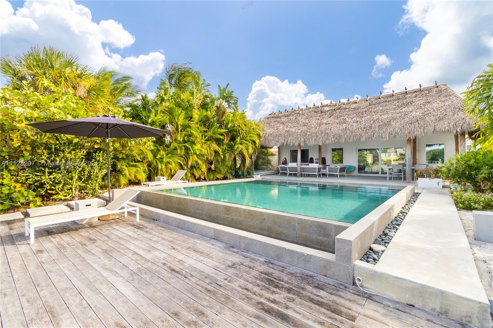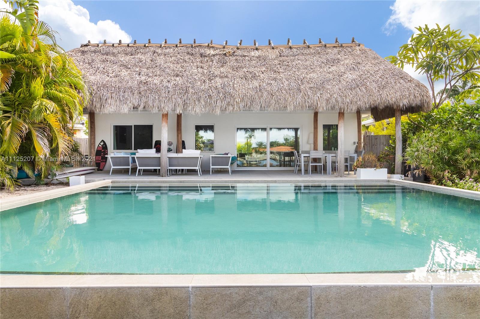 Perfect Beach House! Renovated waterfront Miami Beach house designed for beach lovers. The home features 4 bedrooms, 3 full bathrooms, distributed into a comfortable floor plan with the kitchen and main dining/living areas overlooking the water. Enjoy barbeques and time with friends outside under the Tiki Hut, take a dive in the heated pool, or a boat ride right from the comfort of your home. Sitting area included at the beautiful front porch surrounded by lush landscape. The home features a 1 car space, laundry room, and 50" of water frontage. Conveniently located in Biscayne Point area, close to the beach, shopping, and restaurants.