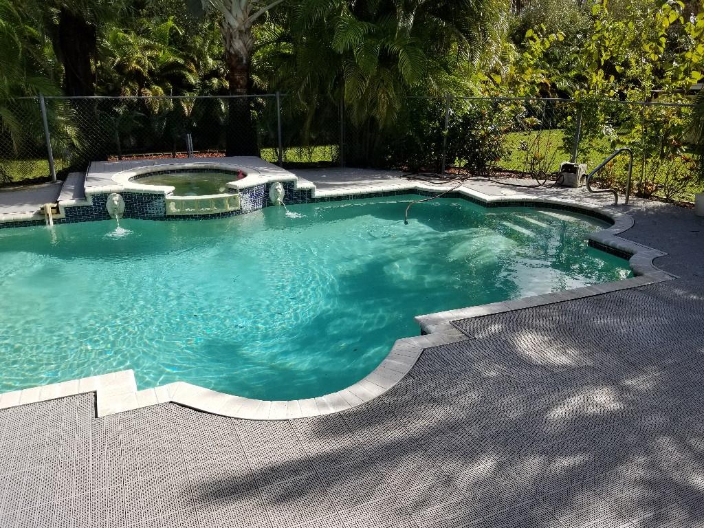 Nice executive style home. Very private. Many, many fruit and exotic palm trees. 1.23 acre lot. Large Roman Style Sports Pool with Spa, Disco Lighting and Soft Pool Deck. Detached 1200 sq ft concrete block, fully finished workshop with 3 phase elec, raised loading dock, bathrooom, A/C and hot water. Country-Style Living only 7 minutes from I-95 and Multiple Shops and Restaurants.