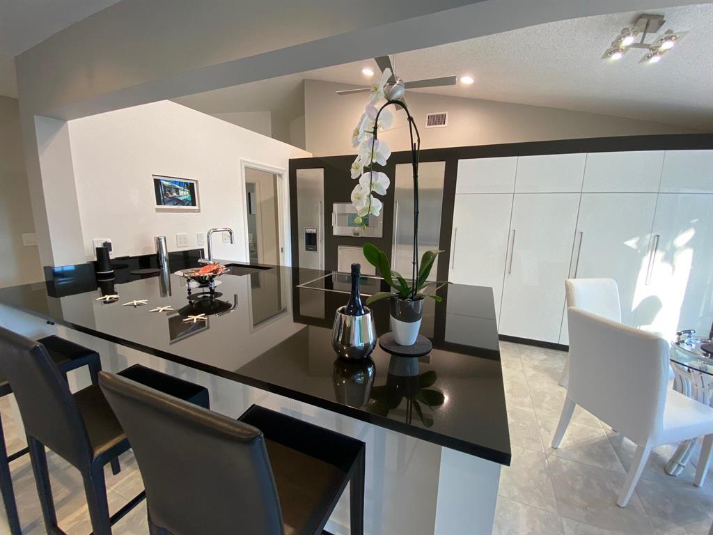 This move-in ready designer pool home was completely renovated both inside and out in 2021...located on an oversized corner lot in desirable Hidden Lake community in East Boca Raton, this stunning tropical reteat features very clean, contemporary design using only the finest natural premium materials. The custom built high end kitchen features Gaggenau and Thermodor appliances, an oversized granite counter top island in Nero Assoluto, with only the finest of fixtures available throughout..brand new white oak flooring in two bedrooms, LED lighting throughout, both bathrooms beautifully outfited with Porcelanosa natural granite tiles and corian, Grohe fixtures and so much more! Oversized, fully fenced private lot with only one direct neighbor offers the tropical FL lifestyle of dreams...
