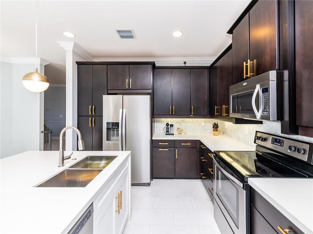 4/2.5 plus loft, pool, & 2 cg. This beauty offers impact windows & doors, remodeled kitchen w/ quartz waterfall island, wood cabinetry, marble back splash, SS apps. & breakfast area. Dual A/C, tile roof, porcelain tile on first floor, spacious master suite w/ tray ceilings, & walk-in closets, Mstr bath w/ dual vanities, tub & shower, laundry rm w/ cabinets, tub, & W/D. Volume ceilings, foyer, 8’ interior doors & freshly painted 2017. Formal dining, living & family rm have French doors overlooking the pool. Recent upgrades include new A/C 2021, built-in cabinet w/ wine fridge, porcelain tile floors, irrigation system, outdoor lighting w/ motion sensors, doorbell camera (nest), fans, lighting i.e. recessed led lights, powder rm renovated w/ floating vanity & quartz counter.