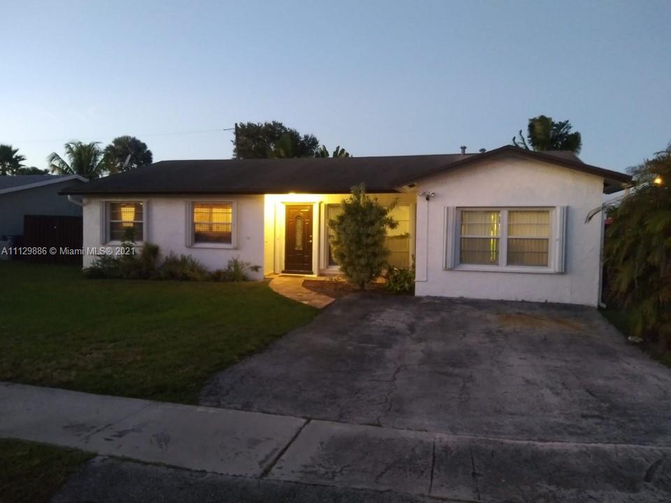 Just hitting the market, property for sale at 11301 Northwest 31st Street, Sunrise, FL 33323, USA. CBS POOL Home situated on a corner lot. Has 4 bedrooms, 2 full baths, tiled floors, screened inground pool with covered patio, fenced back yard for privacy, Storm shutters. Kitchen has a beautiful granite countertop and matching appliances. The garage has been converted and has central AC and is currently being used as an office but it has plenty of room to use as a 4th bedroom. A/C less than 8 yrs old, and Hot Water Heater less than 5 yrs. old. This home is a must see, owner occupied