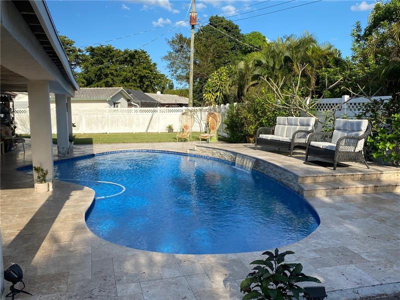 This spacious 4 BR 2 BA single-story home is located in a quiet, family friendly neighborhood in Coral Springs and is easily accessible to all highways and the Seminole Casino in Coconut Creek. The large Chicago brick driveway can easily fit up to 8 cars and leads to a 2-car garage with storage. The backyard boasts a newly remodeled pool with a travertine deck and peaceful waterfall feature alongside an impressive, large grass yard and covered patio. Inside, the home offers a formal living room, family room, a formal dining space, and a breakfast nook off of the kitchen. The kitchen lies at the heart of the home and features stainless steel appliances and granite countertops. Air conditioning was replaced a few years ago, and new impact windows and doors have been installed.