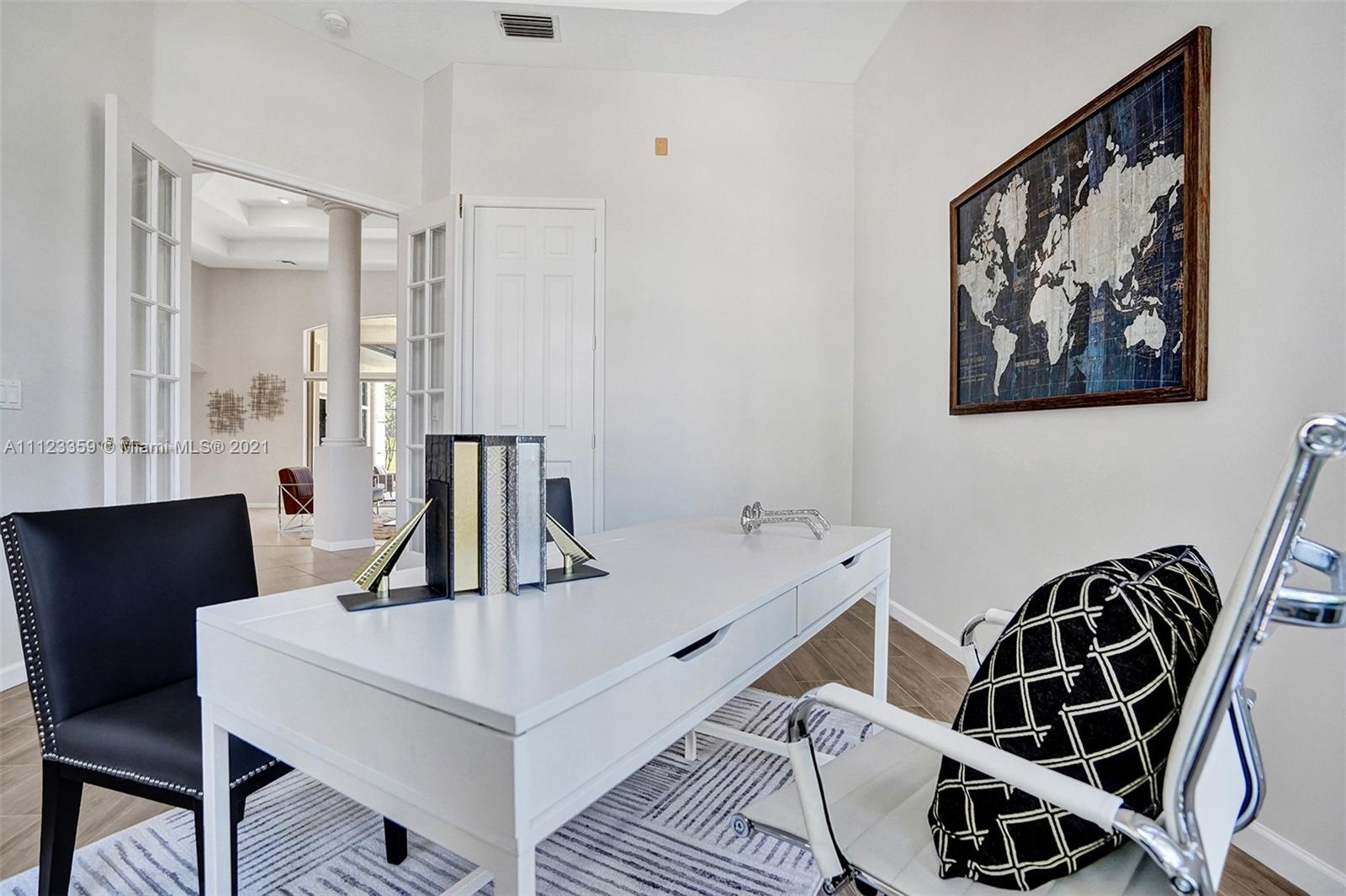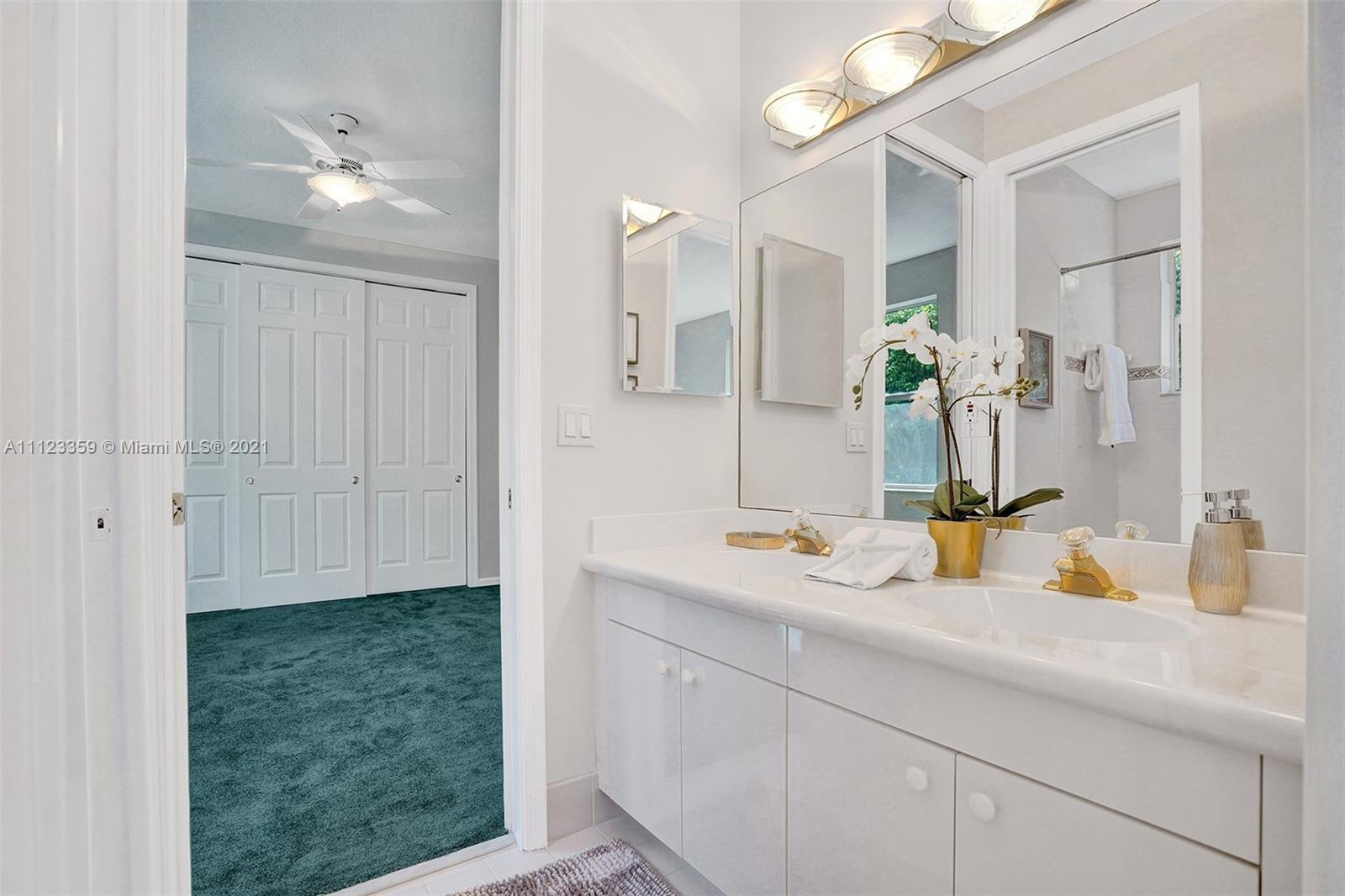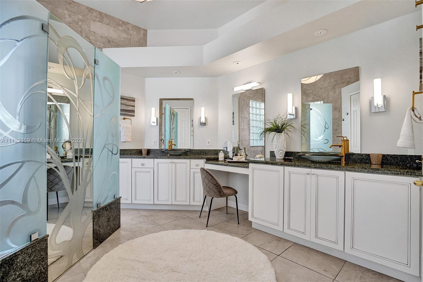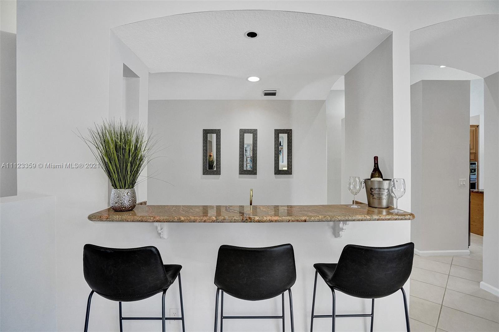 TUCKED ON A ROYAL PALM TREE LINED STREET. THIS MAGNIFICENT HOME BACKS TO GOLF WITH A SCREENED PATIO WITH POOL AND SPA. OVERSIZED 15,046 SQUARE FOOT LOT TO ENJOY. GRAND CIRCULAR PAVER DRIVEWAY WELCOMES YOU HOME. FULL ACCORDION PROTECTION. CUSTOM ONE STORY FRESHLY PAINTED IN TODAY'S NEUTRAL COLORS. PRIMARY BEDROOM HAS FRENCH DOORS TO THE POOL AND PATIO. TWO SPACIOUS CLOSETS WITH A RENOVATED BATH, DUAL SINKS, OVERSIZED SHOWER. KITCHEN WITH MAPLE WOOD CABINETS AND GRANITE COUNTERTOPS. NEUTRAL TILE FLOORING THROUGHOUT LIVING AREAS. GRAND BILLIARD/PLAYROOM (CAN BE CONVERTED TO BEDROOM) PLUS CABANA BATH.
