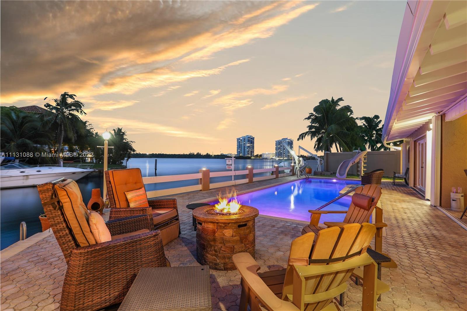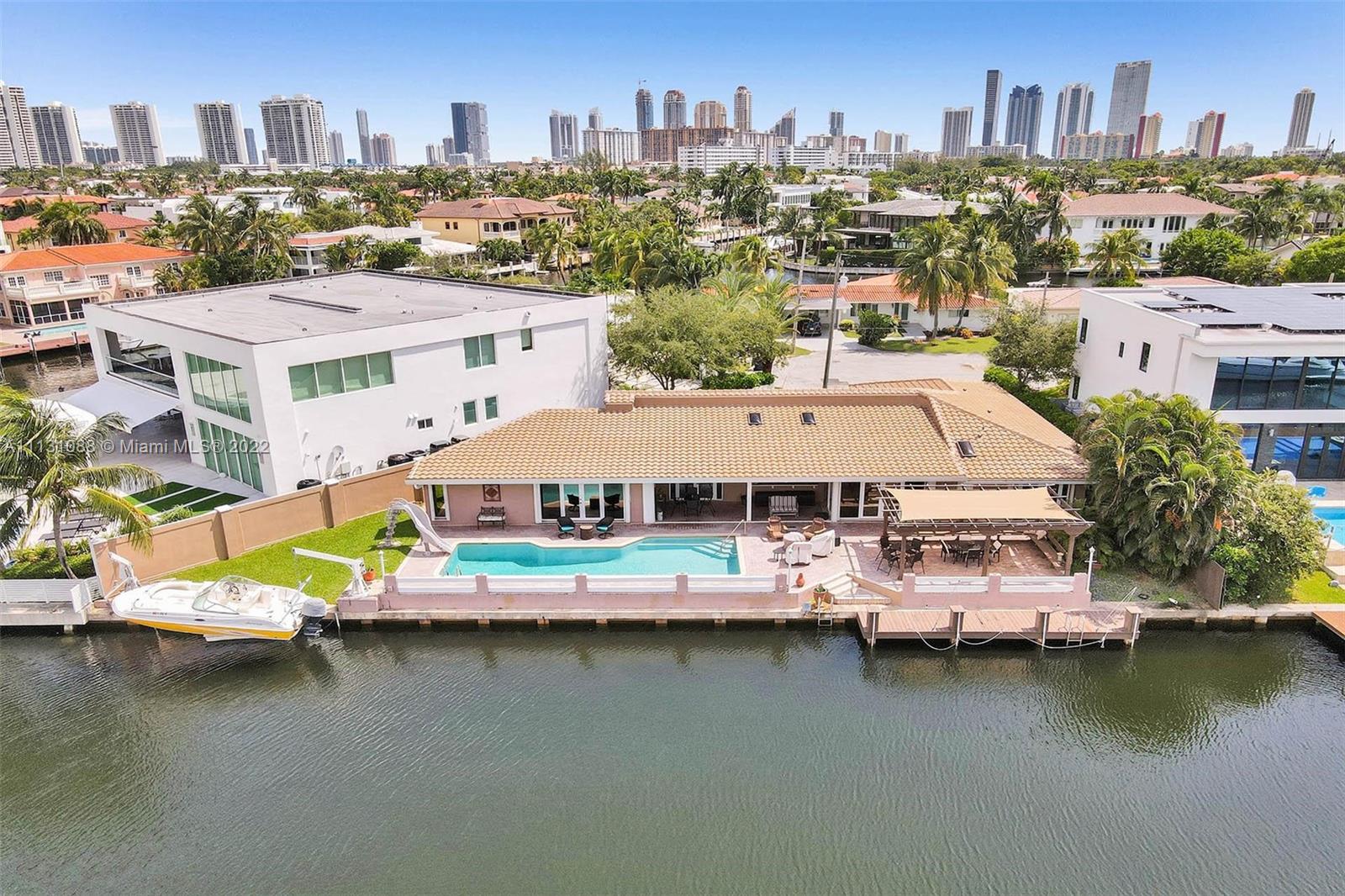 *** 135 Feet on Water with Spectacular and Panoramic Intracoastal Views *** Dock a large yacht with Ocean Access and No fixed bridges to Haulover Inlet. This home also boasts a backyard oasis that is perfect for entertaining with an oversized pool and entertainment area. Fabulous one story home with volume ceilings and perfectly maintained! Over 3500 square feet. Split bedroom plan with views from every room. Rooms are spacious. Skylights allowing natural light to enter home. Perfect floor plan. New Barrel tile roof. You will be mesmerized with this view! Eastern Shores is a 24/7 Guard Gated community. Minutes to beaches. Walking distance to Ipic Movie Theatre, shopping and plenty of waterfront dining in the local area.