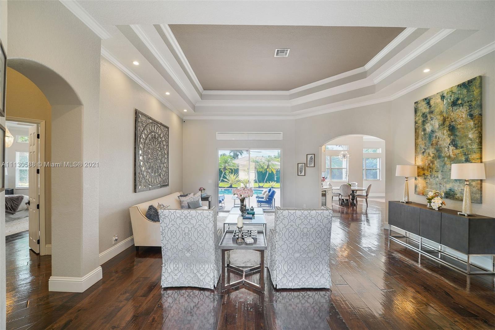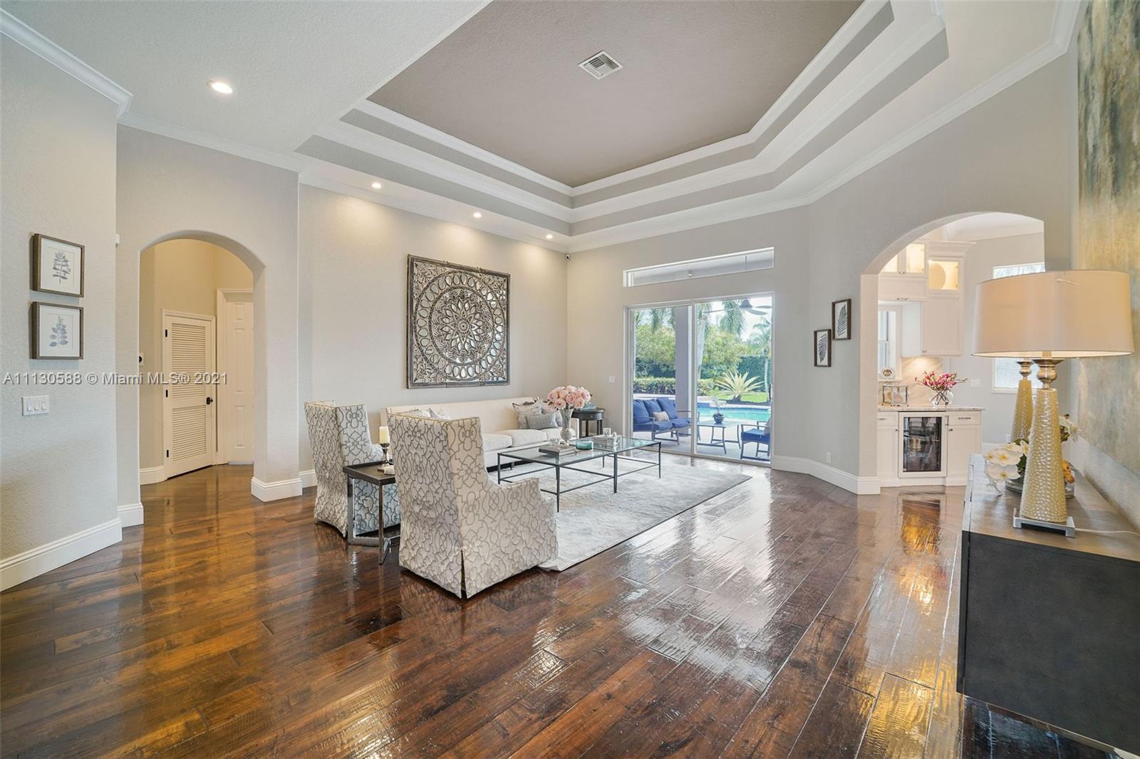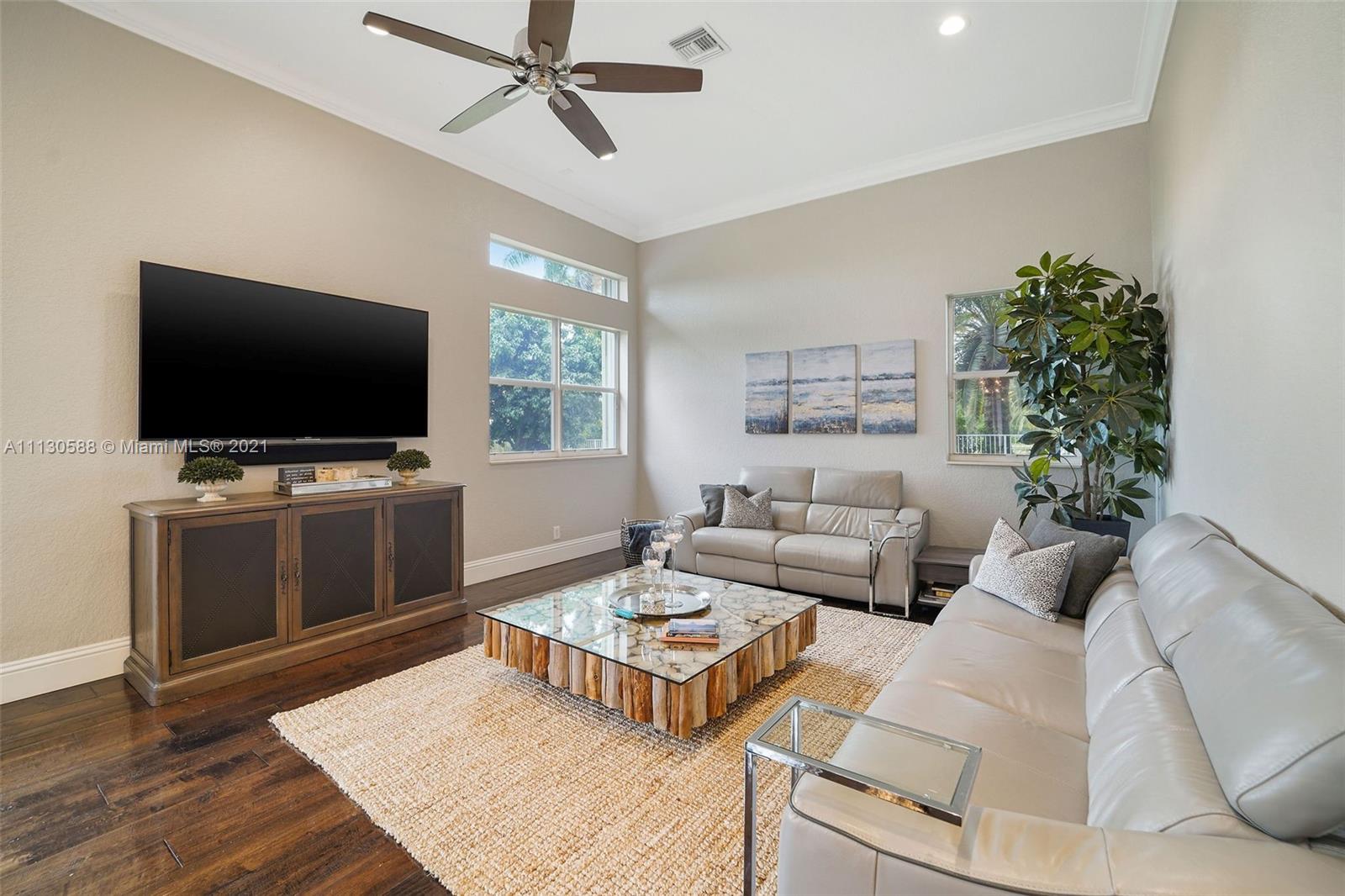 Spectacular 35,284 Lot in HIGHLAND RANCHES! This amazing 4 Bed 4.5 bath, UPSCALE POOL HOME has 3641 sf. ELEGANT living space. DEN/OFFICE/GYM OR optional bedroom. Private backyard paradise lined with tropical foliage, avocado & mango trees around freeform fountain pool. Stunning hardwood floors throughout invite you to the DREAMY WHITE KITCHEN with SUBZERO REFRIGERATOR, HIGH-END APPLIANCES, Open floor plan to the breakfast nook and entertainment room.WALK through 14 FOOT ceilings throughout, with designer chandelier & SMART HOME lighting. Master bed had spacious ensuite bath and custom high end closets. PERFECT FOR ENTERTAINING with easy access to outdoor space, indulging in ULTIMATE INDOOR/OUTDOOR FLORIDA LIVING.