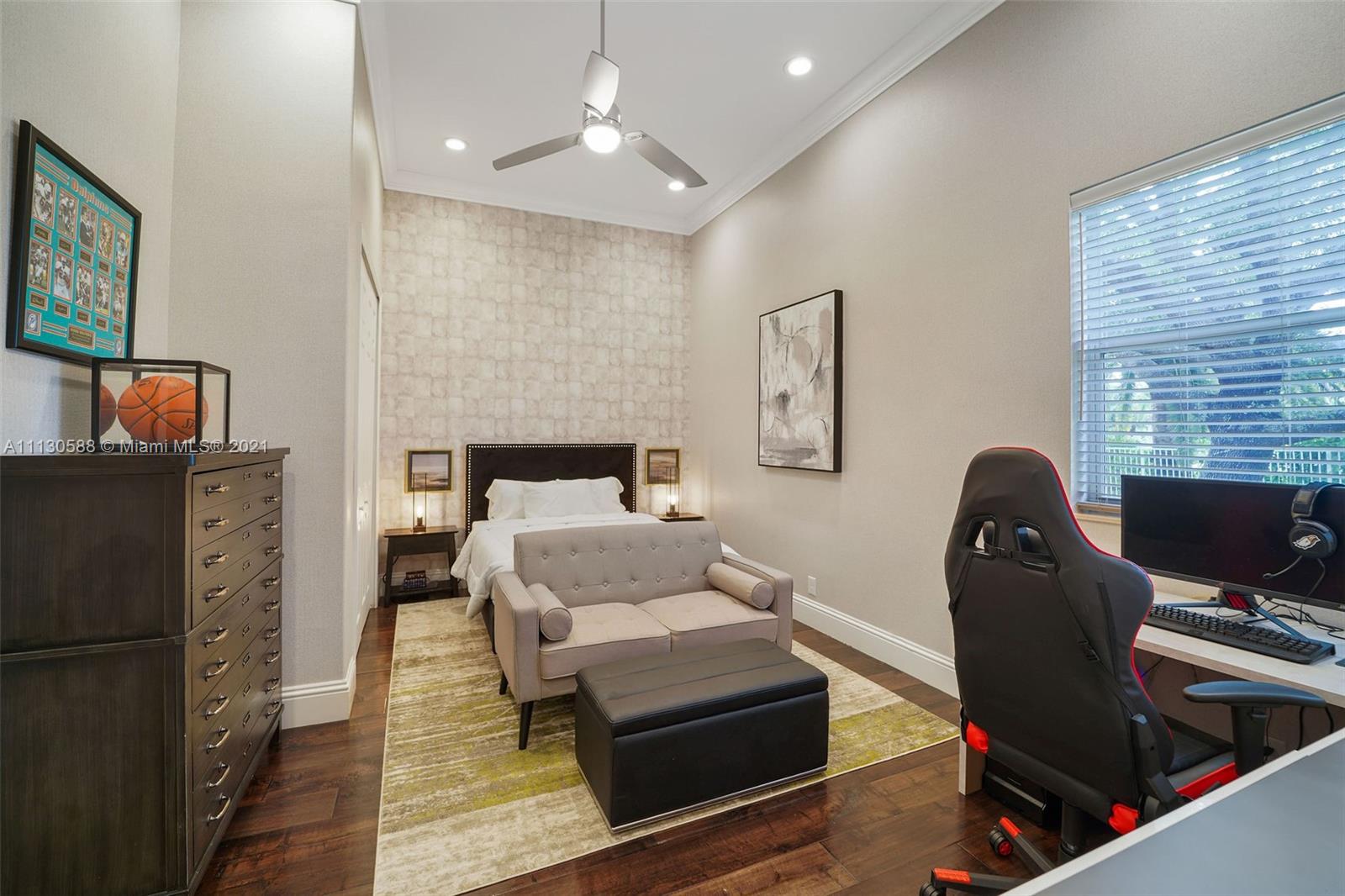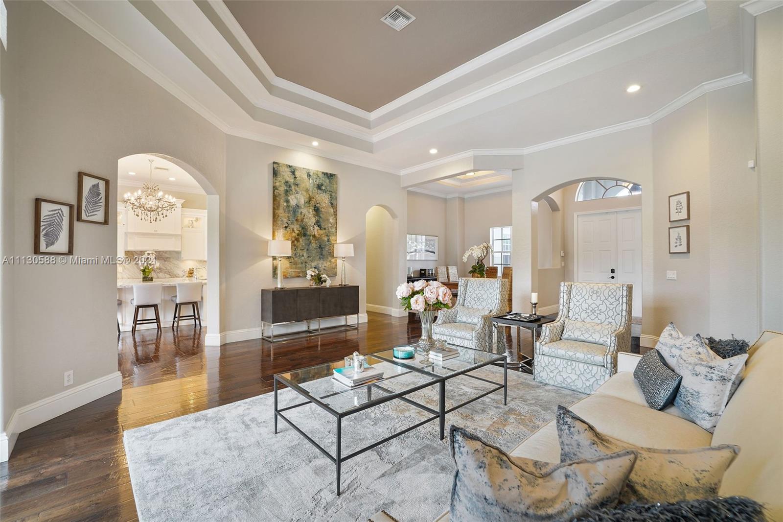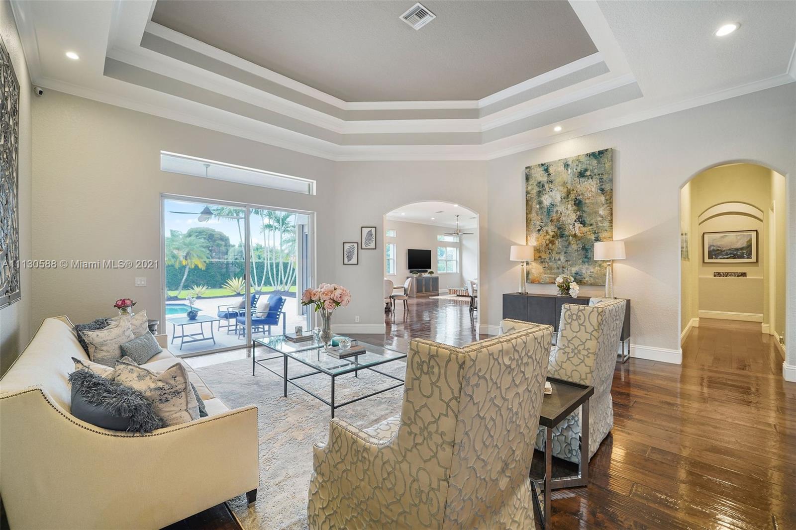 Spectacular 35,284 Lot in HIGHLAND RANCHES! This amazing 4 Bed 4.5 bath, UPSCALE POOL HOME has 3641 sf. ELEGANT living space. DEN/OFFICE/GYM OR optional bedroom. Private backyard paradise lined with tropical foliage, avocado & mango trees around freeform fountain pool. Stunning hardwood floors throughout invite you to the DREAMY WHITE KITCHEN with SUBZERO REFRIGERATOR, HIGH-END APPLIANCES, Open floor plan to the breakfast nook and entertainment room.WALK through 14 FOOT ceilings throughout, with designer chandelier & SMART HOME lighting. Master bed had spacious ensuite bath and custom high end closets. PERFECT FOR ENTERTAINING with easy access to outdoor space, indulging in ULTIMATE INDOOR/OUTDOOR FLORIDA LIVING.