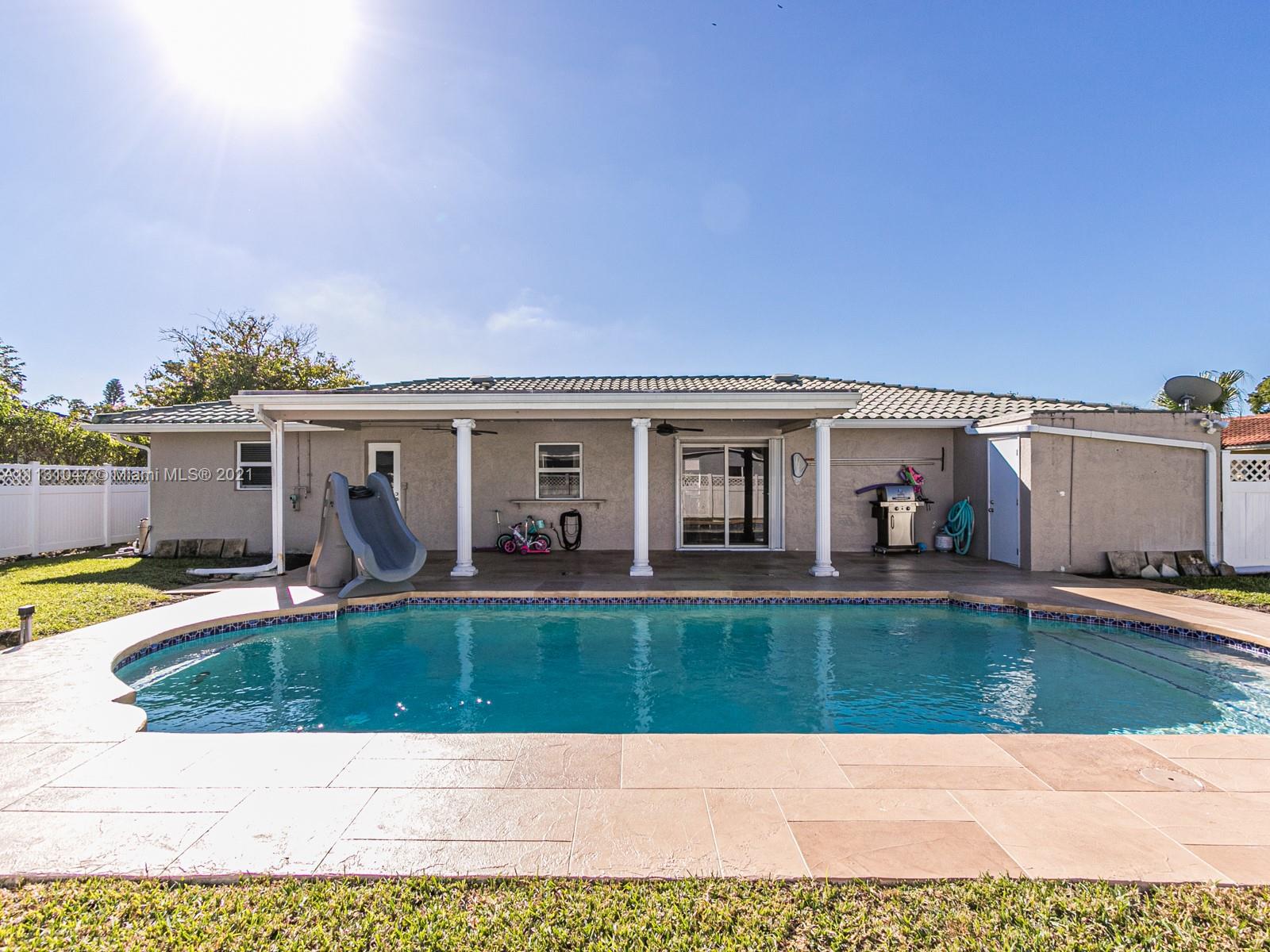 Gorgeous 3 Bedroom 2 Bath w/ salt water pool on 11,000+ sqft lot. Open floor plan with walls removed, large open style kitchen with Gas stove and huge serving area that fits 5+ bar stools. Great for entertaining inside and out. Multiple layout options to choose from with your dining room and living room. You will love this split floor plan with large master and a sauna/shower combo in the cabana style master bath. Large guestroom can fit a King size bed or 2 twins for kids. Updated cabana style guest bathroom as well. So much to love about this home, Move in ready! A/C 2019, Tile roof 2006, Pool resurface 2017, Hurricane impact windows (sliders with shutters). water heater 2017. Sellers looking for flexible closing option, see brokers remarks in listing. Showings begin immediately.