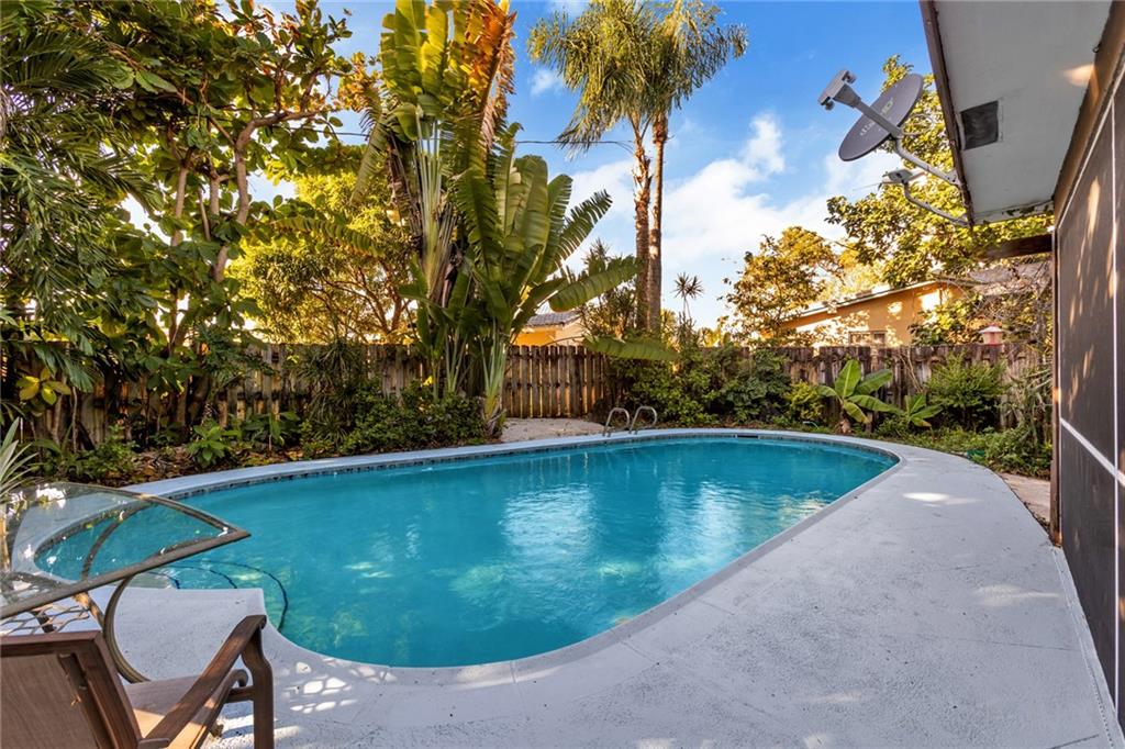 Back on Market. Great location, interior street, walk to Elem & high school. Just painted and knockdown ceilings. 3 bedrooms, 2 baths. This home has sliders from family room, living room and the bedroom. Master has full wall closet and large walk in closet with built in dresser. Floors are lamminate, ceramic tile and carpet in the living room. New stove, granite counter in kitchen Solar heated pool, electric connection for spa on patio. Screened patio, diamond brite pool with beautiful landscaping, great privacy and beach area. Yard is a must see. Beautiful fruit trees such as papaya, mango, banana, almond tree and beautiful trumpet plant New garage door, new A/c, sprinkler system, fenced, & alarm. New Dryer . No HOA .....Open House Sunday 12 to 3 PM-- JAN 2