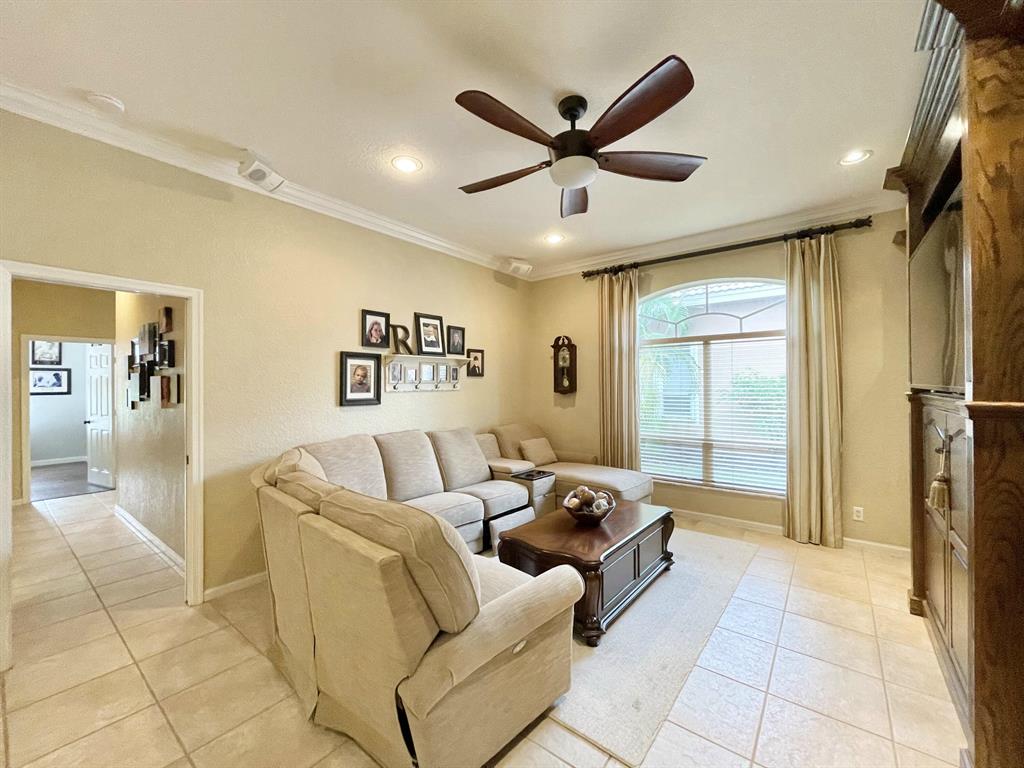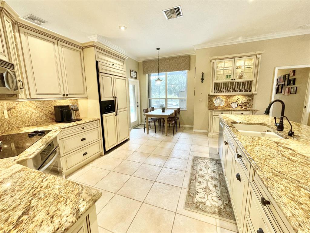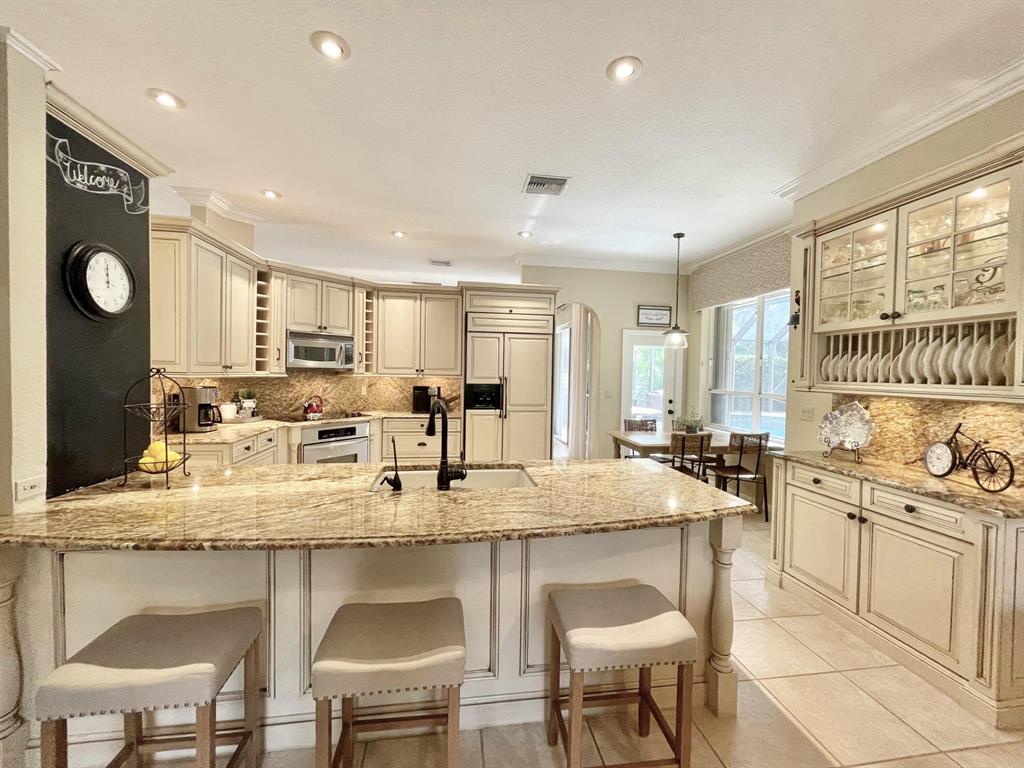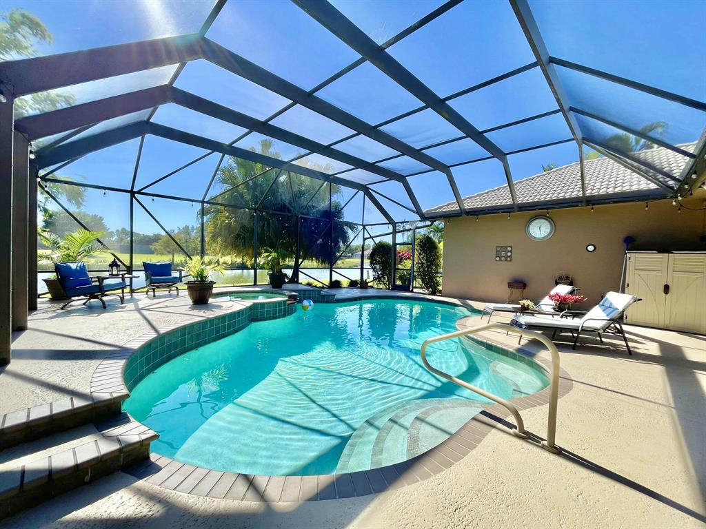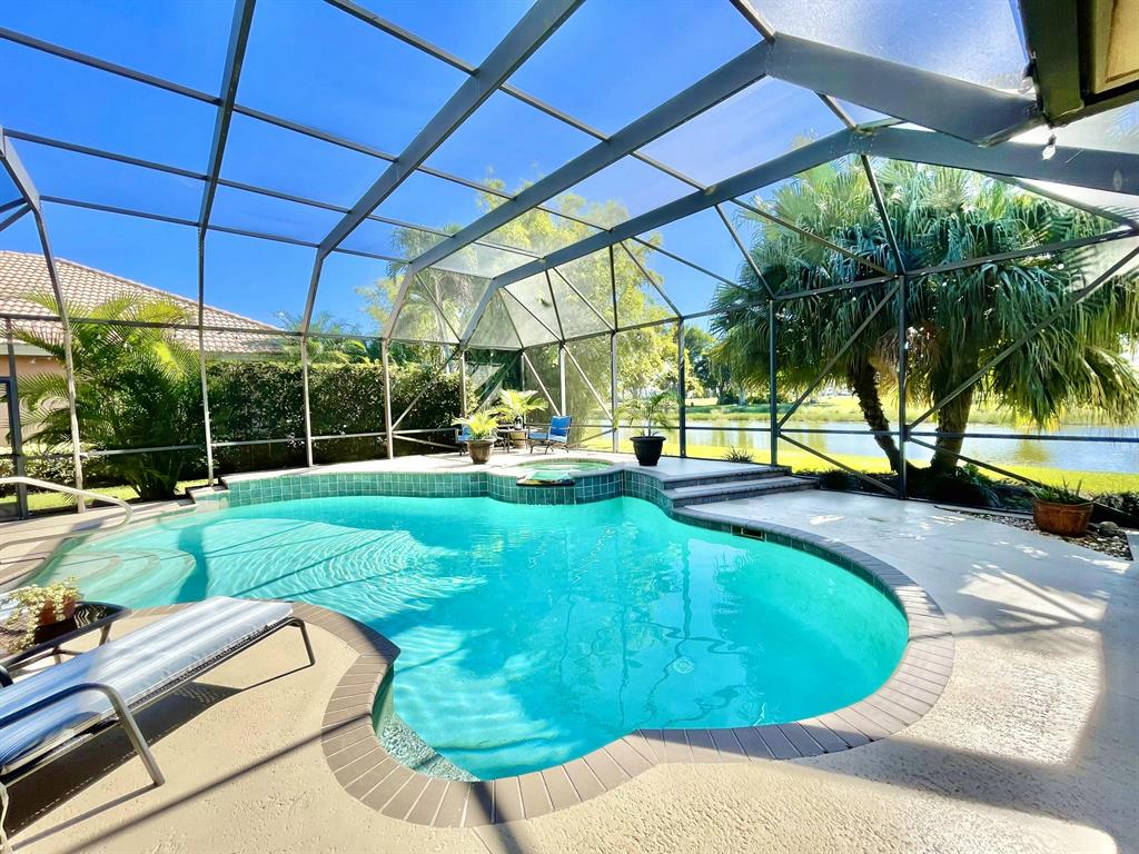 Tranquil South Exp 5 Bed 2.5 Bath One Story Lakefront Screened Pool Home in Highly Sought Boca Falls w/ Peaceful Outdoor Space w/ Beautiful Lake/Park views, Freeform Salt Water Pool operated through phone w/ Spa, Waterfall, Pool Heater, and Screened Patio, Outdoor kitchen w/ BBQ & Mini Refrigerator. Wired for Surround sound inside and out, Sprinkler off Lake, Hurricane protection, Remodeled Kitchen w/ Granite countertops & custom cabinets open to Family Room, Stainless Steel appliances, Master Bdrm w/ two closets, Master Bathroom with Granite Countertops, double vanity,ALL closets with Built-in's, 2nd bath/cabana bath w/ double granite vanity, wood cabinets, & custom mirror, Laundry Room off updated 1/2 bath. Boca Falls HOA incl. Basic Cable ,Internet &6HBOs ,Clubhouse, 6 tennis cts,& more