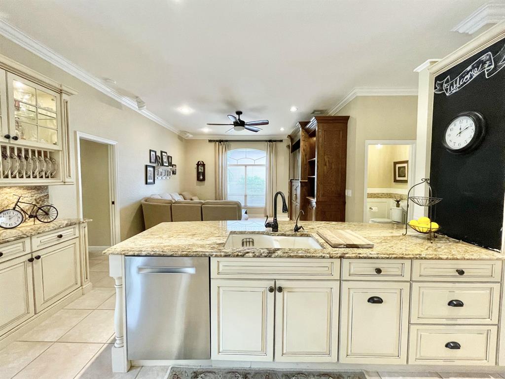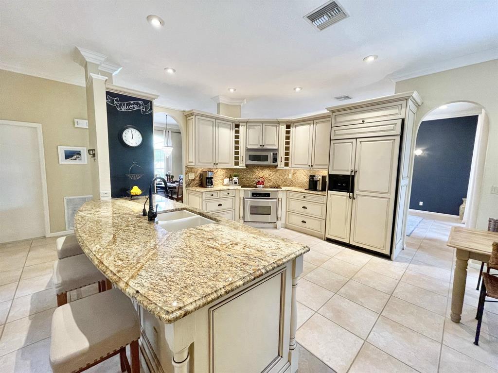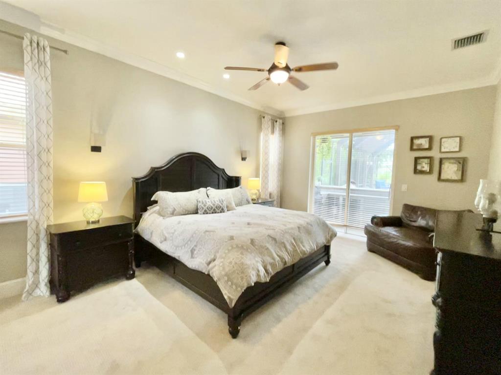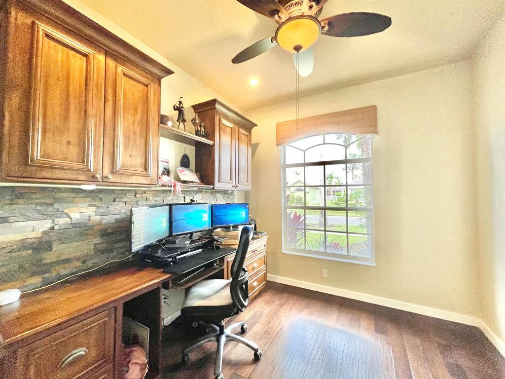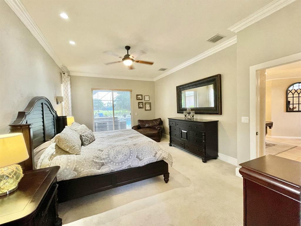 Tranquil South Exp 5 Bed 2.5 Bath One Story Lakefront Screened Pool Home in Highly Sought Boca Falls w/ Peaceful Outdoor Space w/ Beautiful Lake/Park views, Freeform Salt Water Pool operated through phone w/ Spa, Waterfall, Pool Heater, and Screened Patio, Outdoor kitchen w/ BBQ & Mini Refrigerator. Wired for Surround sound inside and out, Sprinkler off Lake, Hurricane protection, Remodeled Kitchen w/ Granite countertops & custom cabinets open to Family Room, Stainless Steel appliances, Master Bdrm w/ two closets, Master Bathroom with Granite Countertops, double vanity,ALL closets with Built-in's, 2nd bath/cabana bath w/ double granite vanity, wood cabinets, & custom mirror, Laundry Room off updated 1/2 bath. Boca Falls HOA incl. Basic Cable ,Internet &6HBOs ,Clubhouse, 6 tennis cts,& more