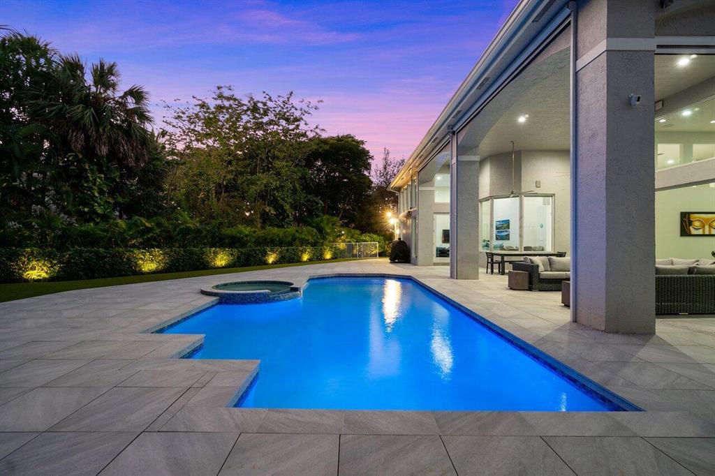 You will fall in love with this amazing, totally remodeled transitional contemporary residence sited on an interior newly landscaped .53+/- acre lot and featuring a perfect family floor plan with a 3-bedroom 2 bath children's wing with central TV area. The sumptuous Master Suite has his and her walk-in closets and a private office/gym and beautiful remodeled Master bath. The new chef's kitchen opens to the large family room with views of the newly finished and re-tiled pool area with new retractable screens and lush landscaping beyond. Enjoy breathtaking views through the new oversized impact windows throughout, filling the home with natural light. Other features include new interior doors, new window treatments, new washer and dryer, new whole home security system with cameras, new