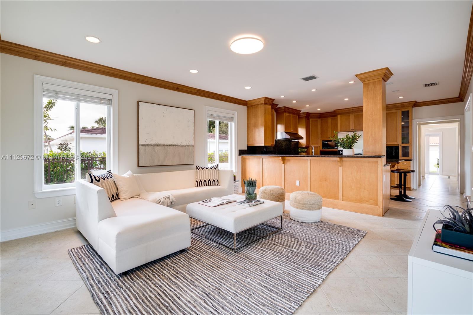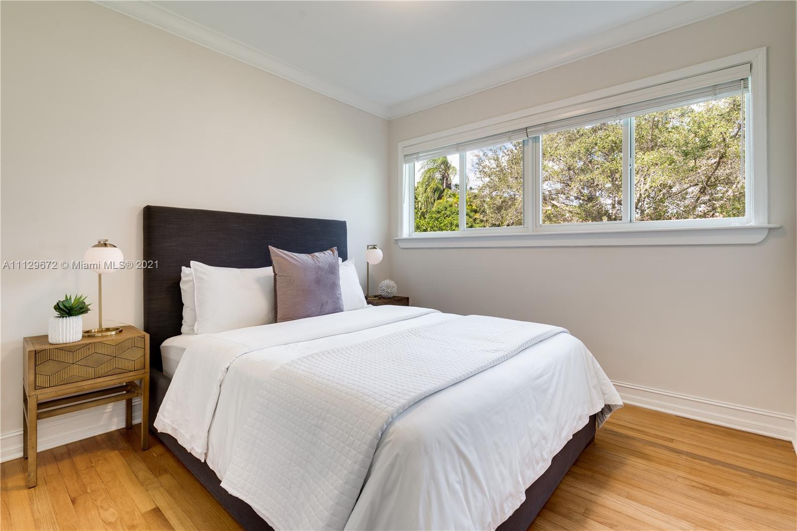 You can feel the ease and charm of this beautiful 1949 Coral Gables home from the moment you enter the foyer. The warmth of the wood floors, the abundance of the natural light, and the quality seen at every nook are all a result of a well maintained and loved home. The generous living and dining rooms are complimented by a spacious kitchen open to a sun-drenched family room. In addition, the large pantry with bonus refrigerator, and a comfortable home office help create an ensemble of balanced and considered living spaces. This home has impact windows & doors, a new roof, updated plumbing, a garage, and a generous & lush backyard retreat. Please note the square footage under air is 2057’ and there is 400’ of covered terrace for outdoor living. A Very Special Home.