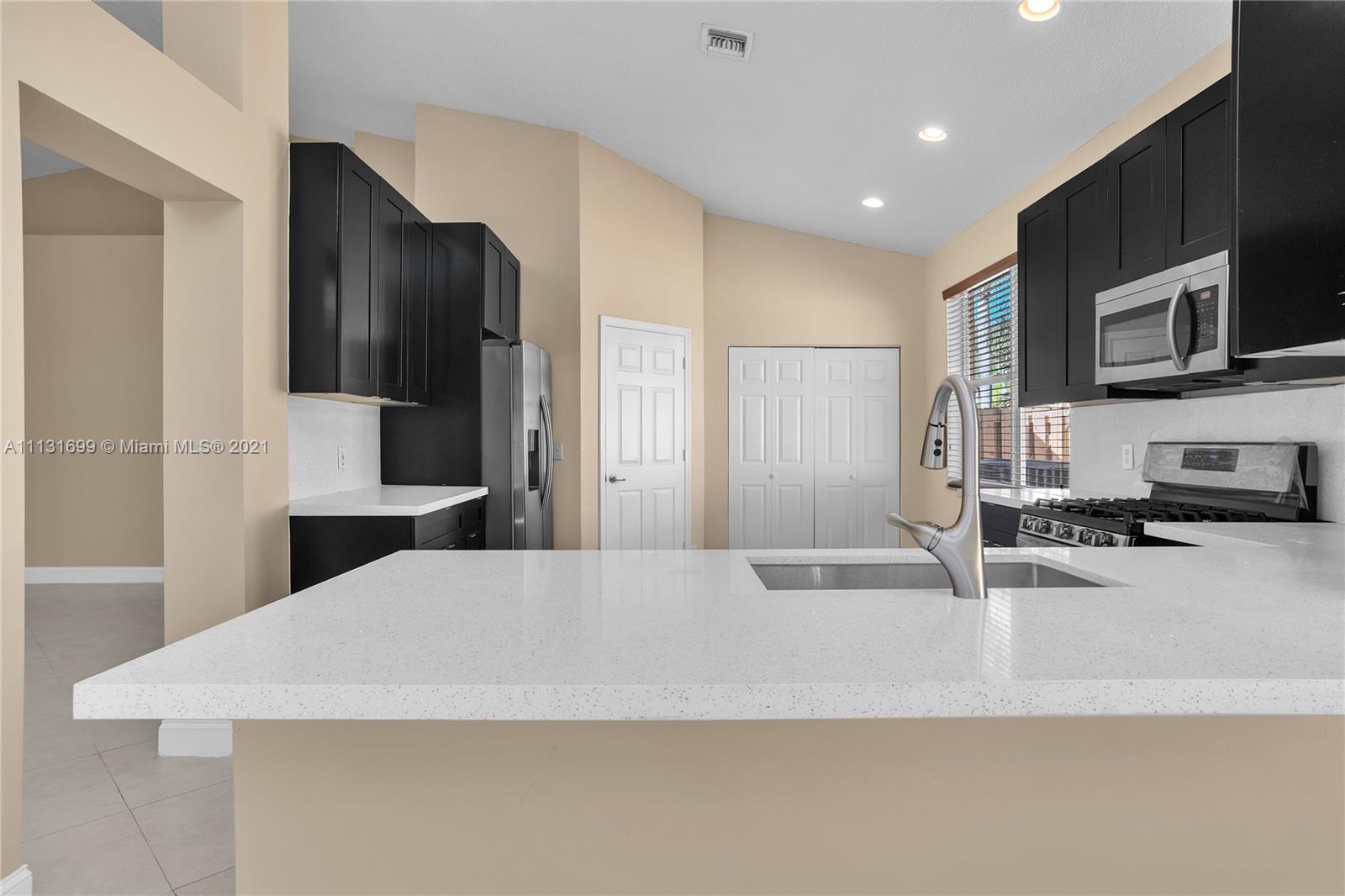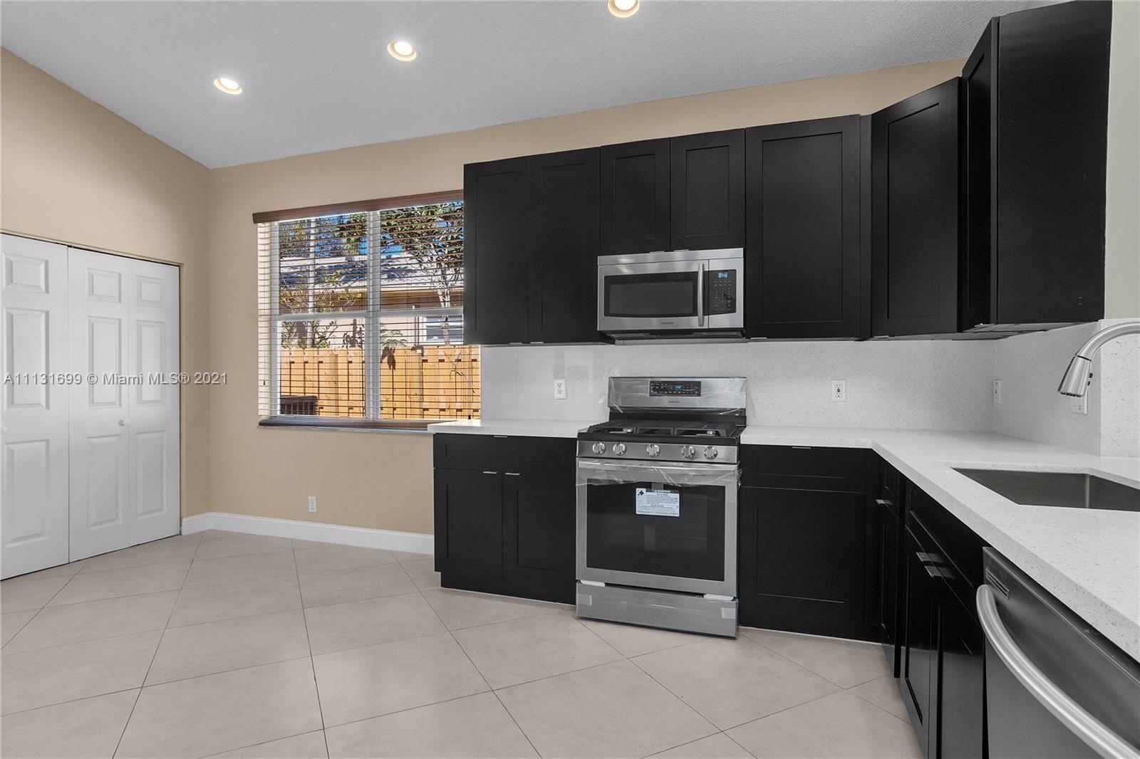 Superb just remodeled 3 bed room,2 bath, 2 car garage home in manned gated resort-level community of Pembroke Falls. Beautiful new kitchen with quartz countertops, wood cabinetry, stainless steel appliances, large pantry. Spacious layout, split bedrooms, wood flooring in bedrooms, large fenced yard, room for pool. Newly renovated resort-like community clubhouse. Spectacular community amenities incl quadruple manned gates, big pool, fitness, clubhouse, tennis, basketball, tot lots, picnic, pavilions, much more. Reasonable HOA fee inc basic cable, alarm & internet. Excellent grade A Pembroke Pines schools incl Lakeside Elementary. Close to malls, other shopping, restaurants, theaters, parks, dining & I-75 for easy commute in every direction. Walk to schools, water park, library, more.