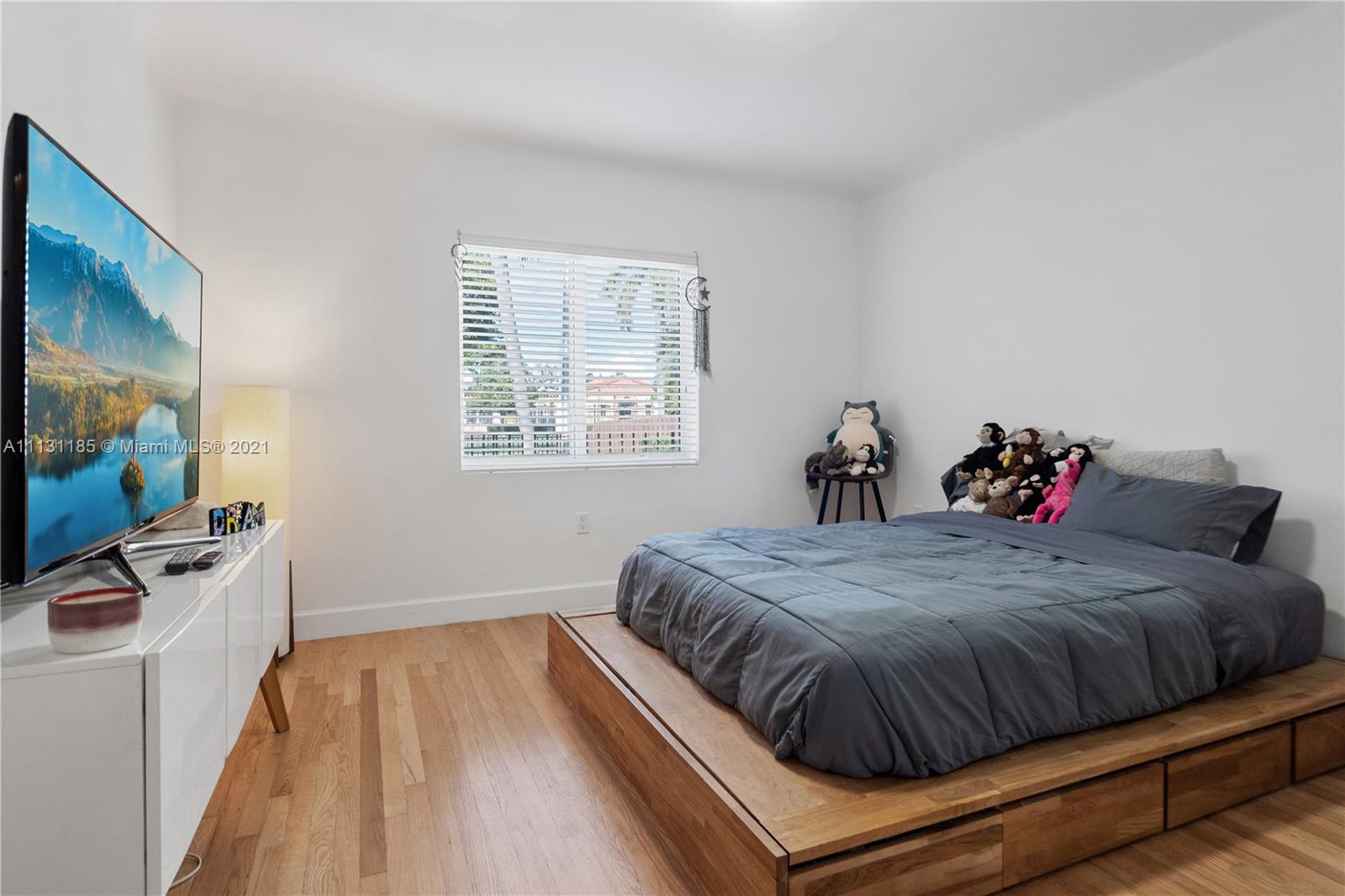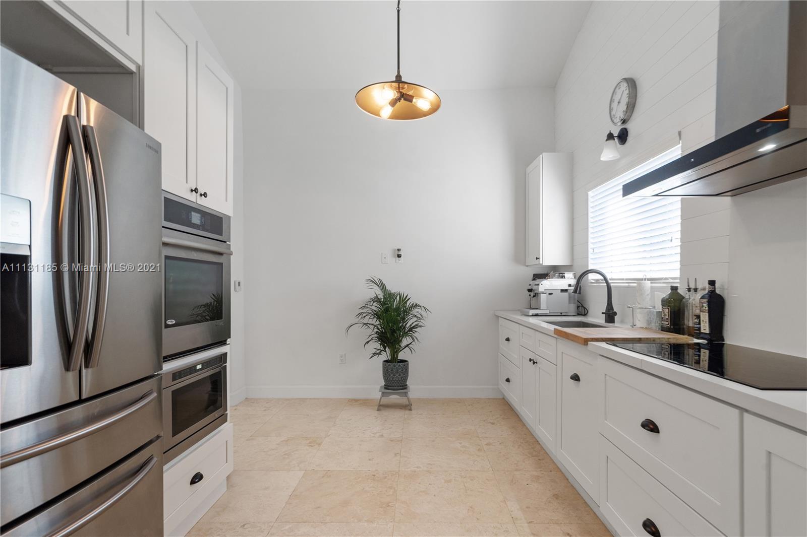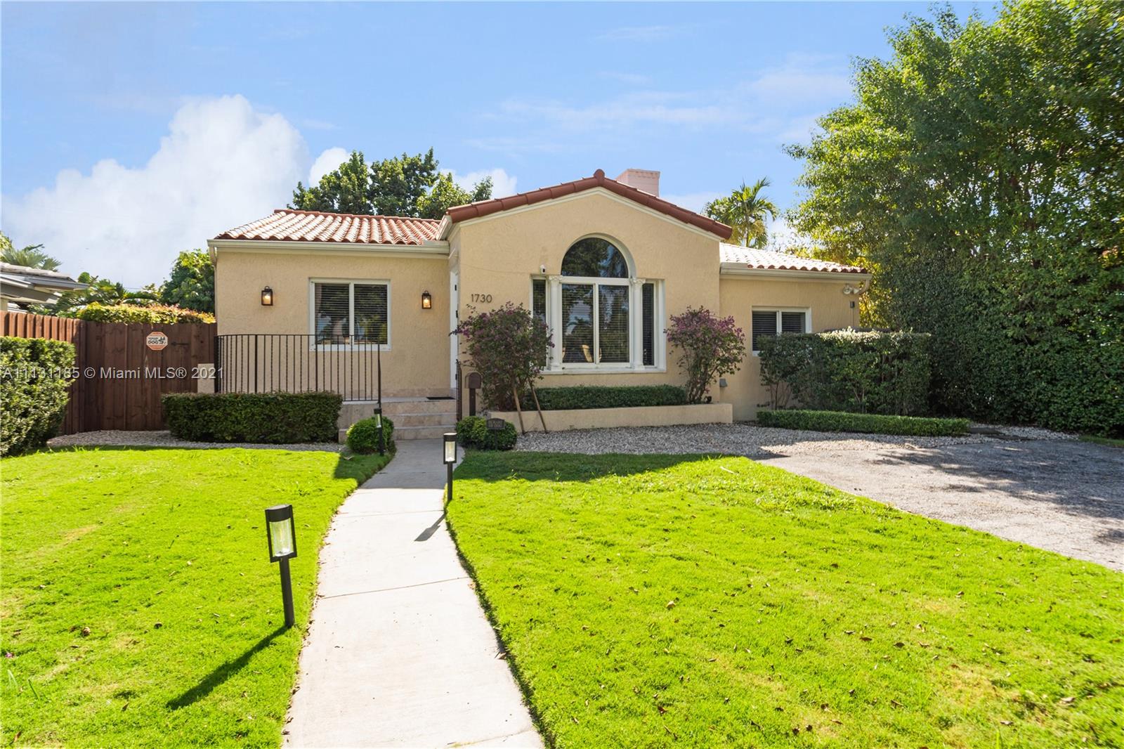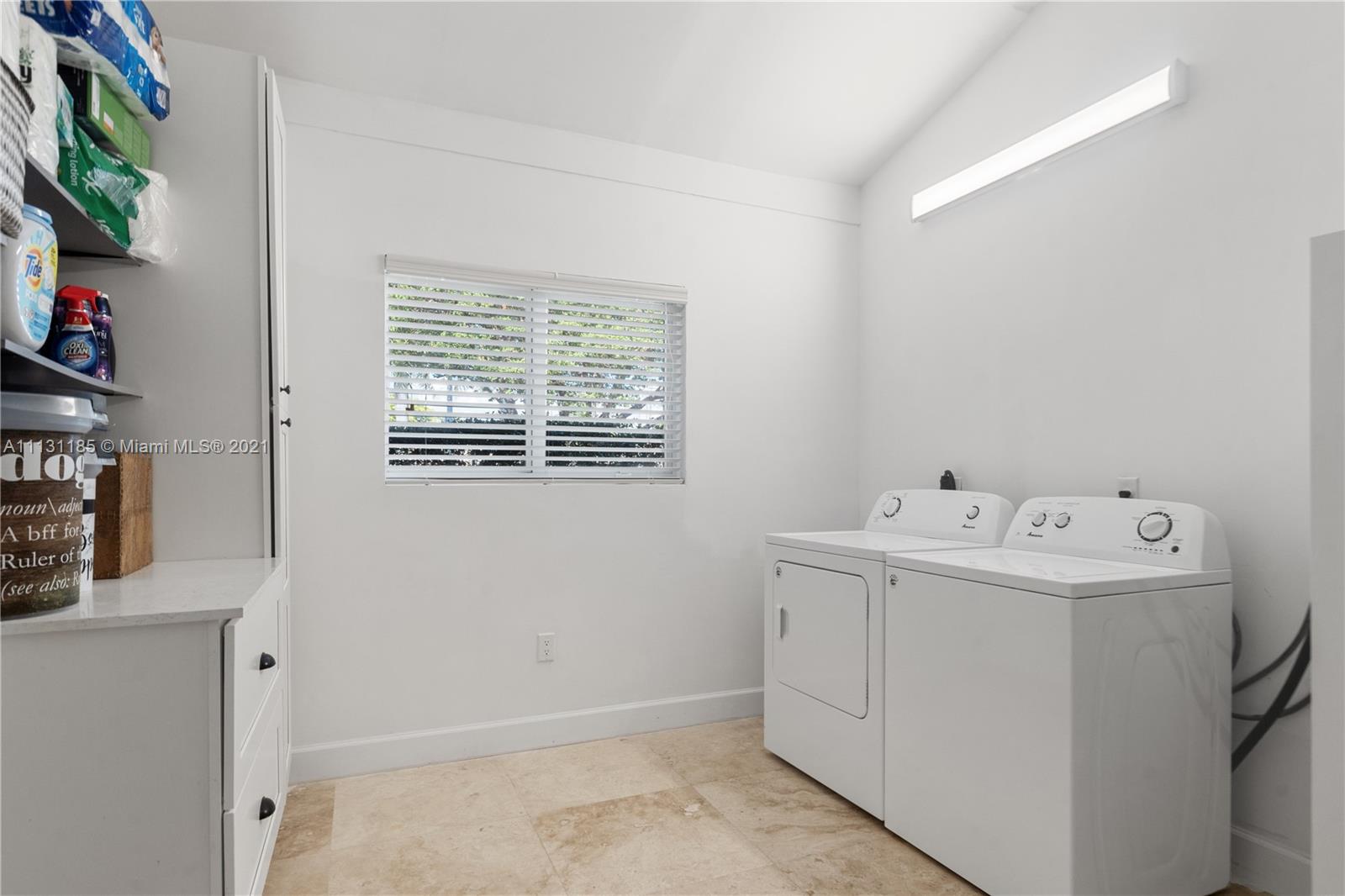 This stunning single-family home was completely updated in 2017 and sits on a 6,500sqft lot with a new automatic sliding gate that offers 2 secure parking spaces. The house features original hardwood floors & travertine flooring throughout, high vaulted ceiling with exposed beams, fireplace, and hurricane impact windows and doors. The open floor plan allows a lot of natural light to come in. The remodeled kitchen equipped with quartz countertops, stainless steel appliances, has enough space to add an island or table. The garage was turned into a laundry room with lots of storage. All 3 bedrooms have new customized closets. The master bathroom has porcelain flooring and a large shower, the second bathroom has a bathtub.