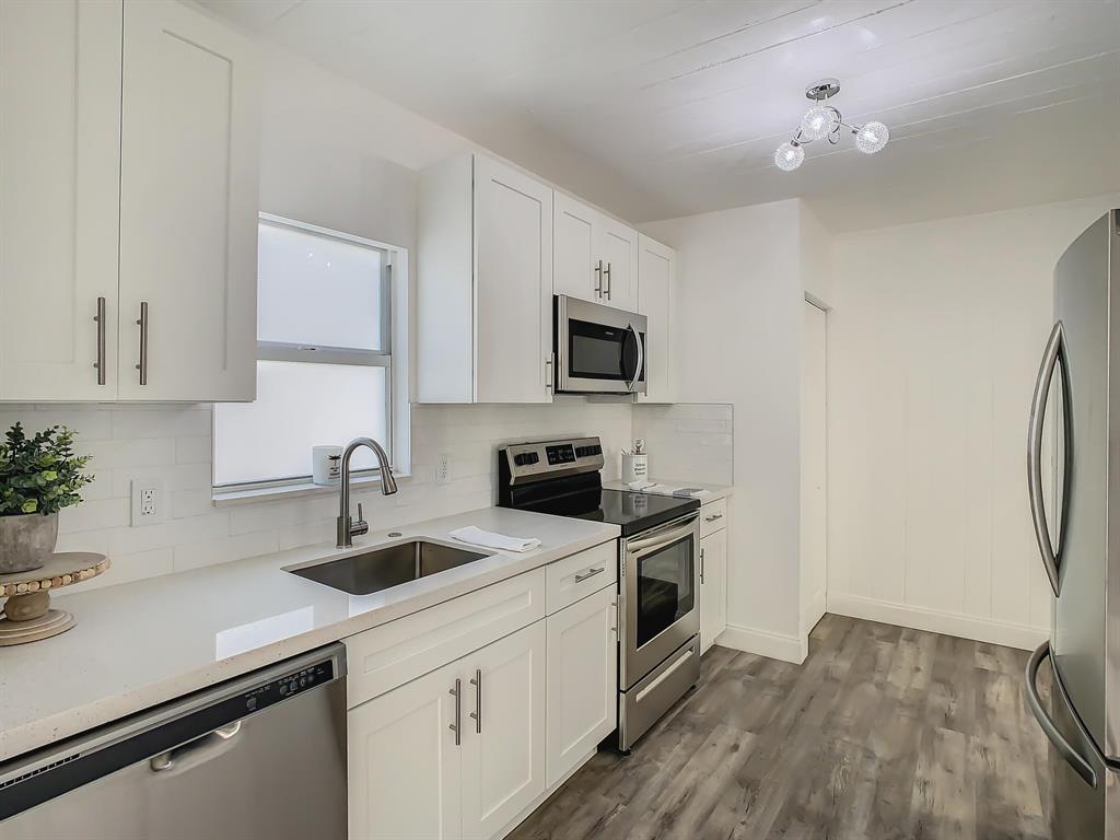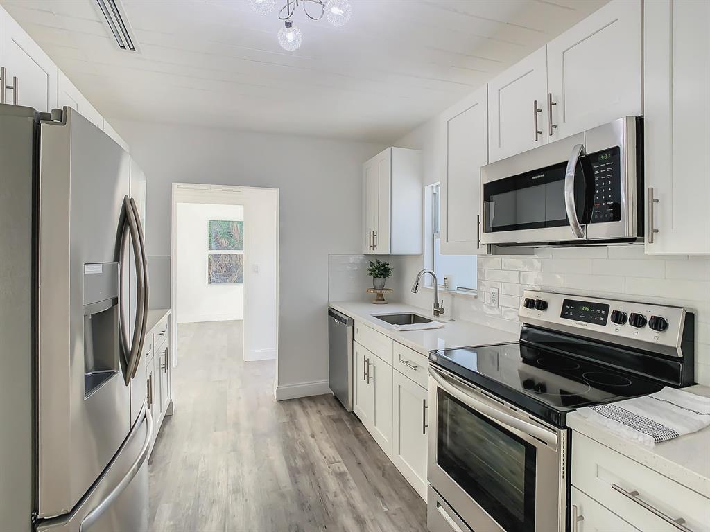 Completely Remodeled 4 Bedroom home in the Northwood area...pulling into your driveway you will notice all new landscaping and the freshly painted exterior of your new home...then walking up to your new hurricane impact front door you will see how open and bright it feels inside...once inside the all new hurricane impact windows let in natural light in all rooms showing off the large family room and the centrally located kitchen which boast new quartz counters, white shaker cabinets and stainless steel appliances...then as you walk into the bedrooms you will notice the large closet and storage space in your new home...then walking into your stunning bright bathroom with new everything...your new home sits on a quiet lot with great back yard space