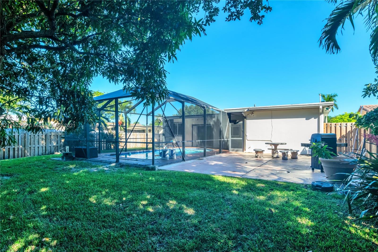OPPORTUNITY IS KNOCKING! This home delivers the HOLLYWOOD HILLS’ TRIFECTA… size, location and condition. Offering 3 beds/2 baths, family room, formal dining room, open porch, one car garage, circular driveway and pool. The living area is bright and open w/ recessed lights, tile floors and natural light. Updated kitchen w/ a modern look, custom made wood cabinets and ample cooking space. Storm ready w/ IMPACT WINDOWS and 2018 ROOF. Florida outdoor living at its best w/ dome screened-in SALT WATER POOL, covered patio, large concrete deck, shaded by fruit trees and 2020 privacy wood fence… making this beauty perfect for entertaining family and friends. In addition, central ac, CITY SEWER, laminate wood floors in bedrooms, 242 SQFT family rm and 160 SQFT Florida room. RECIPE FOR A HAPPY OWNER!