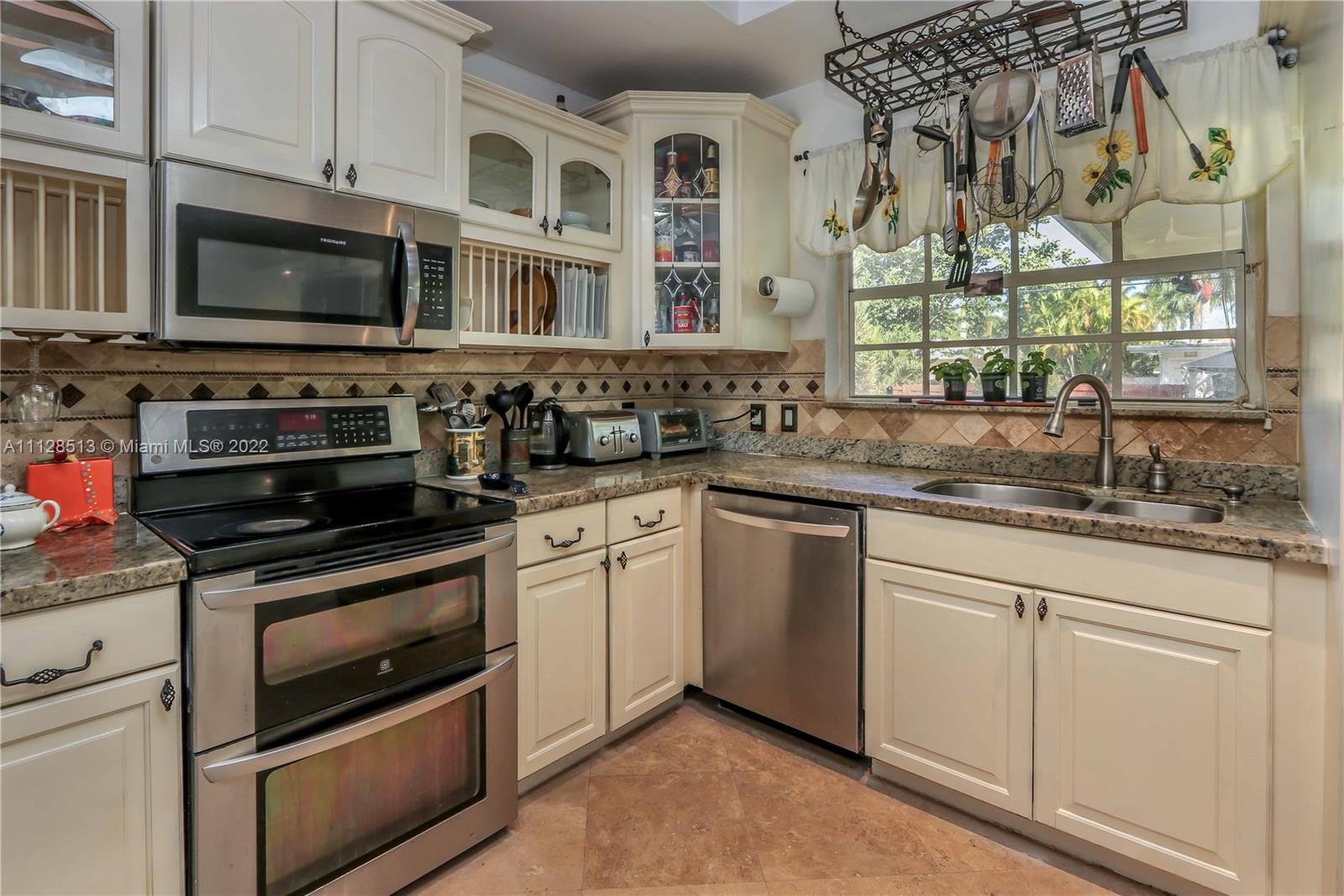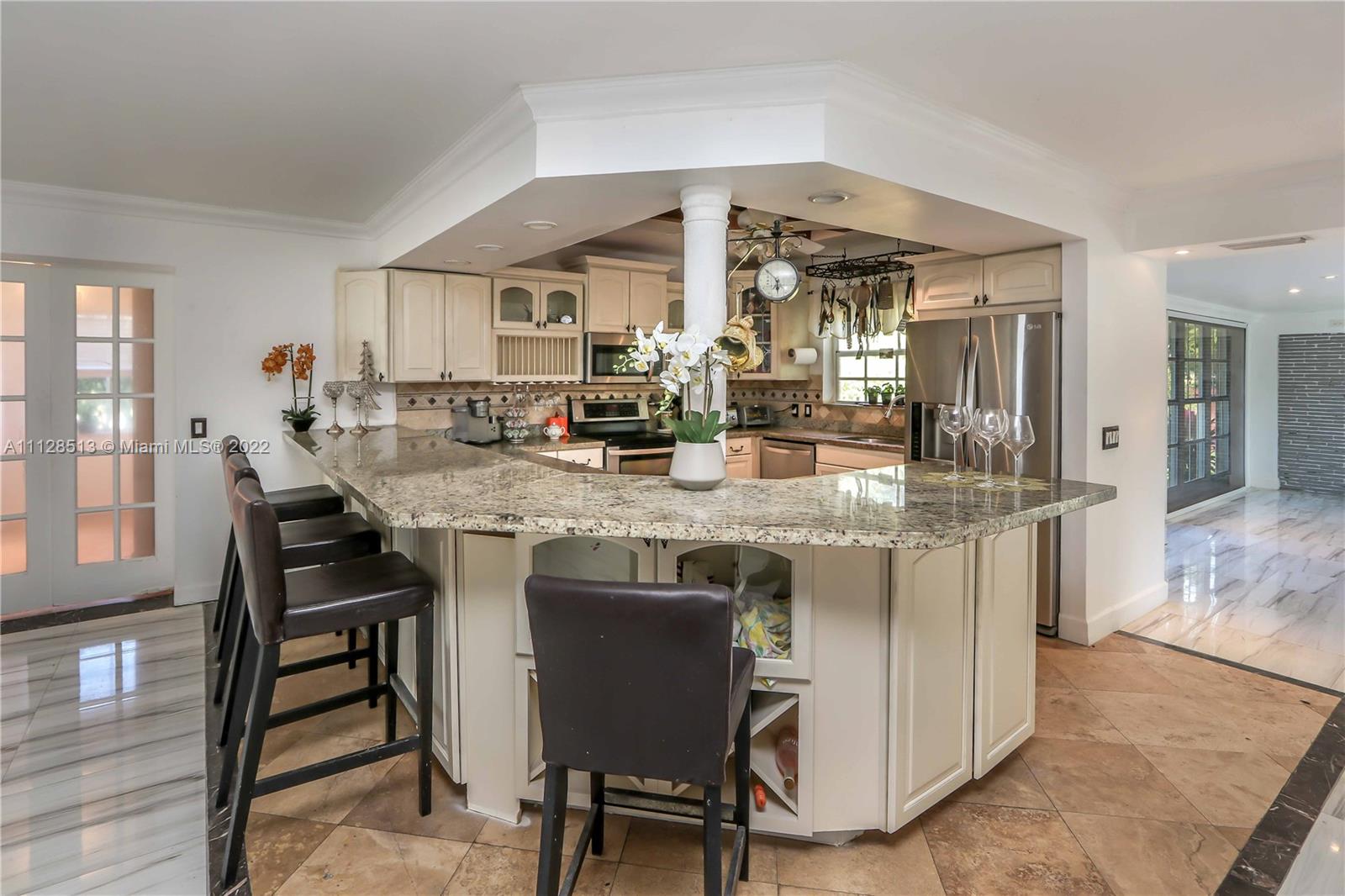 GORGEOUS 4 BED 4 BATH HOME W/ A SPACIOUS FOYER ENTRY~OPEN KITCHEN W/ BEIGE CABINETS & MATCHING GRANITE COUNTERTOPS, SS APPLIANCES, & AN OPEN BAR/SITTING AREA (UP TO 6 PEOPLE)~KITCHEN IS IN THE CENTER OF THE HOUSE & OPENS INTO THE LIVING, DINING, & FAMILY RM~NEW PORCELAIN TILE FLOOR IN LIVING/DINING/FAMILY ROOMS~OVERSIZED FAMILY RM W/ BRICK WALL & FIREPLACE; GREAT FOR ENTERTAINING~CROWN MOLDING IN LIVING/DINING/ FAMILY RM & ALL BEDROOMS~1 BATHROOM HAS MARBLE TILE W/ WHITE CABINETS & GLASS DOOR TUB~HOUSE HAS LAUNDRY ROOM, NEWER ELECTRICAL PANEL, CIRCULAR DRIVEWAY W/ STAMPED CONCRETE~4TH BEDRM DOES NOT HAVE A CLOSET~1 BA IS OUTSIDE~GREAT LOCATION NEAR HOLLYWOOD BEACH BROADWALK & DOWNTOWN HOLLYWOOD!