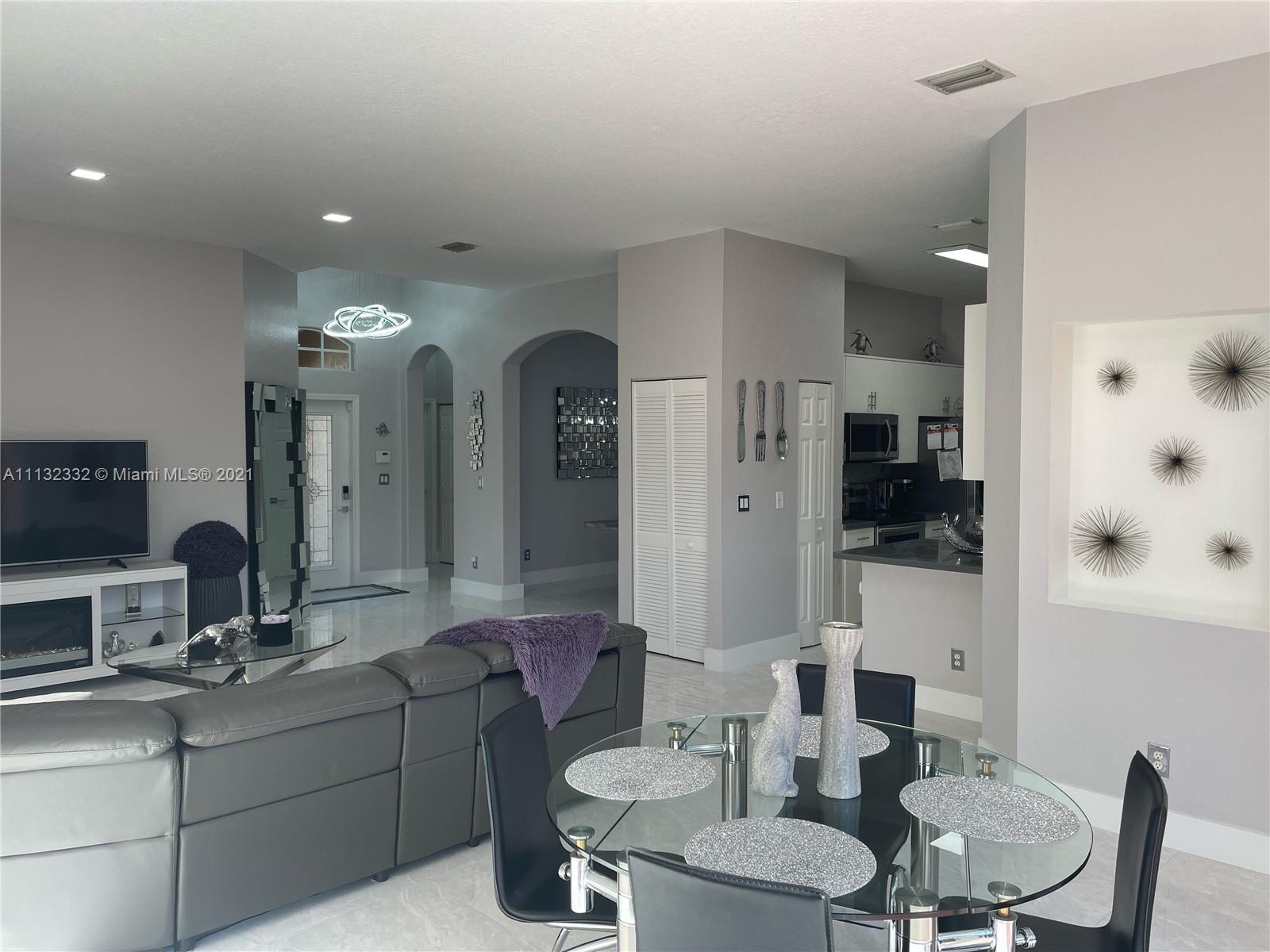 Located in the desirable Vizcaya community, 3 bedroom/2 bathroom split floor plan home was remodeled in 2017, received a new roof in 2019, and boasts luxurious upgrades. Large gray & white porcelain tile throughout the entirety of the home, extravagant chrome light fixtures and finishes, stainless steel appliances, Nest thermostat, and an oversized backyard are just some of what this home has to offer. The master bedroom features a raised tray ceiling and walk-in closet with enough shoe, hanger, and shelf space for two. The master bathroom includes an oversized shower including a multi-function panel, glass barnyard shower door, and floating vanity. The den is functional as a sitting room, dining room, study, or easily converted to a third bedroom. The community is gated and secured 24/7.
