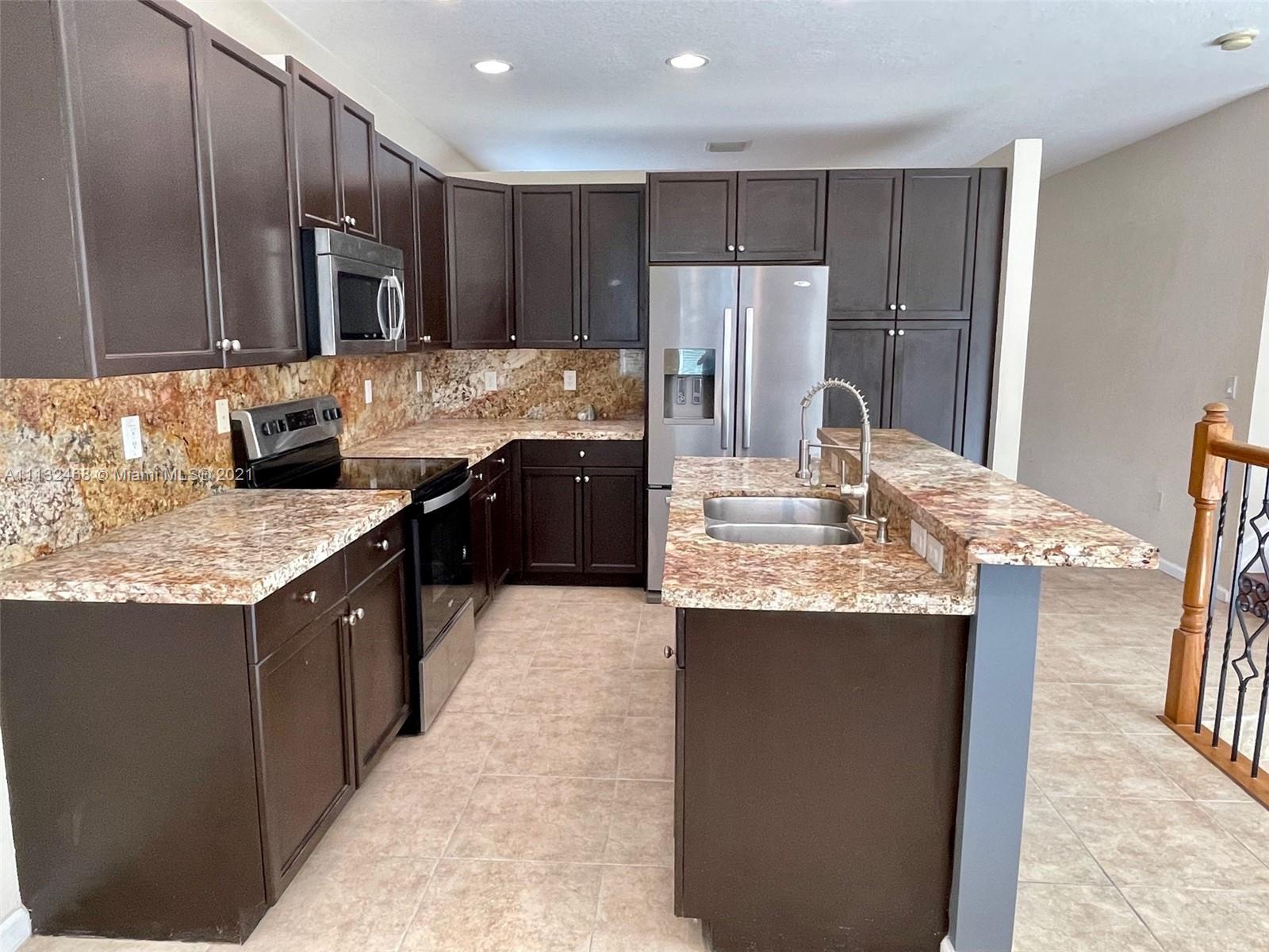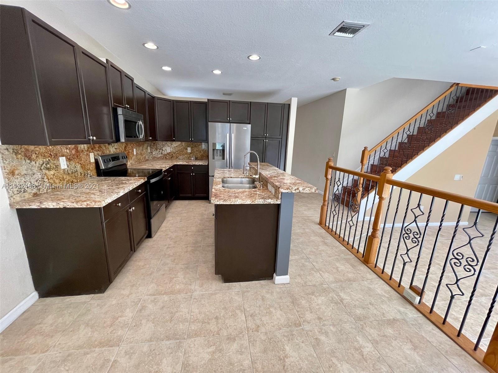 Beautifully renovated home in prestigious Riviera Isles. This property features a nicely updated eat in kitchen w/ real wood cabinets granite counters SS appliances. Tiled downstairs and laminate upstairs. Newly renovated bathrooms. Large master suite opens up to huge balcony. Big walk in closet. Sizeable master bath w/ a soaking tub, separate shower and water room. Big back yard with no back neighbors offering more privacy, w/ a massive back patio perfect for entertaining and BBQs. Newer AC & water heater. Come enjoy this amazing home in a luxurious community featuring all the amenities one could want, massive resort style pool w/ a tremendous water fall, full gym, multiple playgrounds, tennis & basketball courts, walking and biking paths, reservable club house 24 hour security A schools