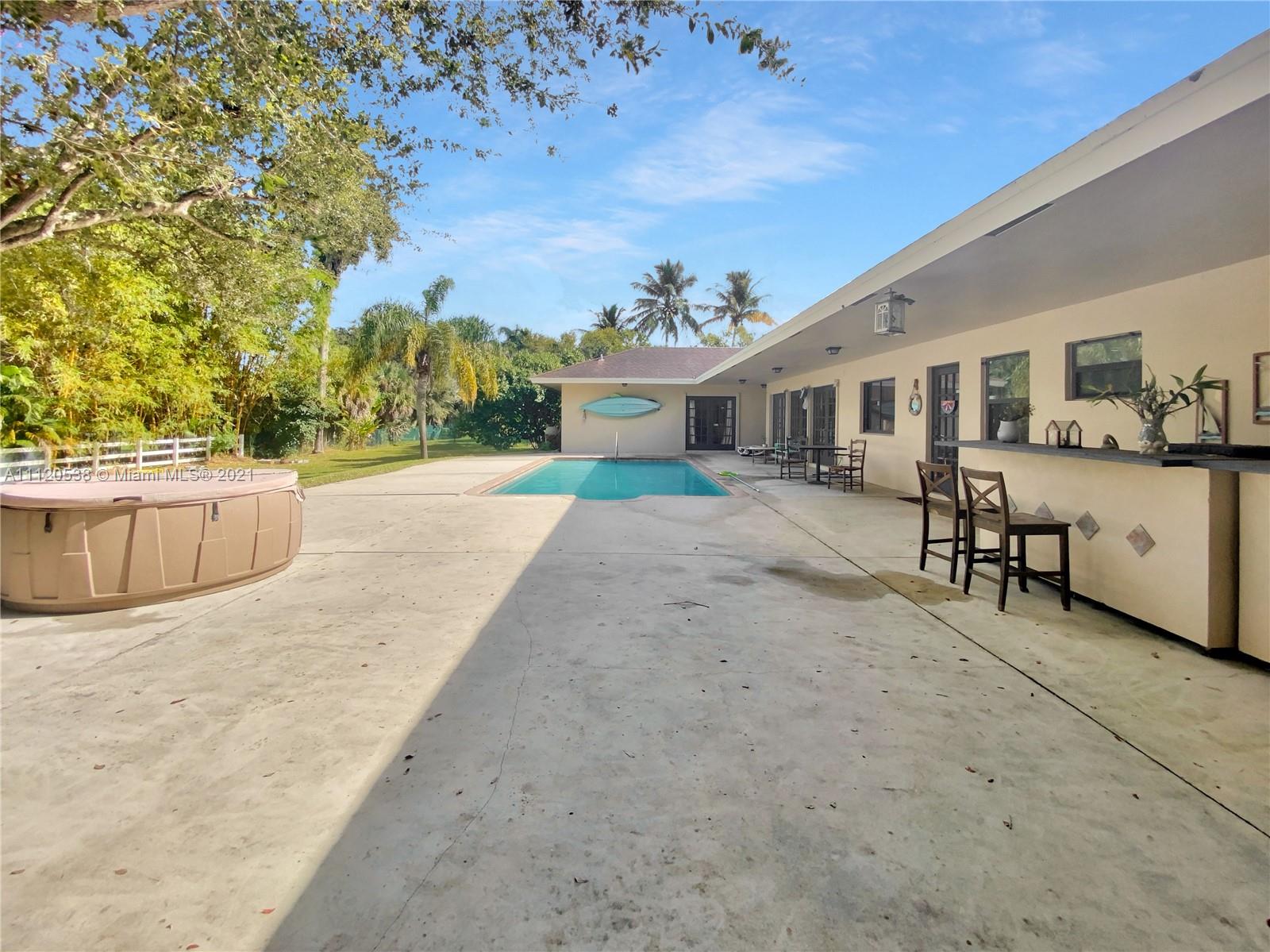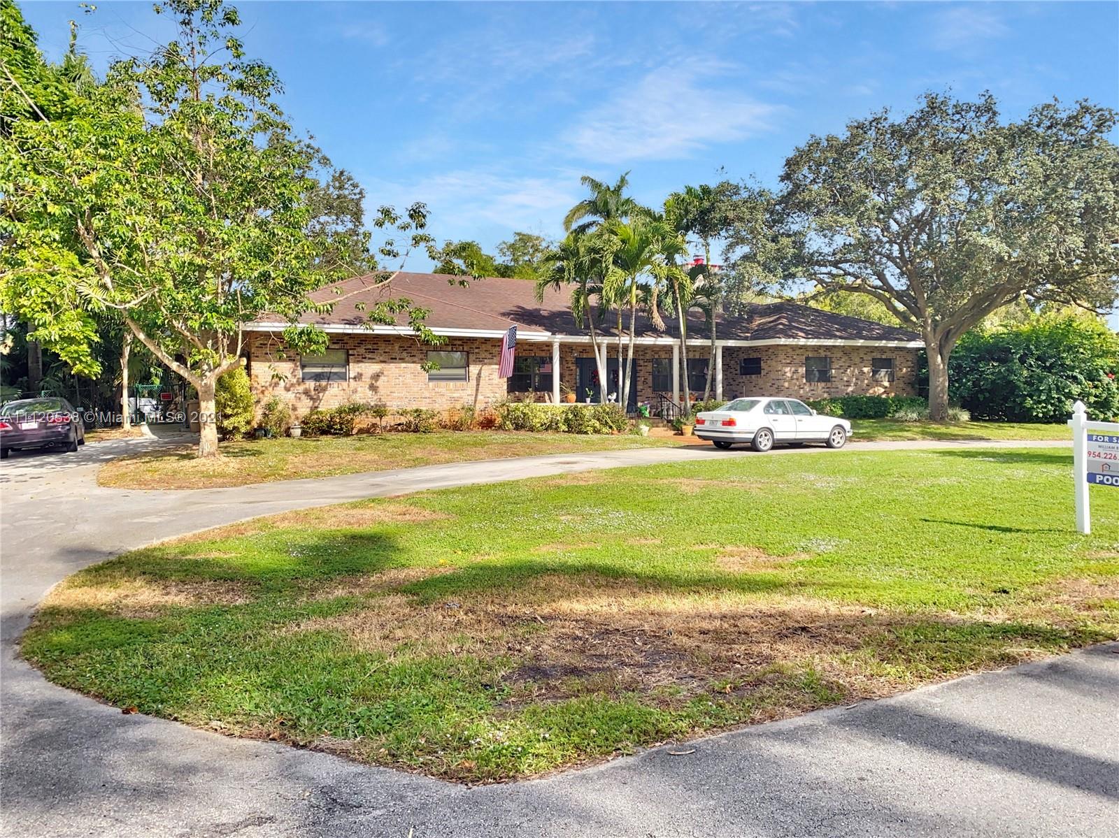 Be part of the exclusive Calder Farms equestrian community nestled in the heart of downtown Davie. Enjoy the splendor of this 4 bedroom/3 bathroom single family home. This home features a spacious living room with high ceilings and next to a traditional fireplace. A complete house renovation was done in 2007 except for the kitchen. The roof is 2007 and both A/C's are 2013. Large patio and pool area with a beautiful view! perfect for entertainment and to enjoy a sunny afternoon. This 0.8 acre lot comes with agricultural exemption and can be purchased together.