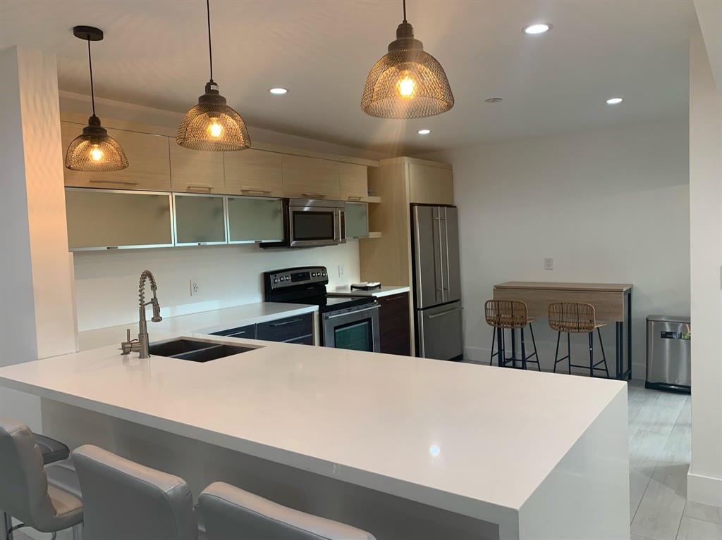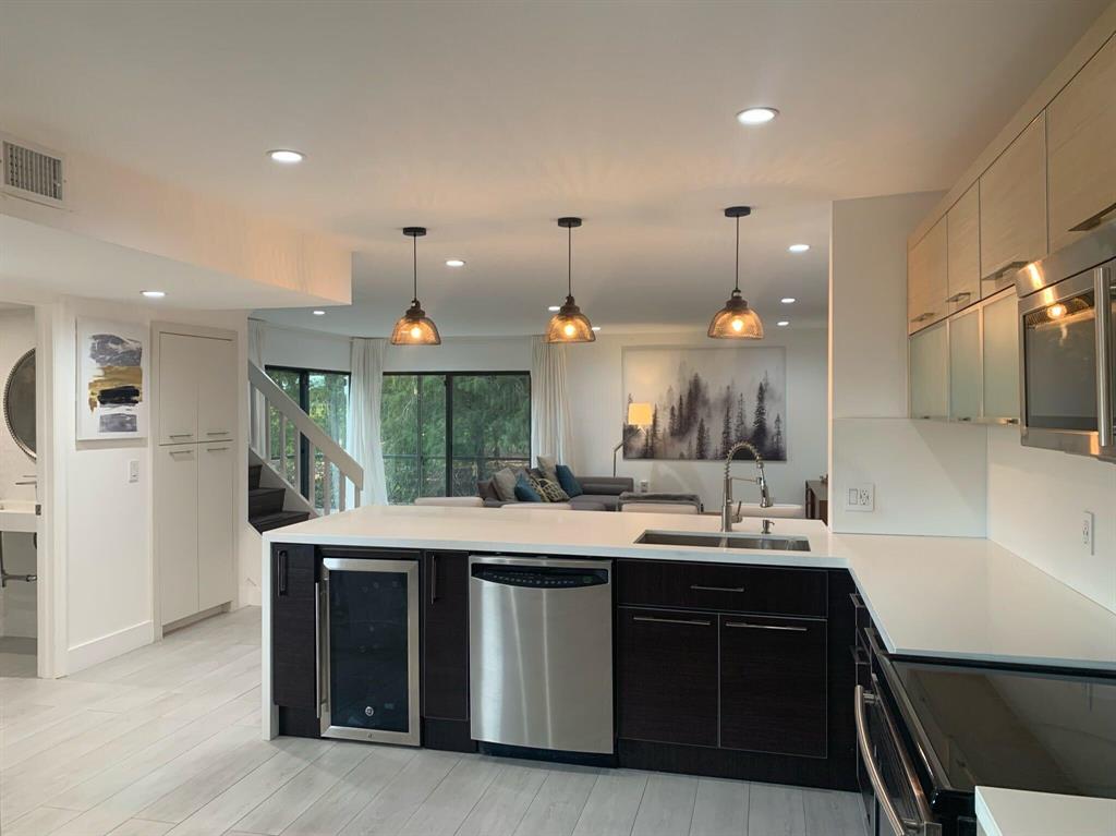 Fabulous Water & Golf views from this lovely 3 Bedroom / 2-1/2 Bath corner townhouse. Fully Renovated kitchen, stainless steel appliances, quartz countertops, tile floor & backsplash. Fully renovated bathrooms, Tile floor downstairs. Vinyl floors upstairs. Screened Porch, Large Backyard and Pool.