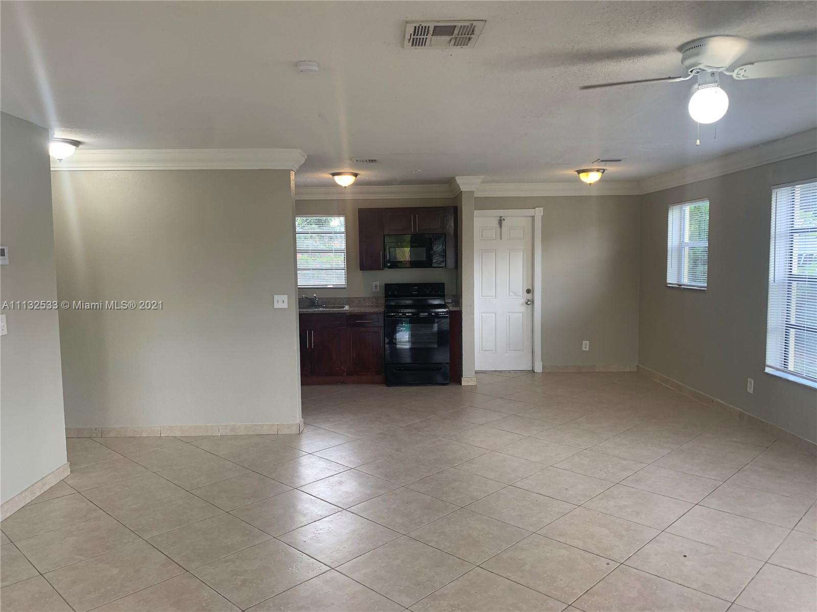 Charming 2 bedroom 1 bathroom home with private fenced in backyard. The property features tile floors throughout, spacious living and dining, open concept kitchen w/ SS appliances, large bedrooms with generous closet space, laundry, covered porch plus backyard patio perfect for entertaining. The property is in Move in ready condition, Priced to sell and easy to show.