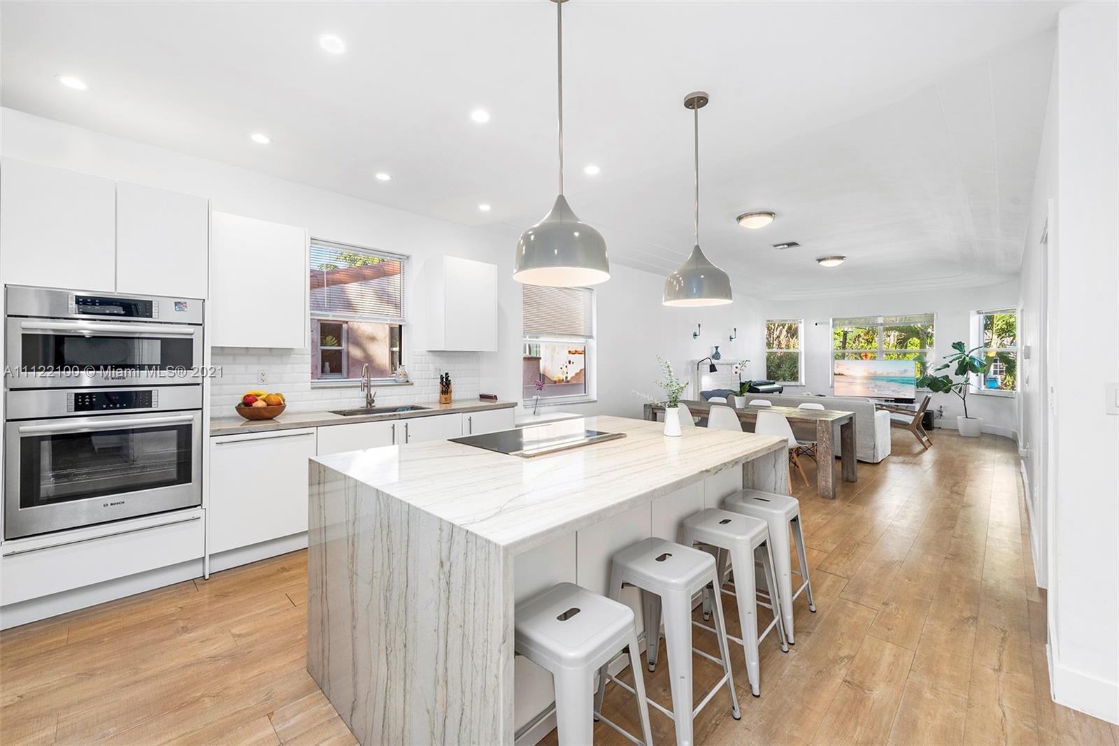 This charming Art Deco-style cottage is a true gem. Immaculately renovated, the 3 bed, 2.5 bath residence captures natural light and showcases thoughtfully curated interiors, with chic finishes and impact glass throughout. Open kitchen features oversized marble waterfall island, breakfast bar and top-of-the-line appliances. Spacious master bath offers double sink and pristine attention to detail. Located in the highly sought-after neighborhood of Surfside, this home is blocks from the Beach, Bal Harbour Shops, some of Miami’s best dining, A+ schools, this is the perfect place to call home. Total square footage for living area is 1850 sqft (Per Owner).