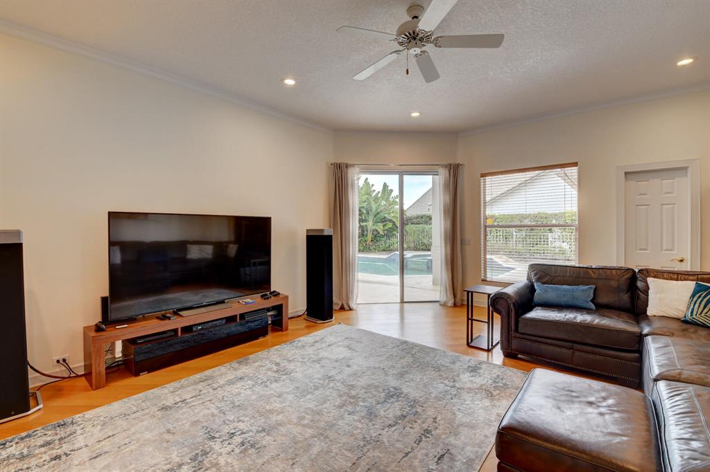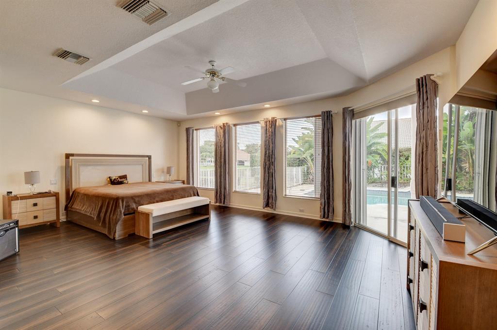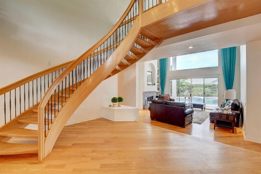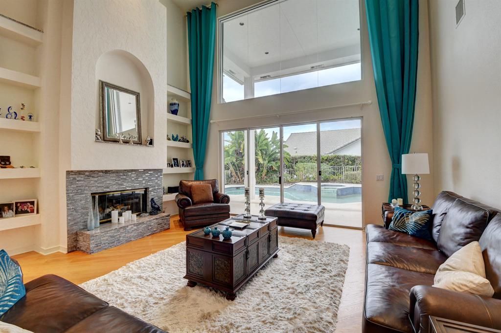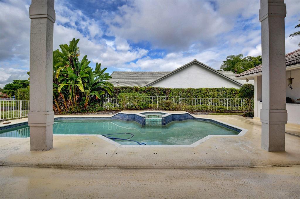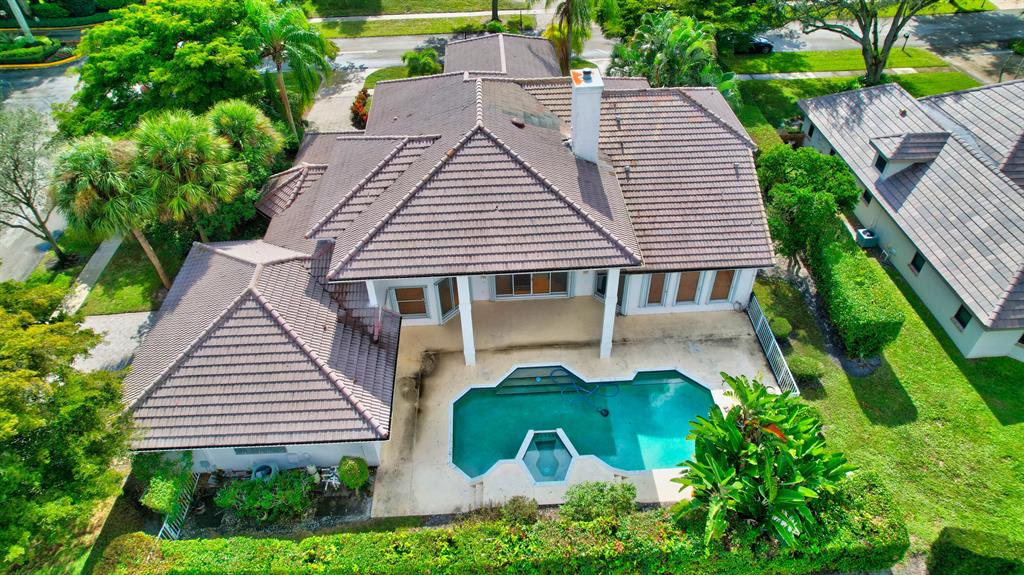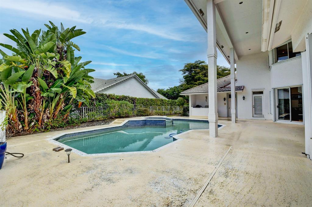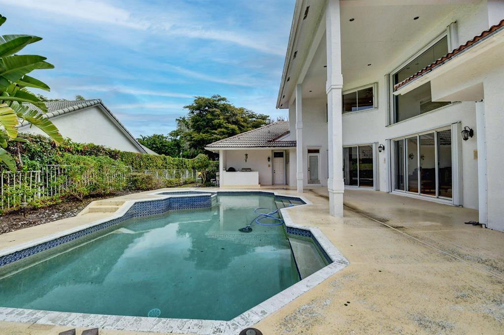 House beautiful! This 2-story Estate home in prestigious Woodfield Hunt Club in central Boca Raton offers the perfect blend of Modern elegance and traditional warmth. As you enter the stately foyer, there is an oak spiral staircase and wood floors. Living room is 2-story with lake views and a dramatic fireplace. Formal dining room; large eat-in kitchen with unusual acid-washed marble countertops. Den has french doors and cabana bath leading to the large open pool. 3-car garage. Upstairs has 3 bedrooms plus very large playroom (family room) with bar and sink. Full hurricane protection. Your children can walk right across the street to St. Andrews School.Membership[ is optional but is available to Woodfield Country Club. Woodfield Hunt has 5 tennis courts, basketball,