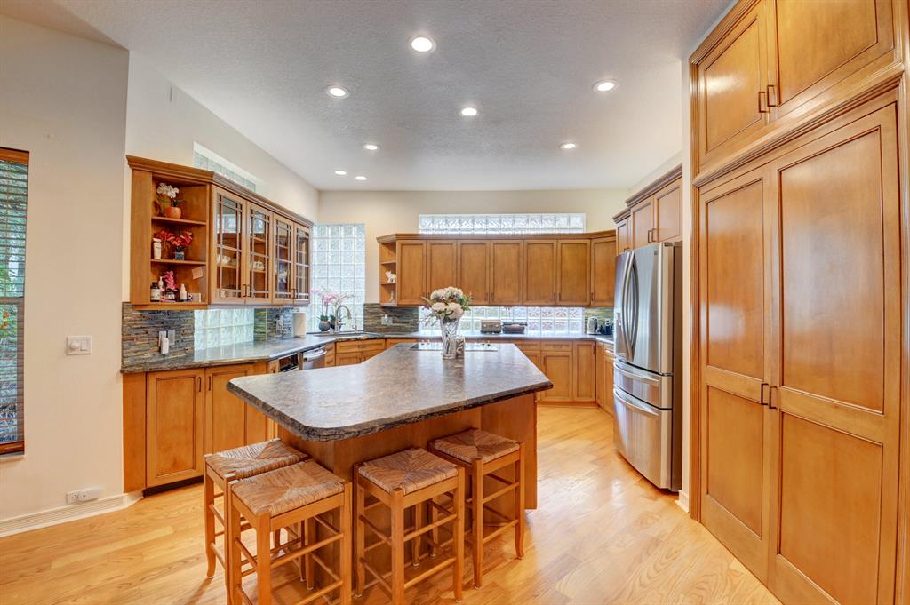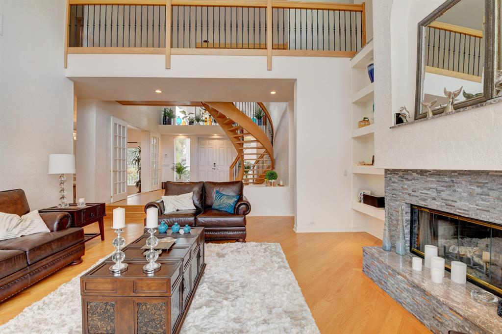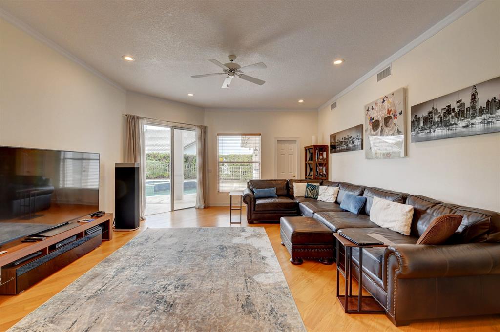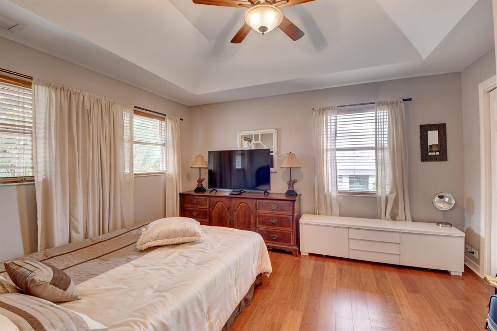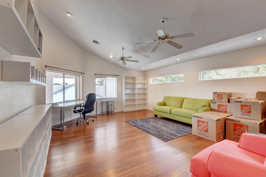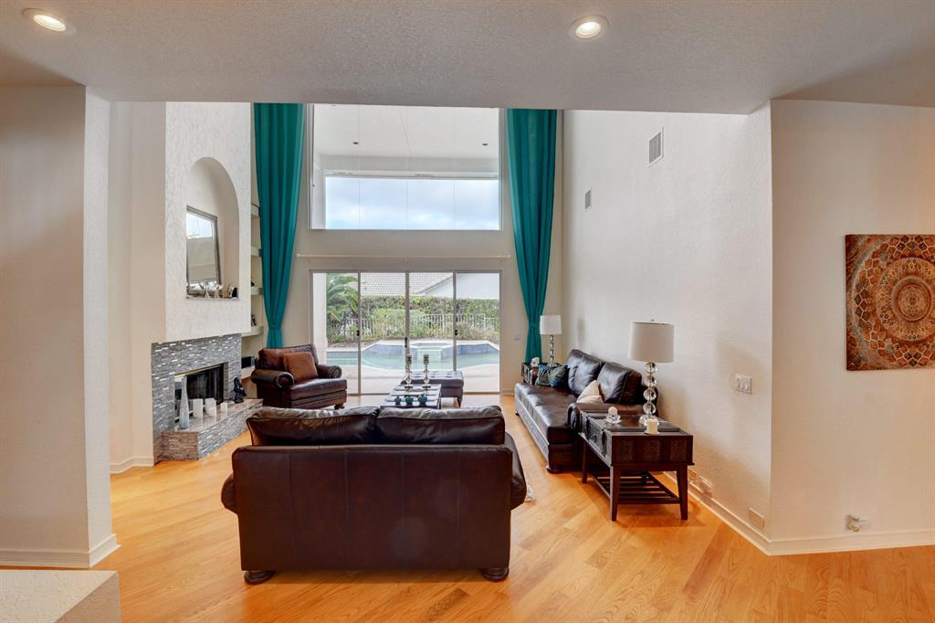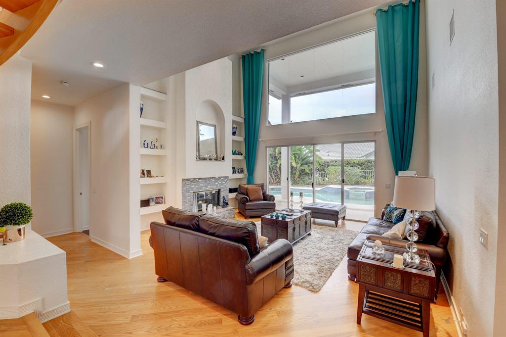 House beautiful! This 2-story Estate home in prestigious Woodfield Hunt Club in central Boca Raton offers the perfect blend of Modern elegance and traditional warmth. As you enter the stately foyer, there is an oak spiral staircase and wood floors. Living room is 2-story with lake views and a dramatic fireplace. Formal dining room; large eat-in kitchen with unusual acid-washed marble countertops. Den has french doors and cabana bath leading to the large open pool. 3-car garage. Upstairs has 3 bedrooms plus very large playroom (family room) with bar and sink. Full hurricane protection. Your children can walk right across the street to St. Andrews School.Membership[ is optional but is available to Woodfield Country Club. Woodfield Hunt has 5 tennis courts, basketball,
