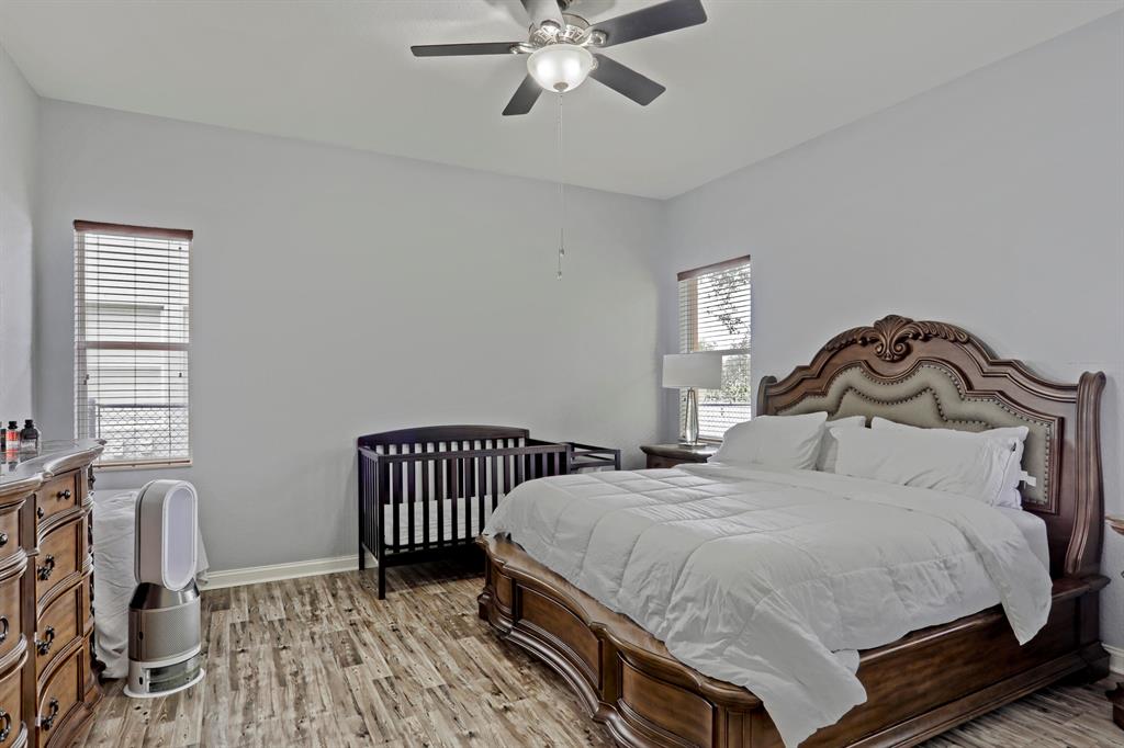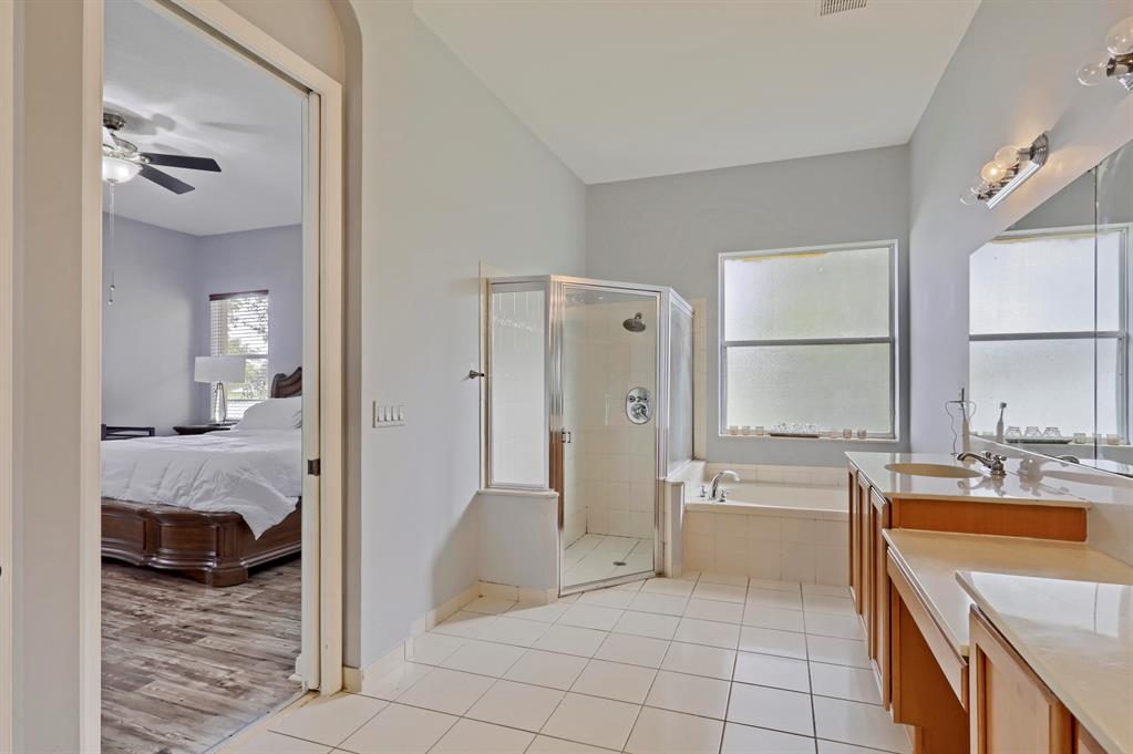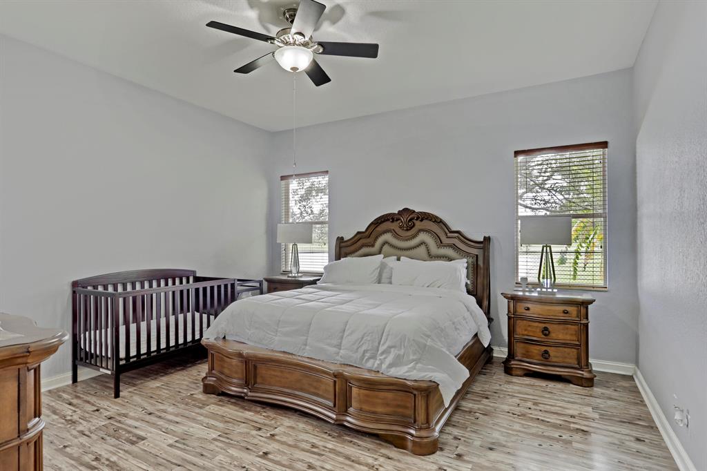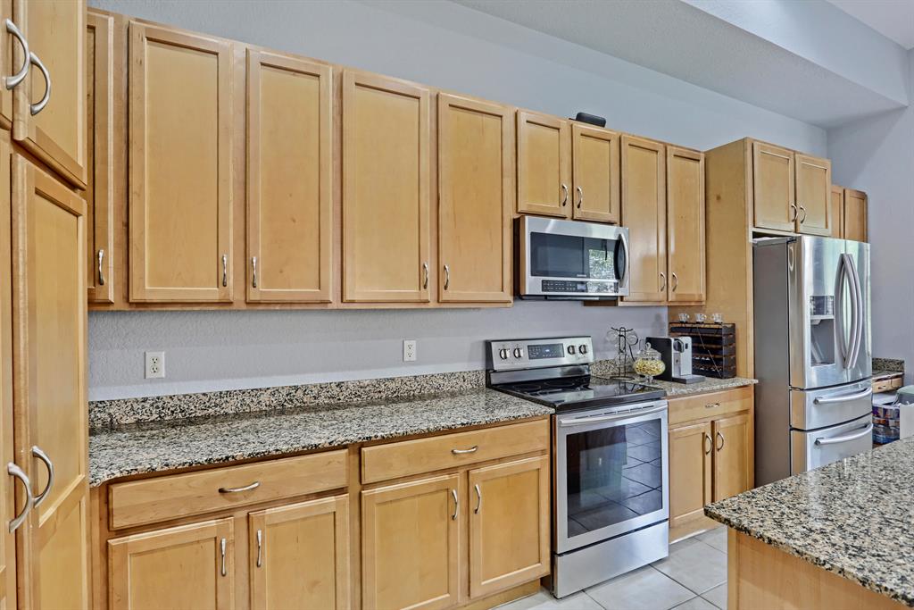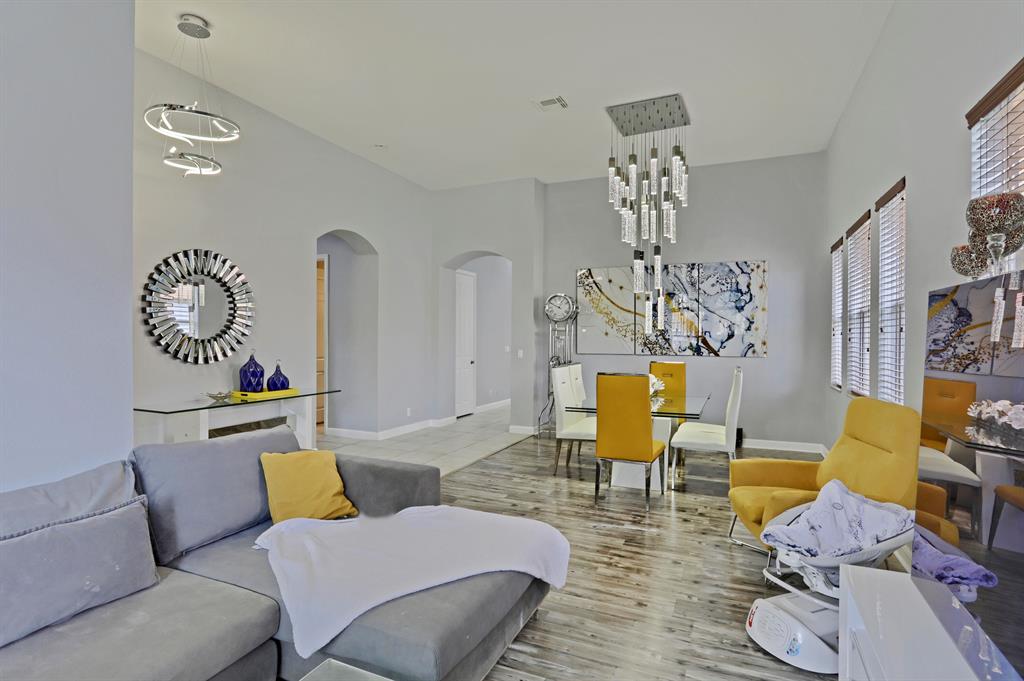 Beautiful 4 bedroom, 2.5 bath, 3 car garage, single story home with BRAND NEW ROOF, in desirable gated community on the lake! Tastefully decorated featuring vaulted ceilings, huge open floor plan, engineered hardwood floor and tile throughout (no carpet). Renovated kitchen with 42'' cabinets, granite counter tops, granite island for ample bar stool seating, Samsung stainless steel appliances and LED lighting. Modern fixtures enhance the spacious living and dining areas with separate family room for added living space. Generous master suite with walk-in closet; master bath boasts dual vanities, separate tub and shower. Large laundry room with Kenmore front load washer and dryer. Spacious covered and screened patio lead out to private fenced backyard overlooking the lake.