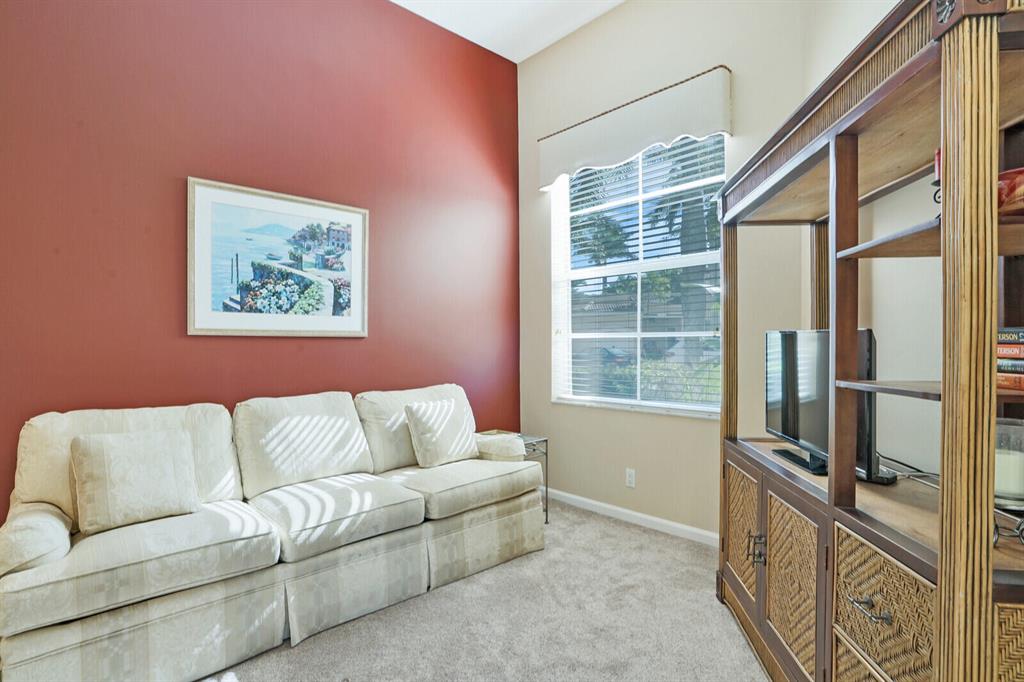 This charming Channing designed 2 bedroom and den, 2 bath home with 2 car garage has a stunning golf view from the patio and master bedroom. Bright and light, well cared for and barely used, this home can be yours to update, or enjoy it as is.Larkspur Landing is only one of four subdivisions in Ibis with its own community pool and spa. Meet your neighbors at the pool and enjoy this beautifully landscaped and well cared for charming Mediterranean boutique community. With only 78 homes you can enjoy the amenities of Ibis at a very afforable price. HOA and POA assessments cover WIFI, basic cable, ADT alarm system, exterior painting of Larkspur homes, lawn, common area and entry way landscaping, once a year pressure cleaning, mailboxes, street lighting & street paver maintenance.Continued.