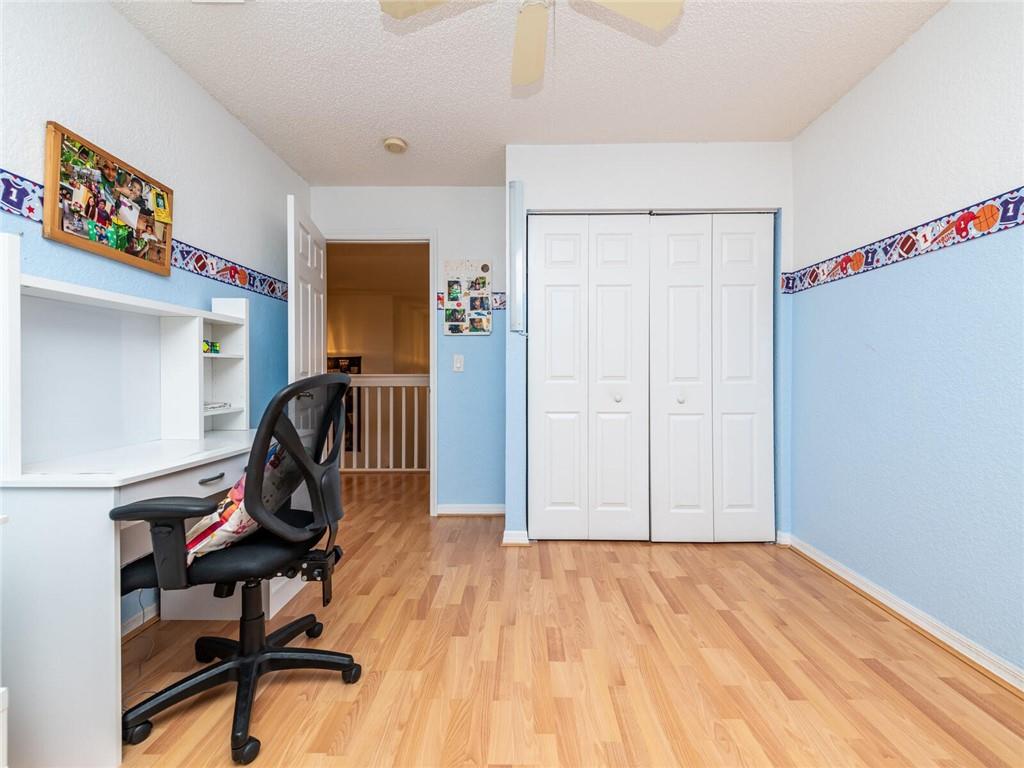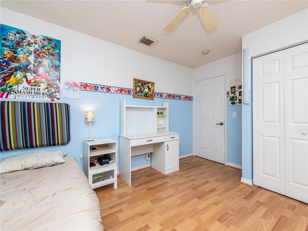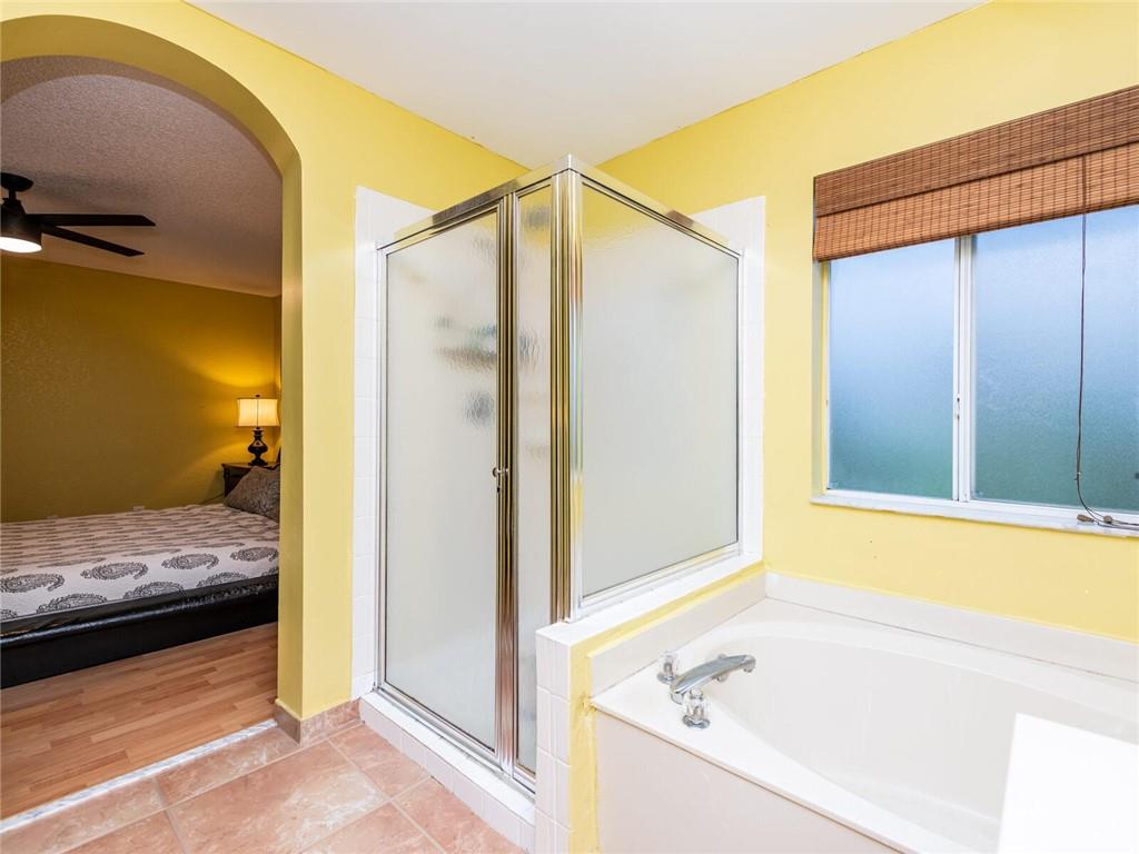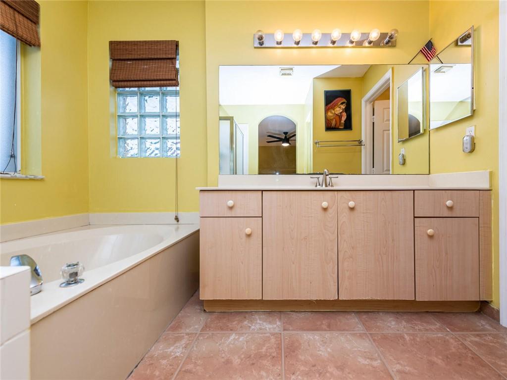 This stunning 4-bedroom, 2.5-bath, two-story home is impeccably kept on a quiet street in a gated community with an outstanding school district. The community features tree-lined streets and a gated entry for security. Main floor has soaring vaulted ceilings with a wonderful open floor plan, remodeled wood and granite kitchen, stainless steel appliances, and an island. It's the original roof that has never had a leak. Master bedroom has a separate shower with roman tub and a large walk-in closet. 2nd story has all wood floors. Home is equipped with hurricane panels and a 2 car garage.