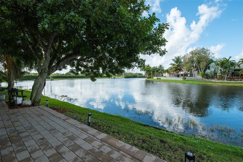Gorgeous Lakefront home! Excellent water views from the kitchen, living room and bedroom. Large kitchen with plenty of counter space, Quartz island, sub zero refrigerator and excellent appliances. Built in microwave. Impact glass windows and sliding doors. Homeowners insurance is low. The home has a circular driveway, brick paver deck and tropical landscaping. The home features three bedrooms and three full bathrooms. Laundry tub. Natural lighting. Brand new hot water heater. Roof was done in 2014. Wired with 220 outlet for electric car. Custom garage floor. Subdivision maintenance fee is $185/month. Fee covers lawn, resort style community pool, some tree trimming and lawn care. Attic has plywood floor. Great location with the best schools, parks, restaurants and shopping.