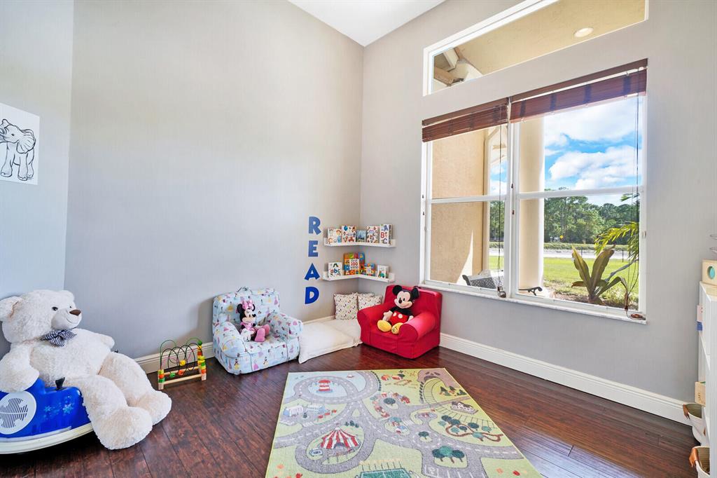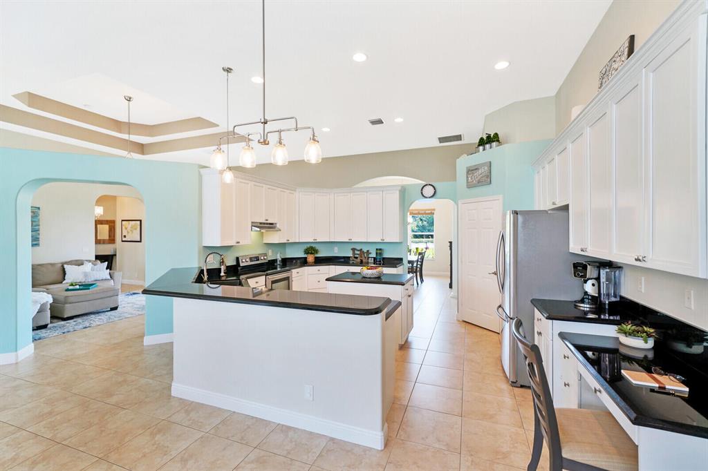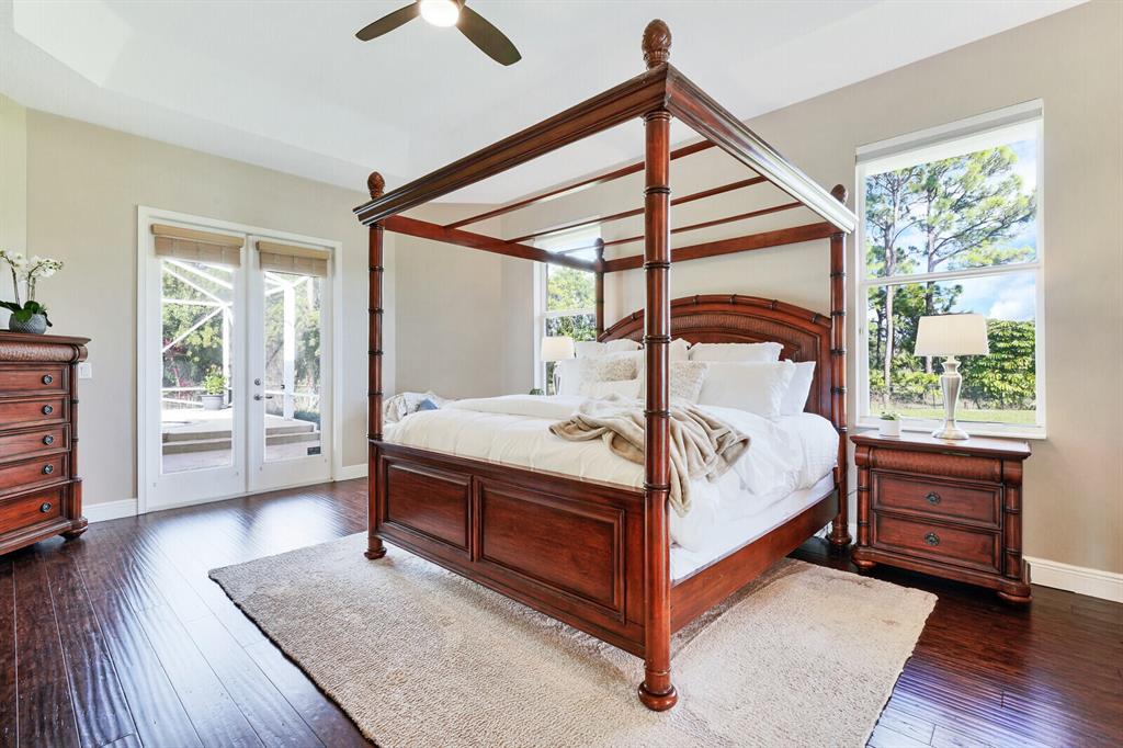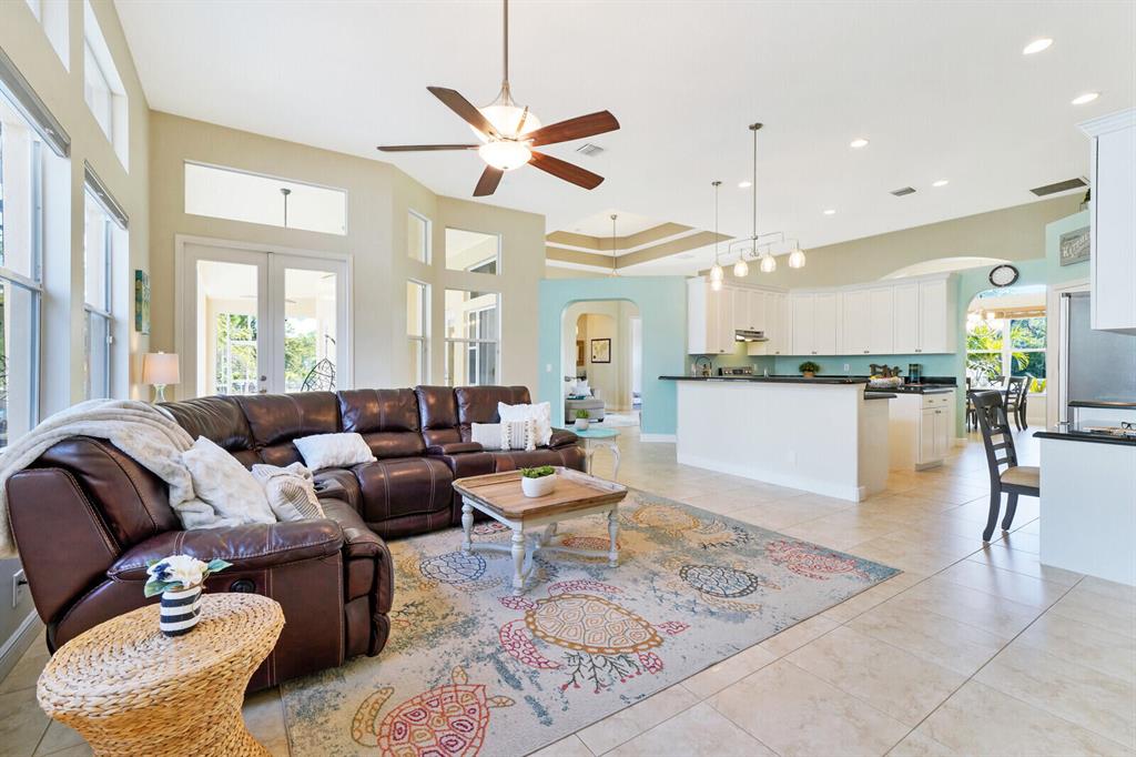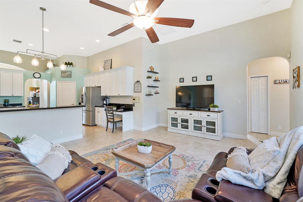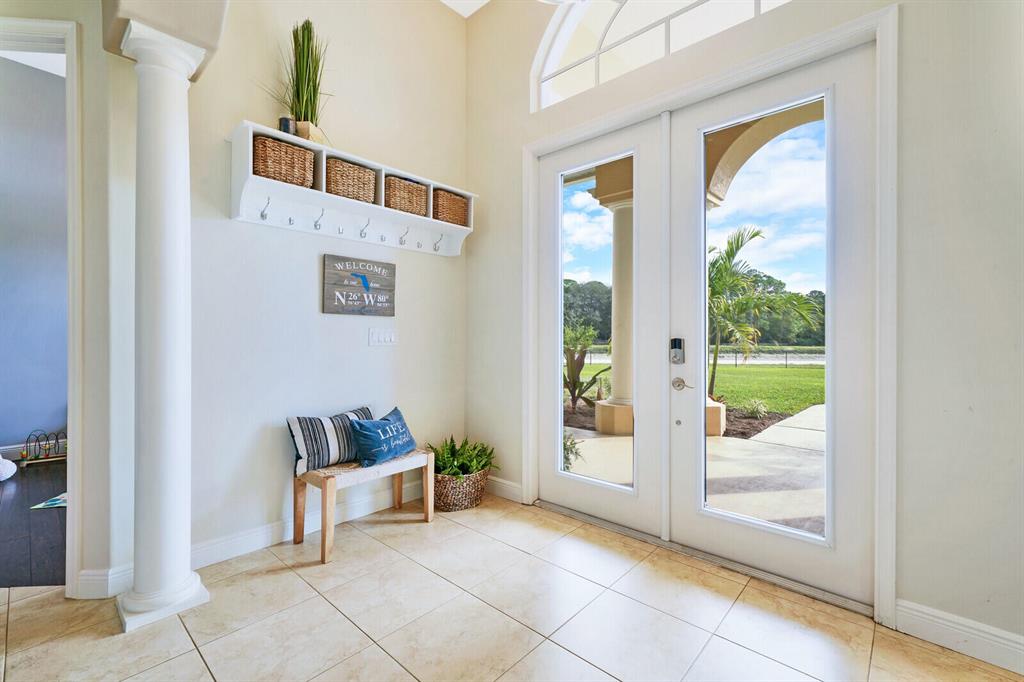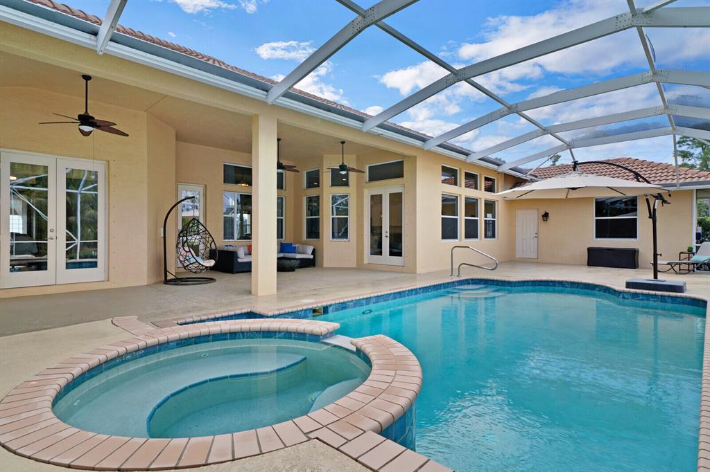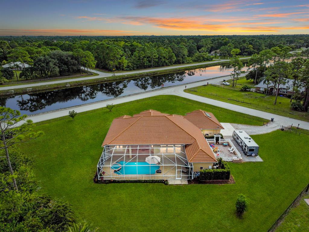 Are you seeking a spacious Floridian home with Smart home features, a sparkling saltwater swimming pool, and a luxe primary suite? Look no further! Supremely located just off a paved road on an enormous and a fully-fenced 2.19-acre corner lot, this 5 bedroom (plus den)/4.5 bathroom, 3,234sqft (under-air) residence conveys immense curb appeal with Mediterranean architecture, tropical landscaping, and a grand covered entrance. Elegantly styled for modern desires and preferences, the luminous interior embraces open concept living with a 3-way split floorplan, attractive ceramic tile flooring, a flood of shimmering natural light, a lovely den/office, and a fabulous formal living room boasting soaring double tray ceilings.