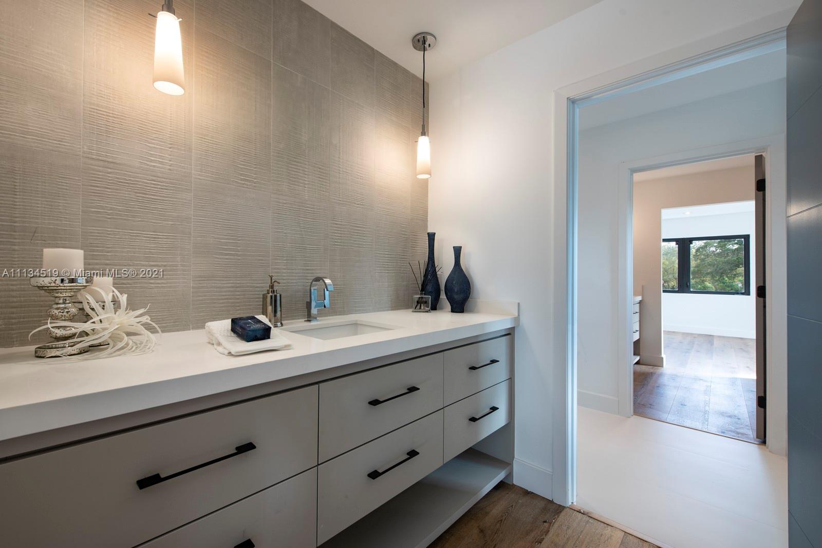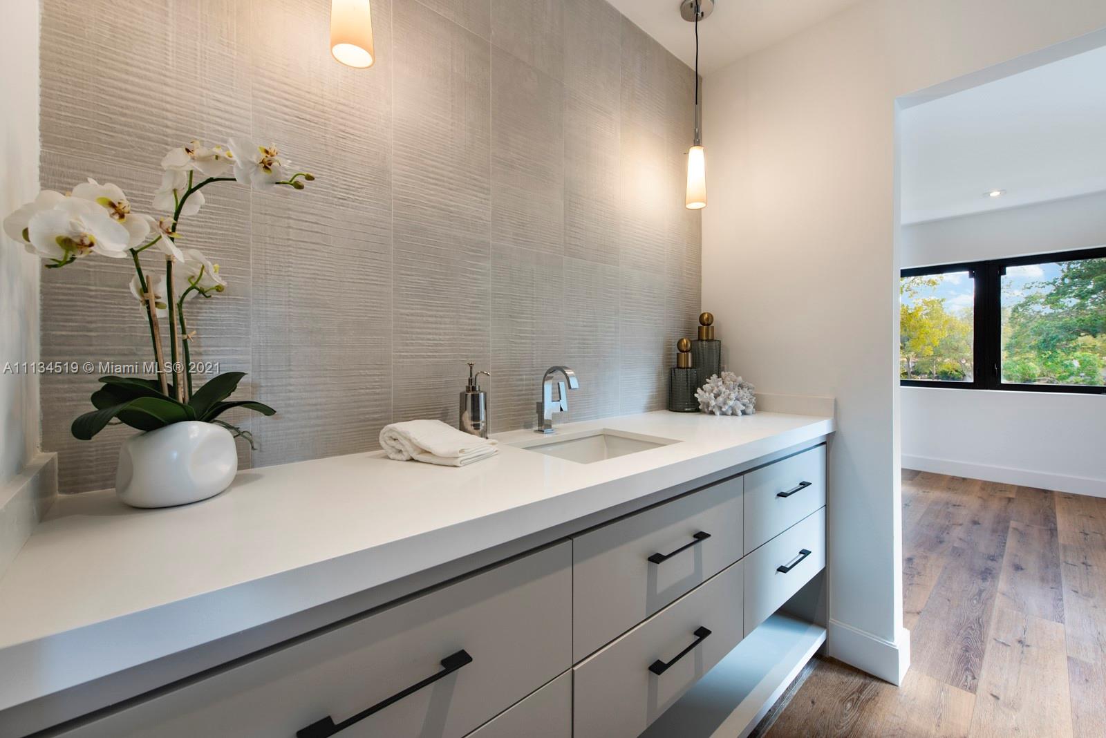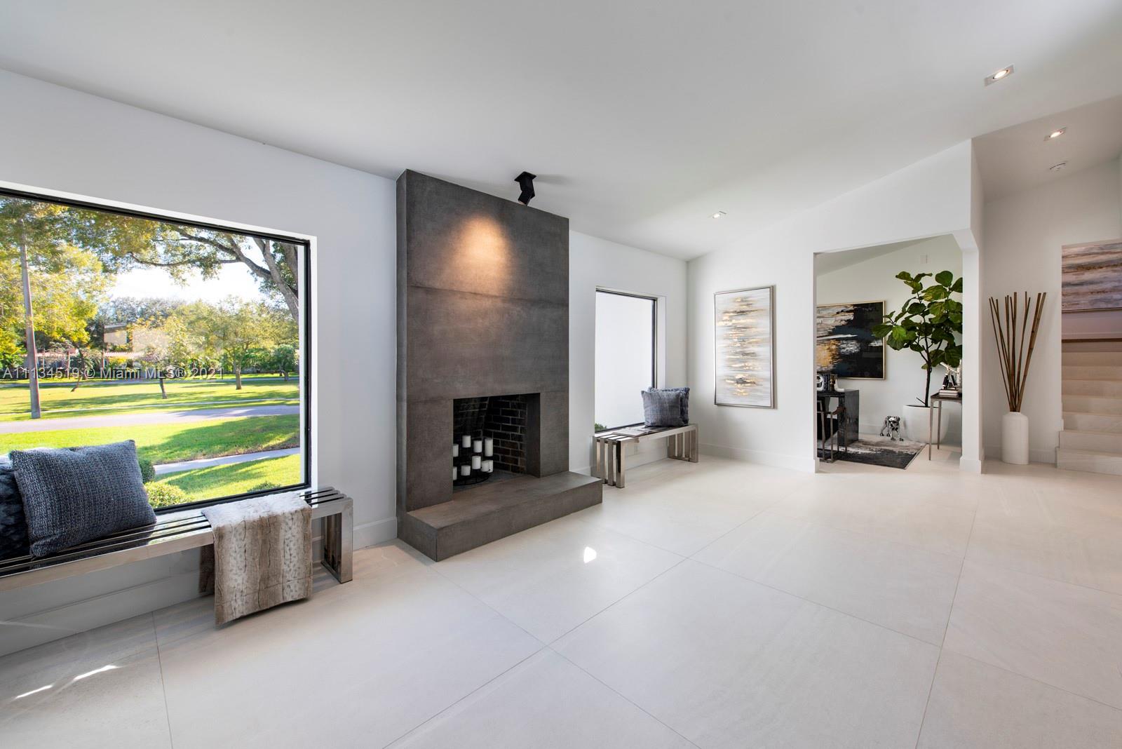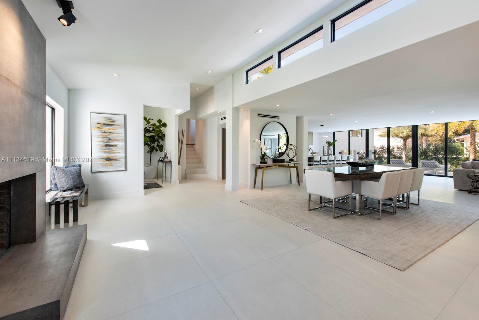 This mid-century modern home is located in the heart of the desirable Village of Miami Shores, situated in front of Constitution Park. The 2021 renovation is complete with cascading terraces, a spacious entry accented with a wood burning fireplace and open floor plan with porcelain floors and sliding doors opening to an equally expansive veranda. The open gourmet kitchen with quartz countertops and full suite of Dacor professional grade appliances. A lower level living space with a full bath could be used for a playroom, office or gym. The downstairs living area offers a wall of sliding doors leading to a covered outdoor kitchen and dining area, fully built out with an ice maker, beverage center, sink and 36” gas grill. Close to shopping, restaurants, and world class beaches!