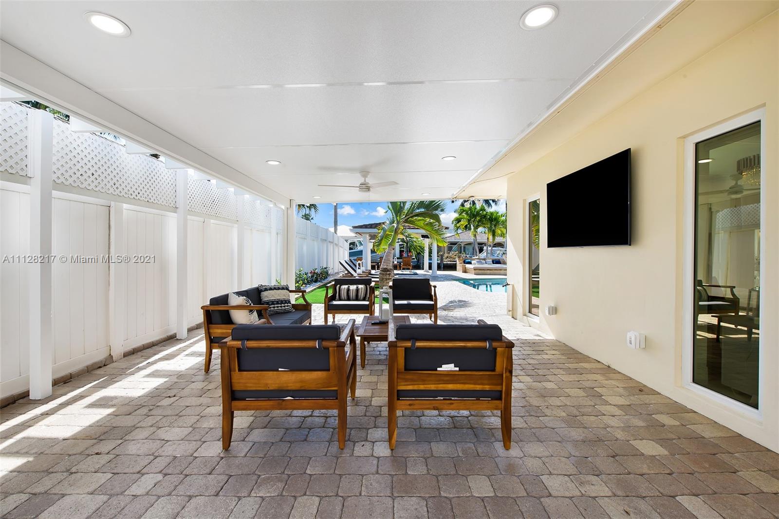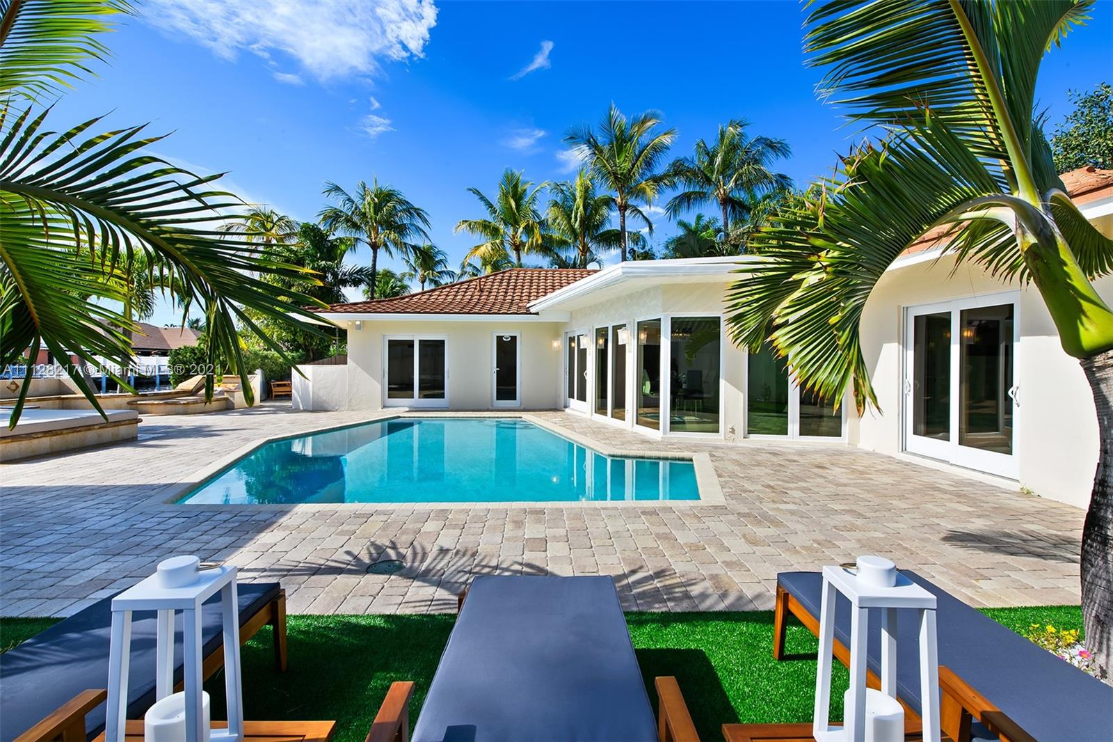 Imagine yourself in a waterfront pool home, completely updated and ready for you to launch right into Fort Lauderdale living. Featuring 85' on the water, a private dock and easy ocean access, this home has a stunning backyard with outdoor lounge, gazebo with spa & TVs, and a fire pit. Inside you will find a brand new chef's kitchen with top tier stainless steel appliances, a living room with a show-stopping fireplace, and a spacious dining room. Just off the kitchen is a family room with a bar to further extend your entertaining possibilities. Newer metal roof (designed to look like barrel tile), impact doors/windows, gas heated spa, integrated smart home, marble paver circular driveway and many more luxe upgrades. Tranquil neighborhood near beaches, schools, shops and restaurants.