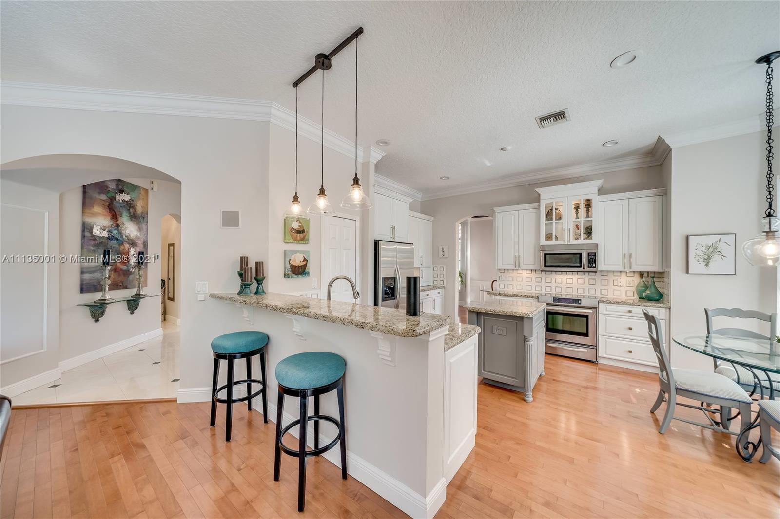 Welcome to the Guard Gated Islands at Weston w/ Playground & Basketball. “A” rated Schools, shops, restaurants. Gorgeous Curb Appeal. This 2 story residence is on a Deep Lot w/ Pool & large fenced yard & covered patio for entertaining. 1st Floor: Hardwood Floors, 1 bed & Full Renovated Cabana Bath, Renovated Modern White Open Kitchen w/ breakfast area, Living, Dining, Family Rooms, Electric Fireplace, Large Laundry Room, Hurricane Panels. 2nd Floor: 4 beds & 3 baths: Renovated Main Bathroom w/ modern tub & split vanities, 2nd bed is ensuite, beds 3 & 4 share a renovated hall bath. Accordion Shutters. New Roof 2019. AC units 2015,2017, Water heater 2016, 1374 Ginger Cir right next door (smaller house) just closed $1,249,000. Inspection Done. **multi offers**