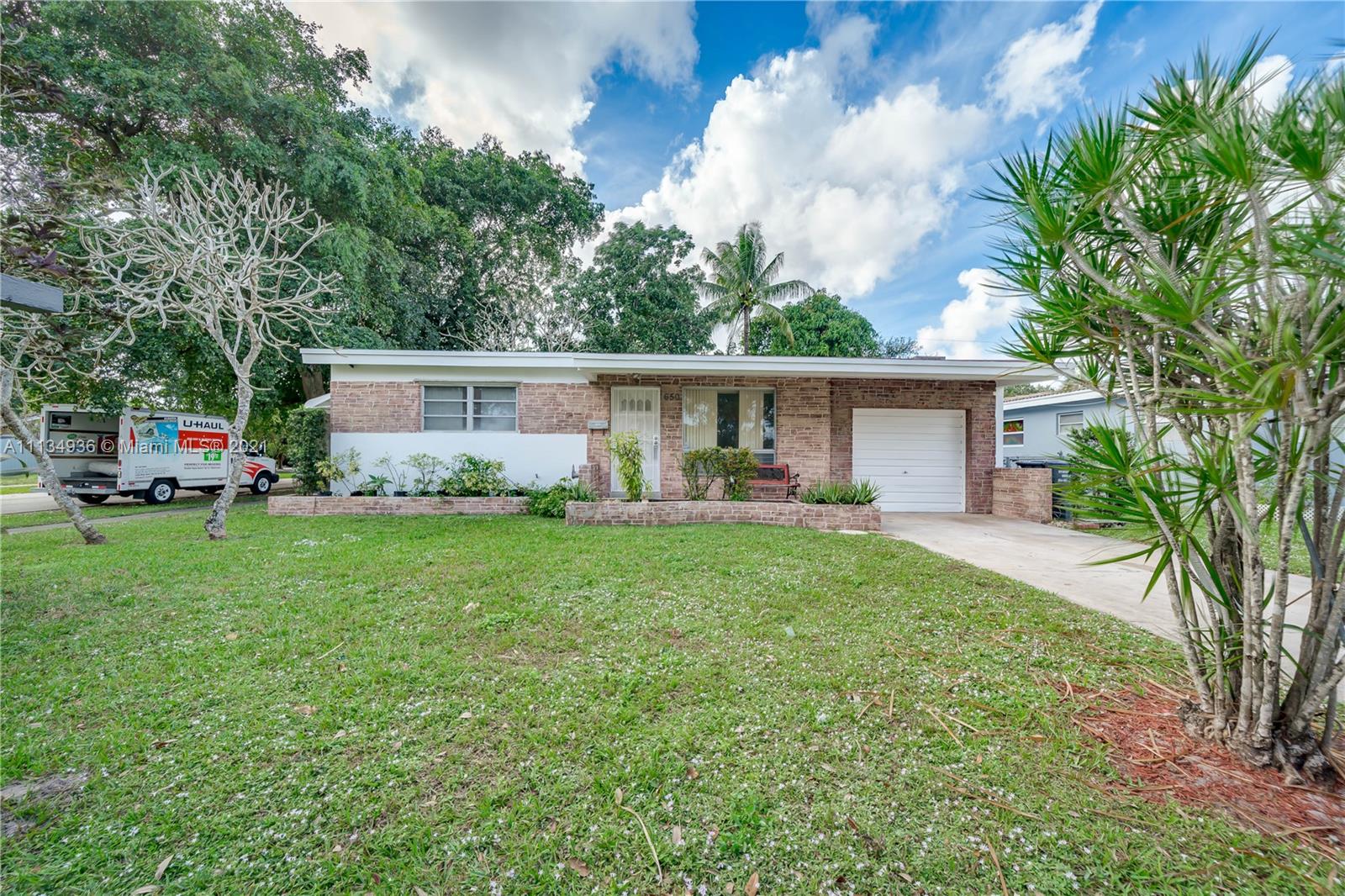 This stunning 3 bedroom 2 bathroom home is situated on a large corner lot bearing delectable fruit trees and lots of shade creating the perfect oasis for BBQ's, entertainment, and family fun. This beautiful home features spacious bedrooms with water resistant laminate wood floors. The 3rd bedroom is currently used as a Florida Room which creates an expansive living area perfect for family gatherings which can easily be converted back, or used as a den/office space. The home is freshly painted, has new appliances, A/C 4 years old, Roof is 5 years old, and is move in ready! The home is located in the heart of Hollywood 20 minutes from award winning beaches, air and cruise ports, and cultural arts district and parks home to music festivals, shows, art exhibits, and much more. A must see!