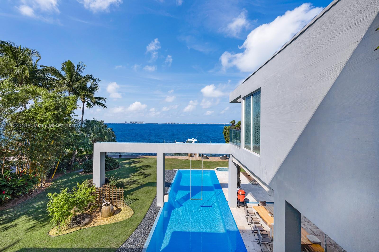 Custom Zen inspired 2 story waterfront private oasis located on the quiet side of Key Biscayne’s most spectacular street, Harbor Drive. Nestled on a 20k sf lot, with 100 ft waterfrontage. Boasting breathtaking unobstructed wide water views of Biscayne Bay and Miami’s Downtown city skyline. Natural light illuminates soaring ceilings and open floor plan. Large Master Suite features private balcony and spa inspired separate shower and soaking tub. Enjoy amazing sunsets from generous covered outdoor living areas and resort style back yard, pool and spa. Opportunity to easily convert to 6 bedrooms. Additional features include media room, elevator and 2 car garage. Designed for those seeking to relax, entertain, and embody all Miami has to offer. Live every day in your own “Aman” style resort.