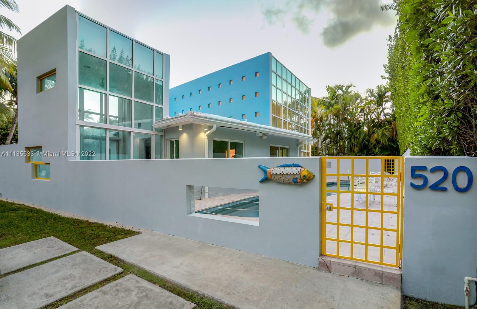 An Arquitectonica-designed beach house for modern living, located in a corner lot of the prestigious Harbor Drive. This "Deconstructed Cube"perfectly balances openness, natural light and privacy; plus, the house comprises 4 Beds. & 4 Baths, in addition to a Study/Family Room Area. The Living Room boasts a 20' ceiling & a row of sliding doors that open fully into the pool area, allowing for a wonderful inside-to-outside entertainment space for parties and large family gatherings. There is both a dining area & a breakfast "glass cube"area that opens into both outdoor terraces. The 56x6 :WAVE" lap Pool is a classic Architectonic shape. At night, the house Blue light Walls turn into an illusion of a cruise ship. This house is an architectural gem. All reasonable offers will be considered.