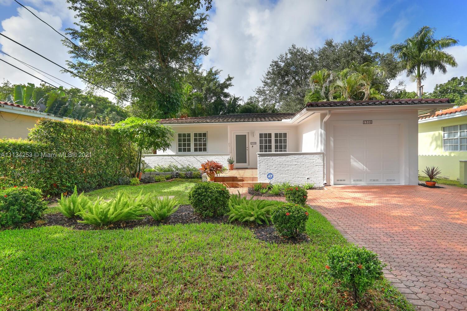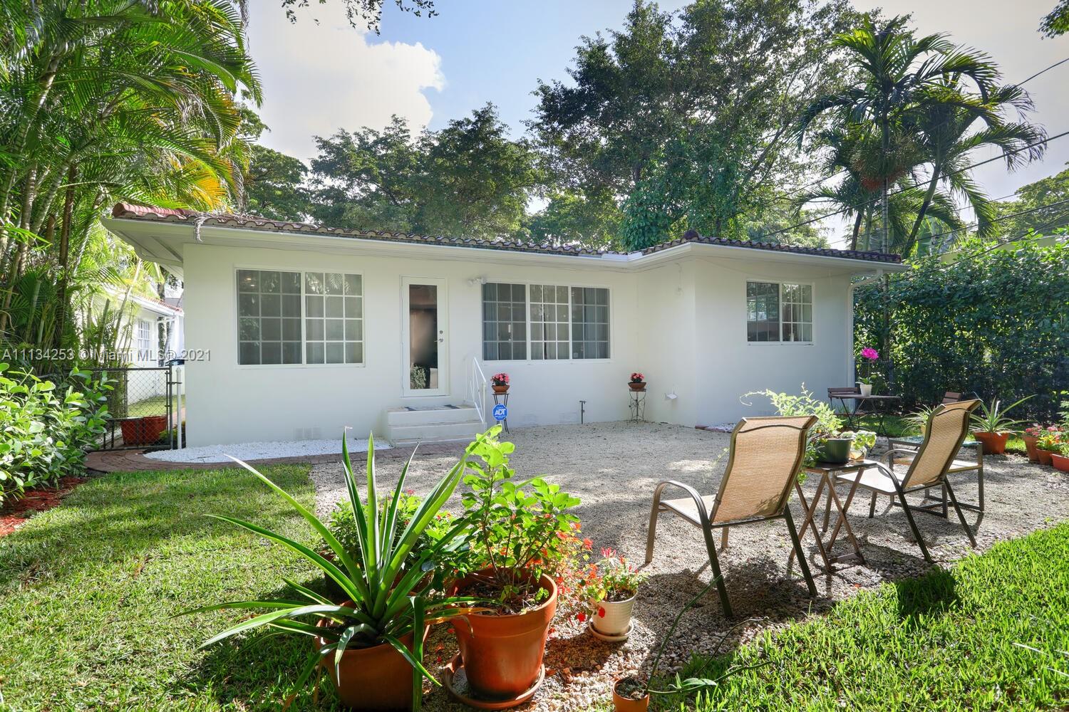 Charming home on a quiet, tree-lined North Gables street. Minutes to world-class shopping, dining & entertainment in downtown Coral Gables. Light-filled living spaces with beautiful hardwood flooring throughout. Updates include impact windows & doors, both bathrooms & AC system. New, modern-style kitchen features white cabinetry, stone countertops & breakfast bar. Enjoy outdoor living in the private back yard with lush tropical foliage & ample room to add a pool. One-car garage. Close to Coconut Grove & Miami International Airport.