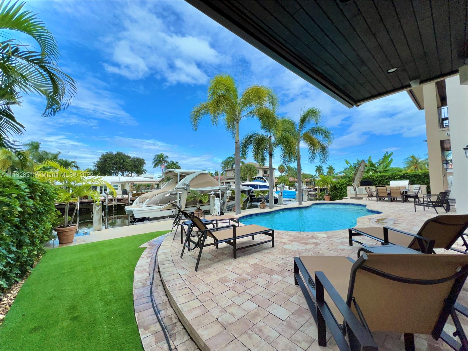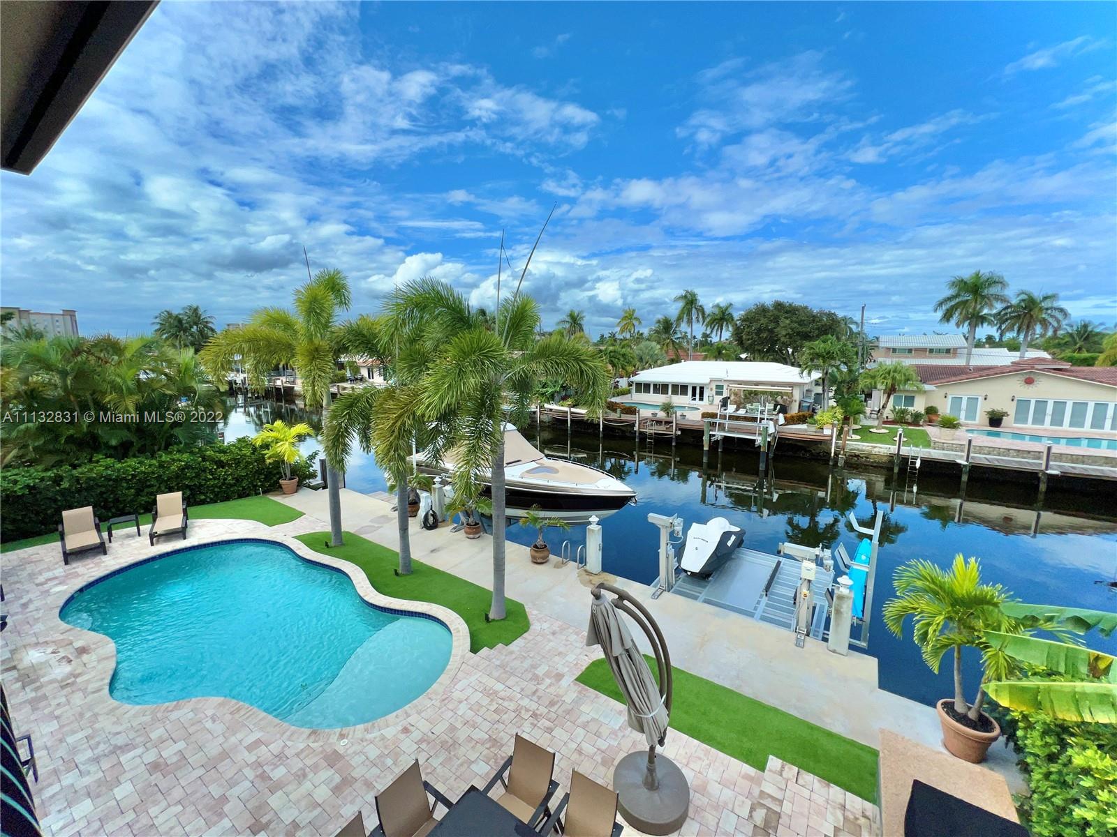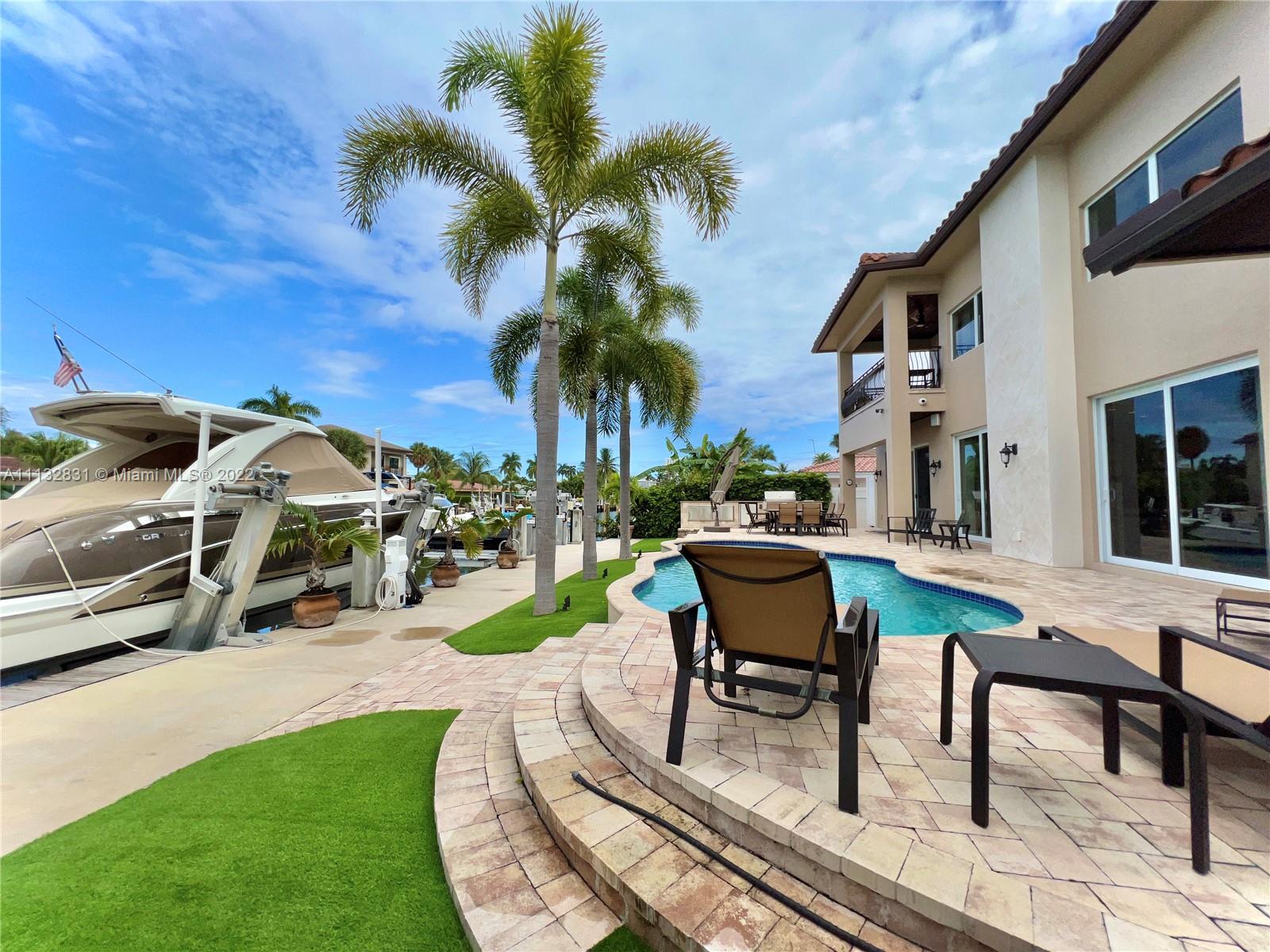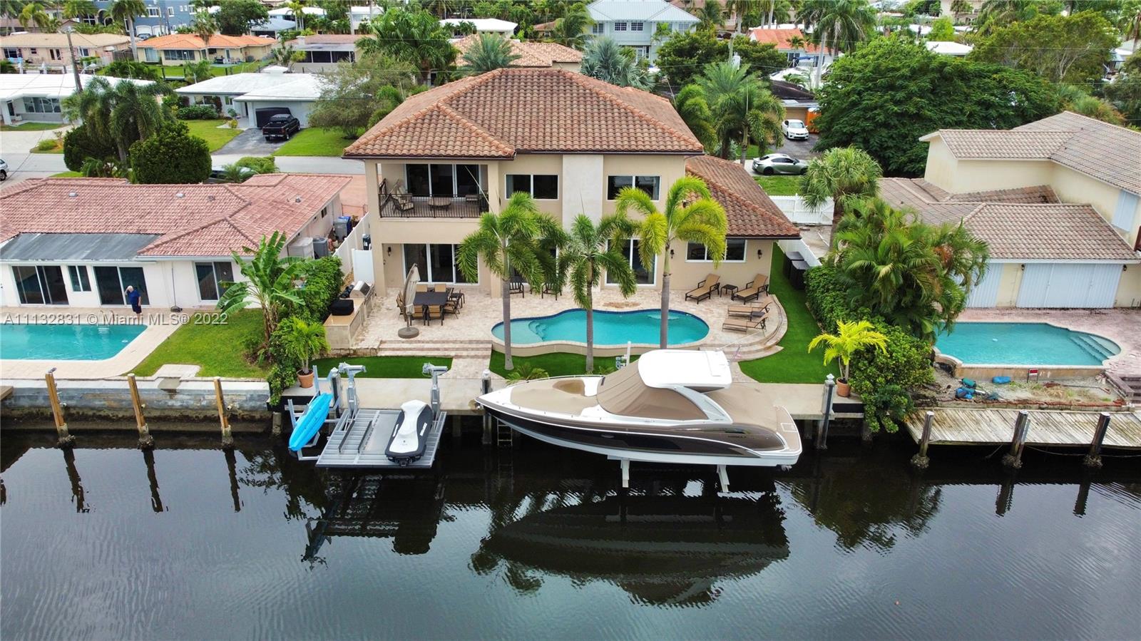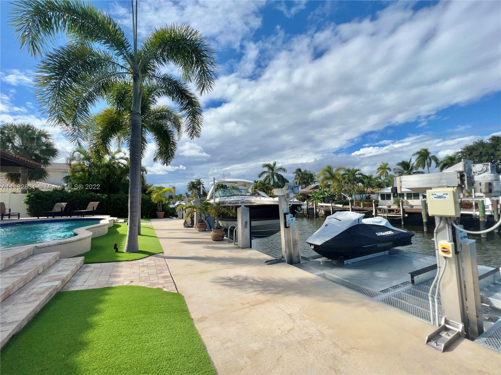 Amazing WATERFRONT/BOATERS PARADISE home that you've been waiting for. Newly built in 2013 with no detail overlooked or expense spared, it is truly turn-key. As you enter this waterfront masterpiece you are greeted with the serenity that comes from living on the water, it is open, bright, and spacious; features include volume coffered ceilings, marble and wood flooring, granite counters, generous loft - perfect study area or office complete with a covered balcony overlooking the water. The outdoor area is perfect for entertaining poolside, complete with built-in grill & pizza oven; bring your yacht, Jet skis and water toys, there are lifts for both, the garage is air conditioned for your land toys; for the family that is looking to enjoy the best of South Florida Living. Bring Offers.