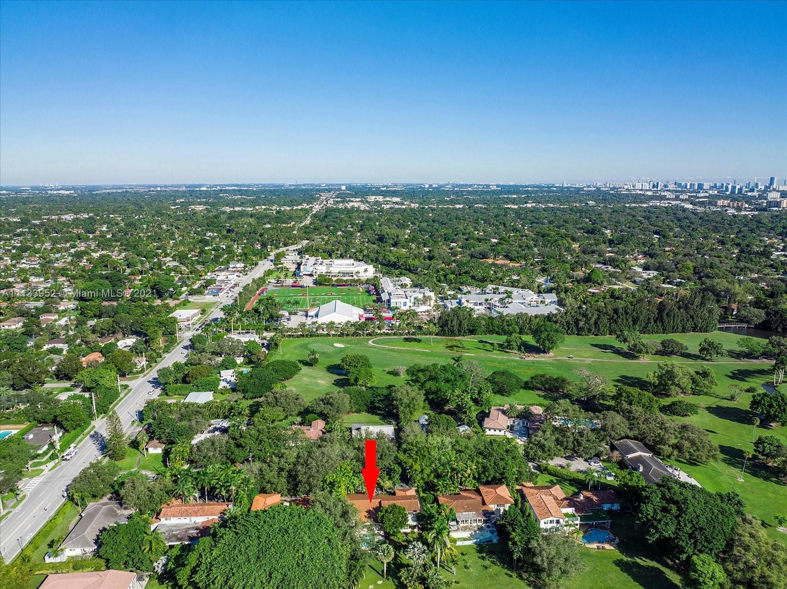 Gorgeous Golf Course views from this stunning and completely renovated 5 bed/5.5 bath house on very sought after 105th street in Miami Shores. The beautiful covered patio, outdoor kitchen, heated pool w jacuzzi overlooking the Golf, are perfect for entertaining. The tastefully remodeled house features wood floors, Carrara marble kitchen and bathrooms, a large office space, indoor sauna, natural gas fireplace, sound system, natural gas generator that covers the entire house, high impact windows and doors, 2 car garage with A/C, a spacious laundry room, built in safe, security system, professionally designed landscape and a beautiful deck. Centrally located at walking distance from Country Day school, the recreation center, tennis, restaurants and shopping.