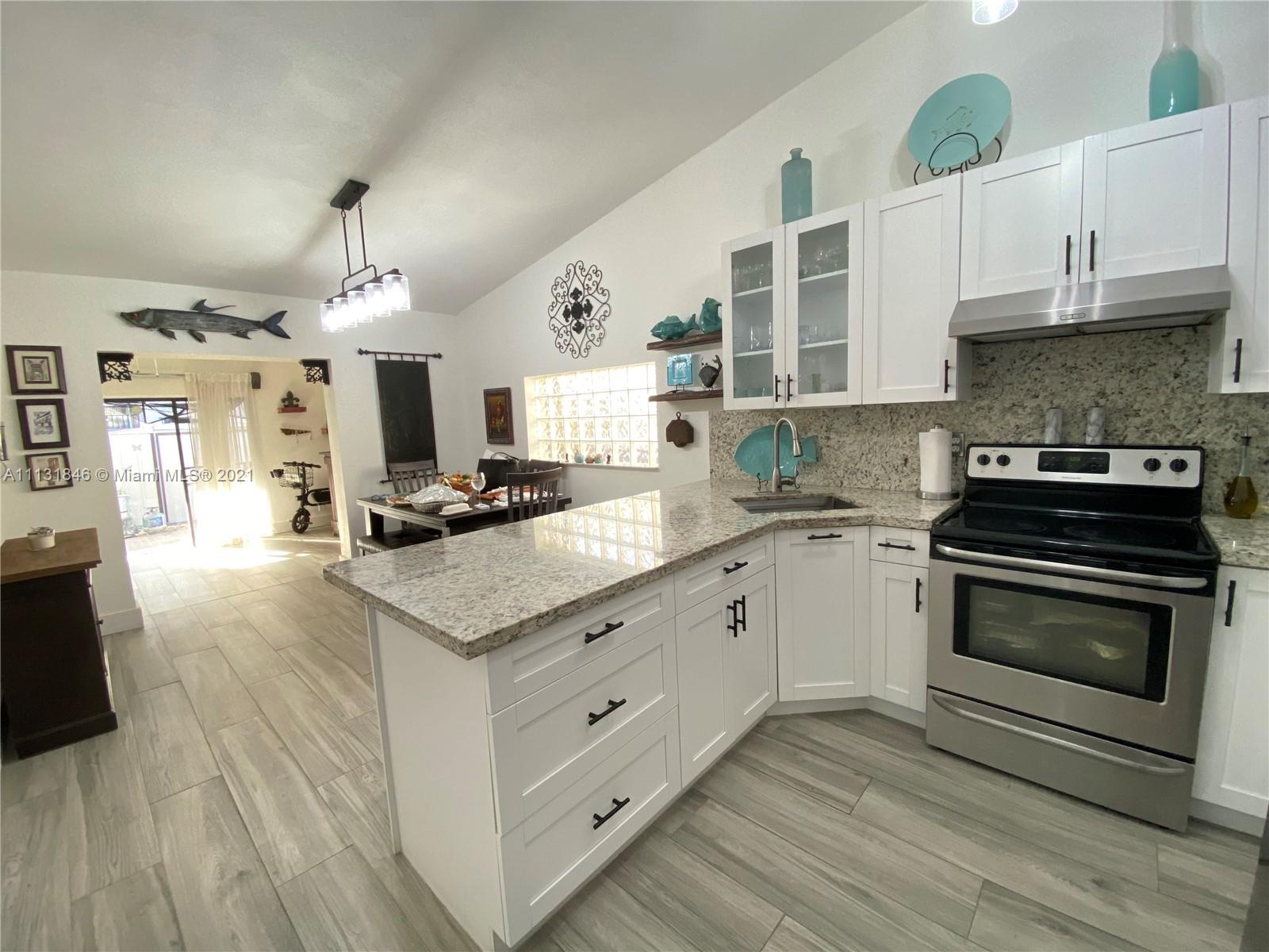 This one of a kind, fully-renovated 2/2 home features wood plank porcelain tile throughout the entire house, spacious kitchen for cooking and entertaining for all your guest to enjoy. Master bedroom with two walk in closets and beautifully upgraded bathroom. Home features an open and inviting floor plan. Walk outside and relax under a covered patio great for entertaining while looking over to your 6 person jacuzzi. You have a full size outdoor kitchen for cooking and grilling. Home has brand new roof, new AC and hurricane panels. No HOA. This beautifully renovated home will not last!