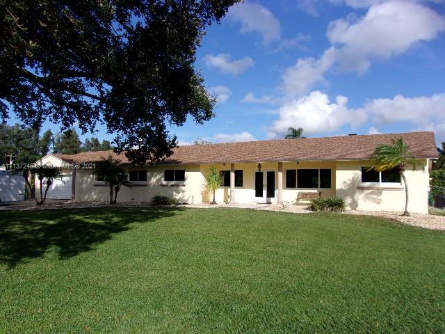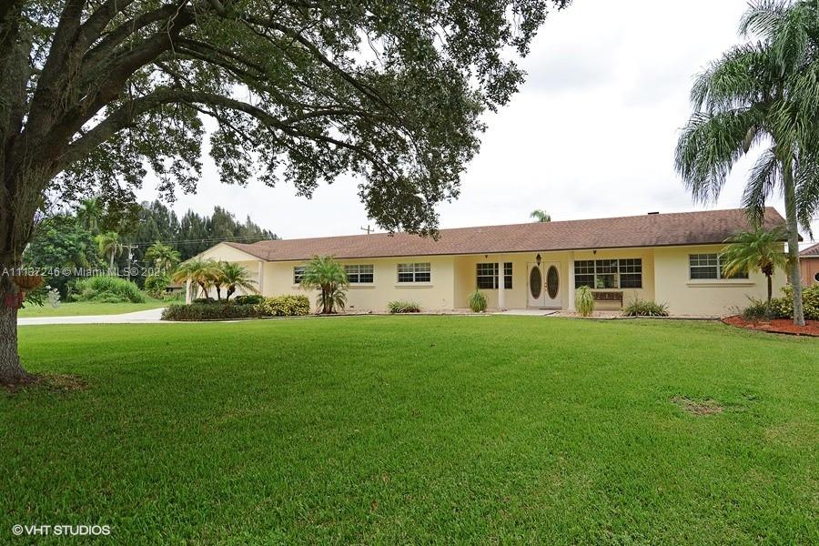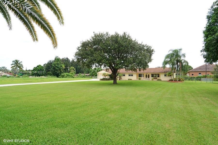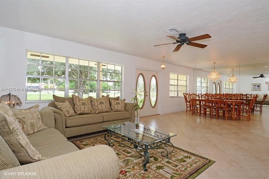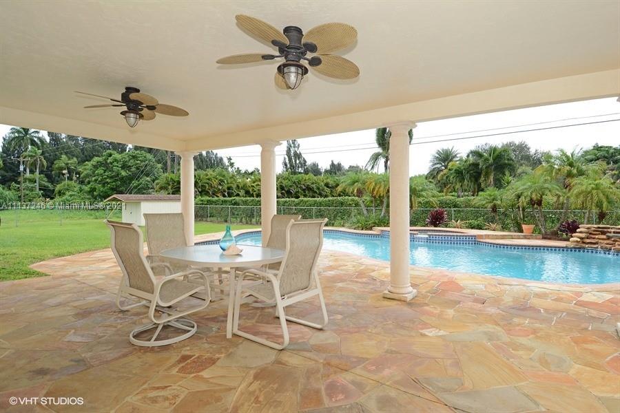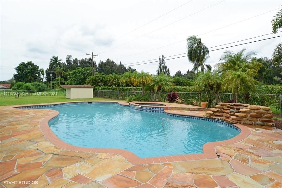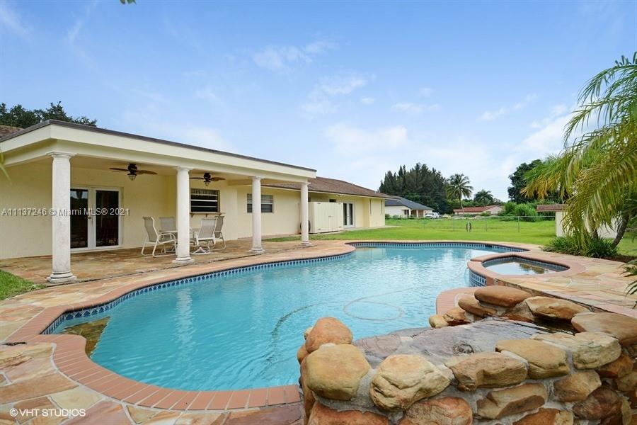 Spacious and bright home with all new PGT double pane impact windows and doors added since these pictures. (last 4 pictures show new impact) Full acre home site located on a quiet street which is part of the Davie horse trails. Many upgrades include: New Exterior Paint, Porcelain Tile throughout, Coral Keystone Fireplace, Pool & Jacuzzi with electric heater, 500 amp total electrical service, bathrooms & kitchen with granite. Triple Split Floor Plan with 2 master bedrooms. 3 car garage (33x18) with a 2 car garage door. Concrete driveway can hold 10 cars. No home owners association. Boat & RV parking with 30 amp electric hook-up for both. Horse friendly area. 3 Dimensional Shingle roof replaced in 2005. Well Water and Septic System.