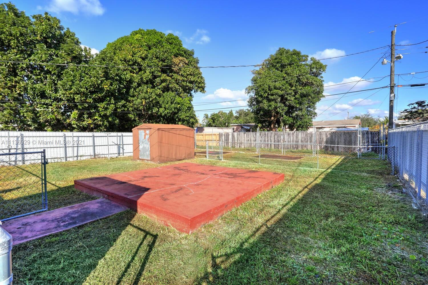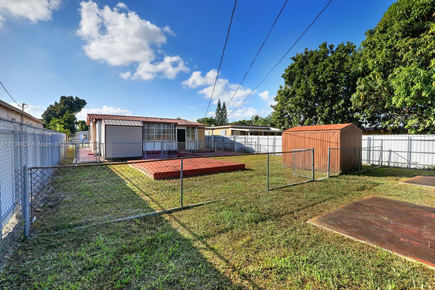 Well-maintained 3BR/1BA home on a 6800 SF lot. Updated kitchen with wood cabinetry. Features include: tile flooring throughout, recessed lighting in living/dining & kitchen + a separate laundry room. Large, sectioned off patio with fence, two sheds and enclosed back porch. Close to major expressways for easy access throughout South Florida.