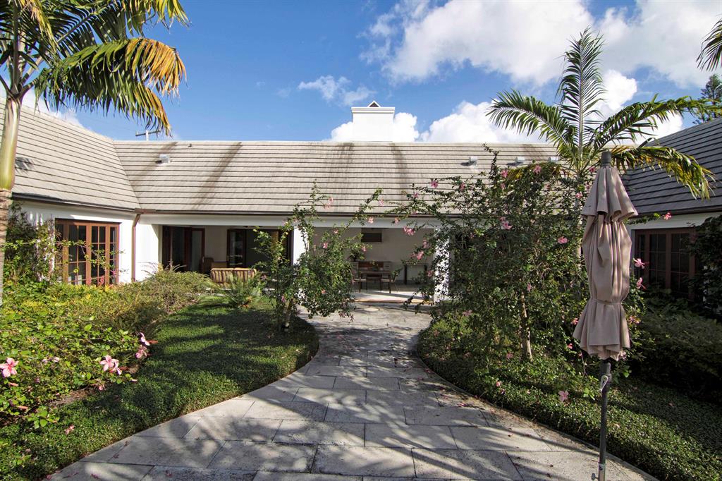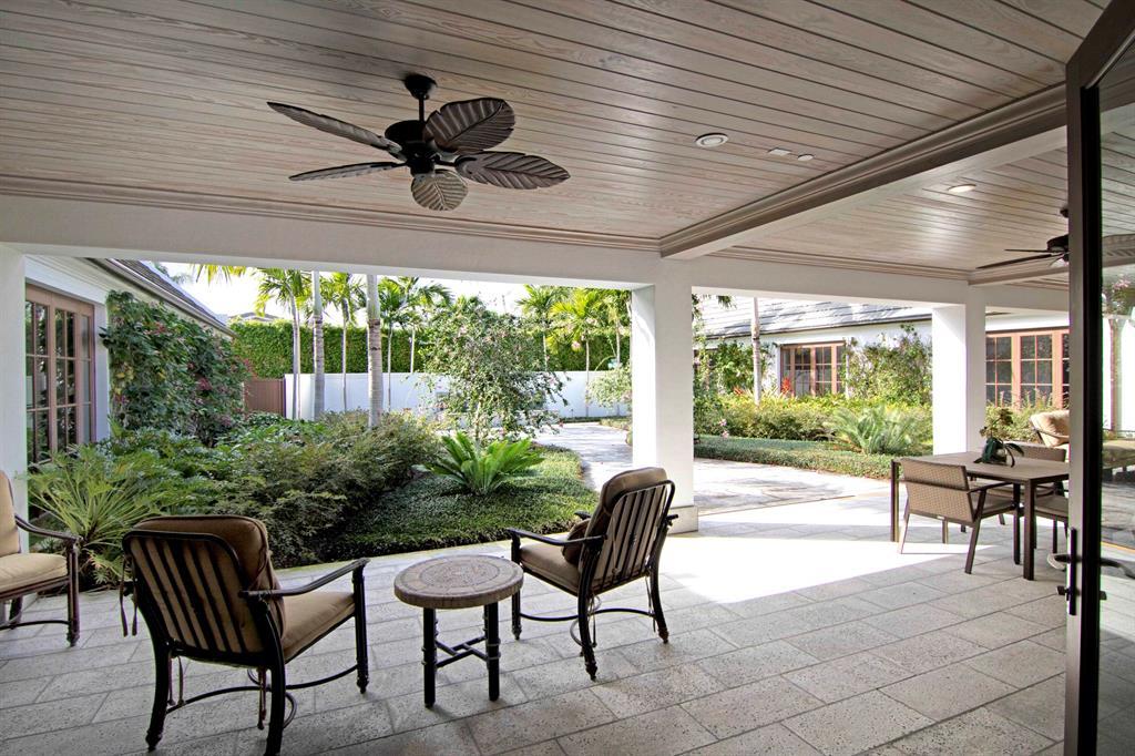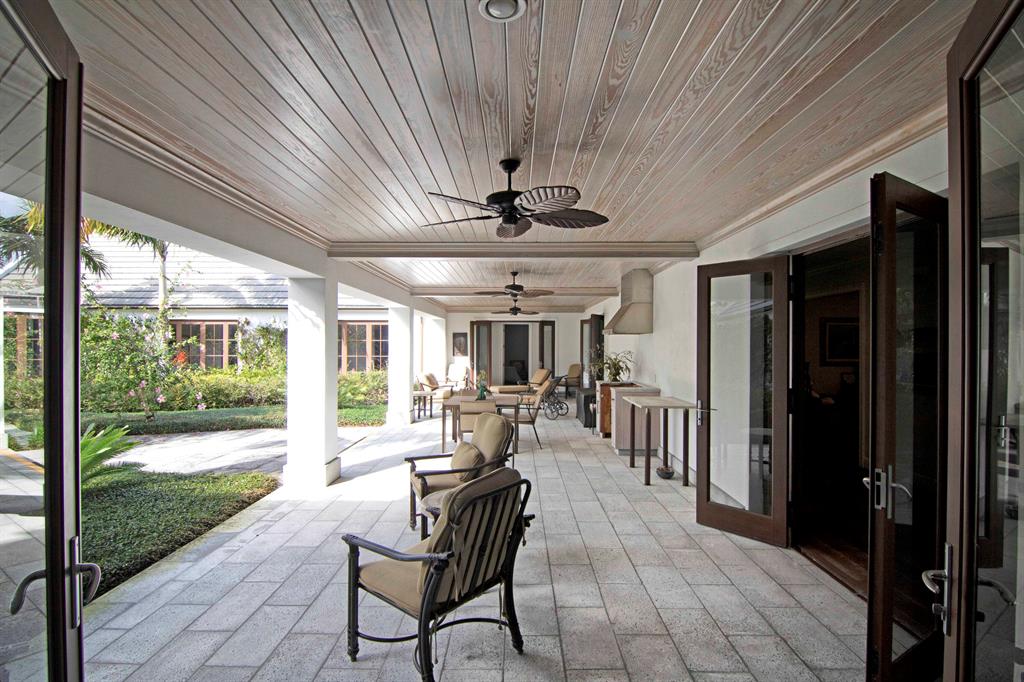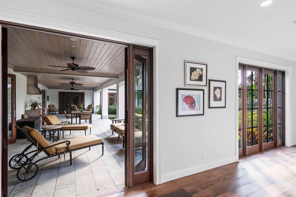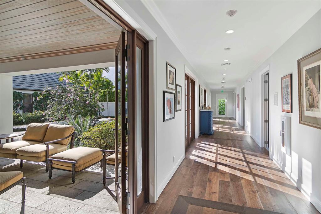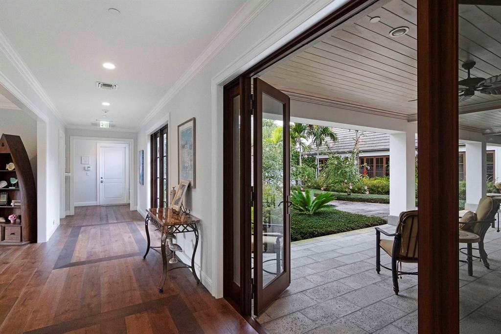 Built new in 2016, this huge U shaped ranch style home lives like a Caribbean palace. The inside perimeter of the home has an extra wide hallway that faces the large landscaped courtyard on all 3 sides. The hallway is almost the focal point of the home. It is the transition threshold from indoor living to covered and uncovered outdoor living. Through numerous French doors and glass openings you experience the courtyard from almost every point in the home and visa versa.