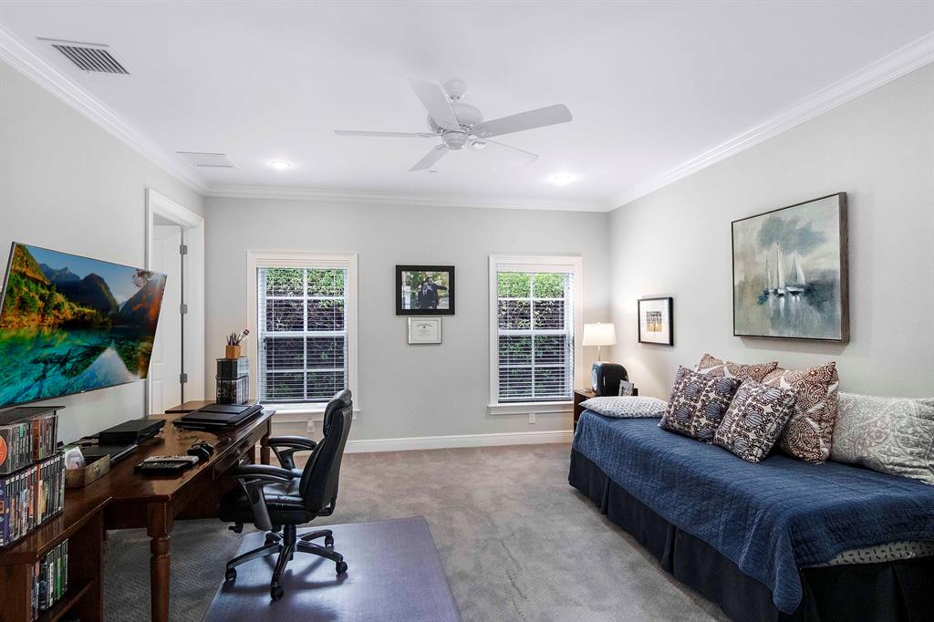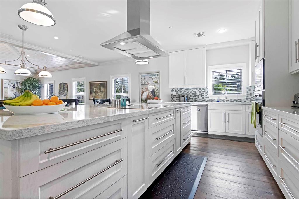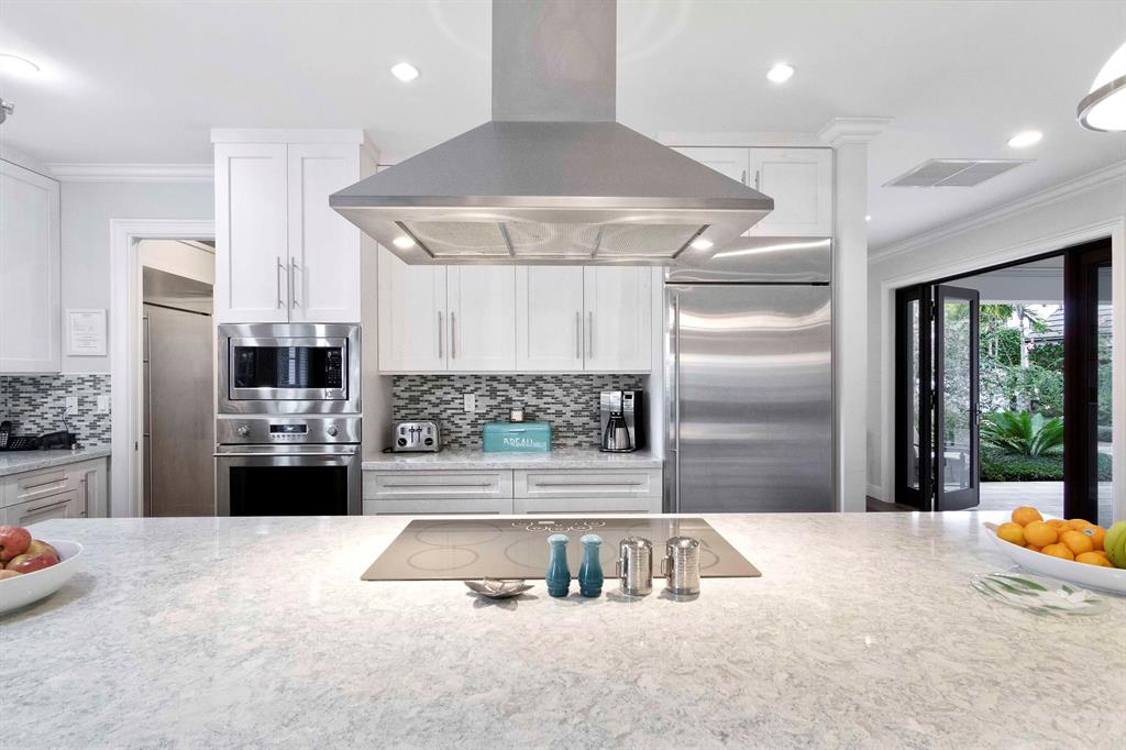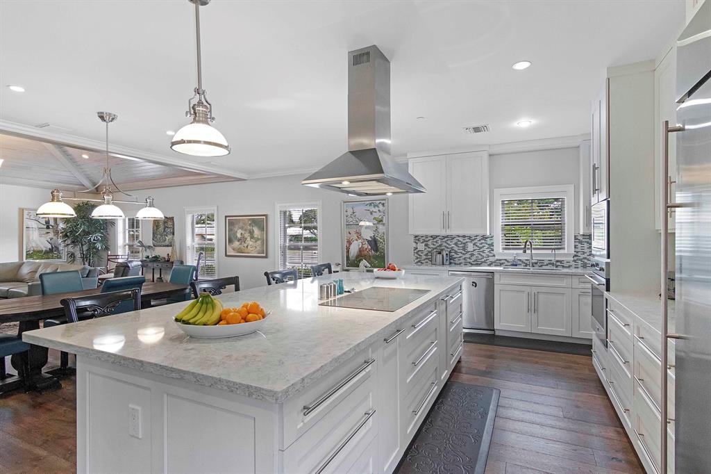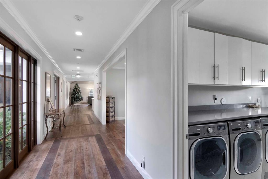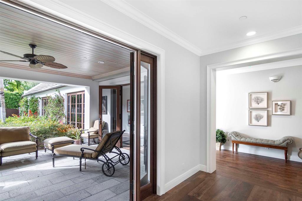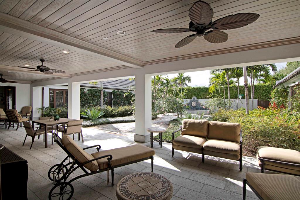 Built new in 2016, this huge U shaped ranch style home lives like a Caribbean palace. The inside perimeter of the home has an extra wide hallway that faces the large landscaped courtyard on all 3 sides. The hallway is almost the focal point of the home. It is the transition threshold from indoor living to covered and uncovered outdoor living. Through numerous French doors and glass openings you experience the courtyard from almost every point in the home and visa versa.