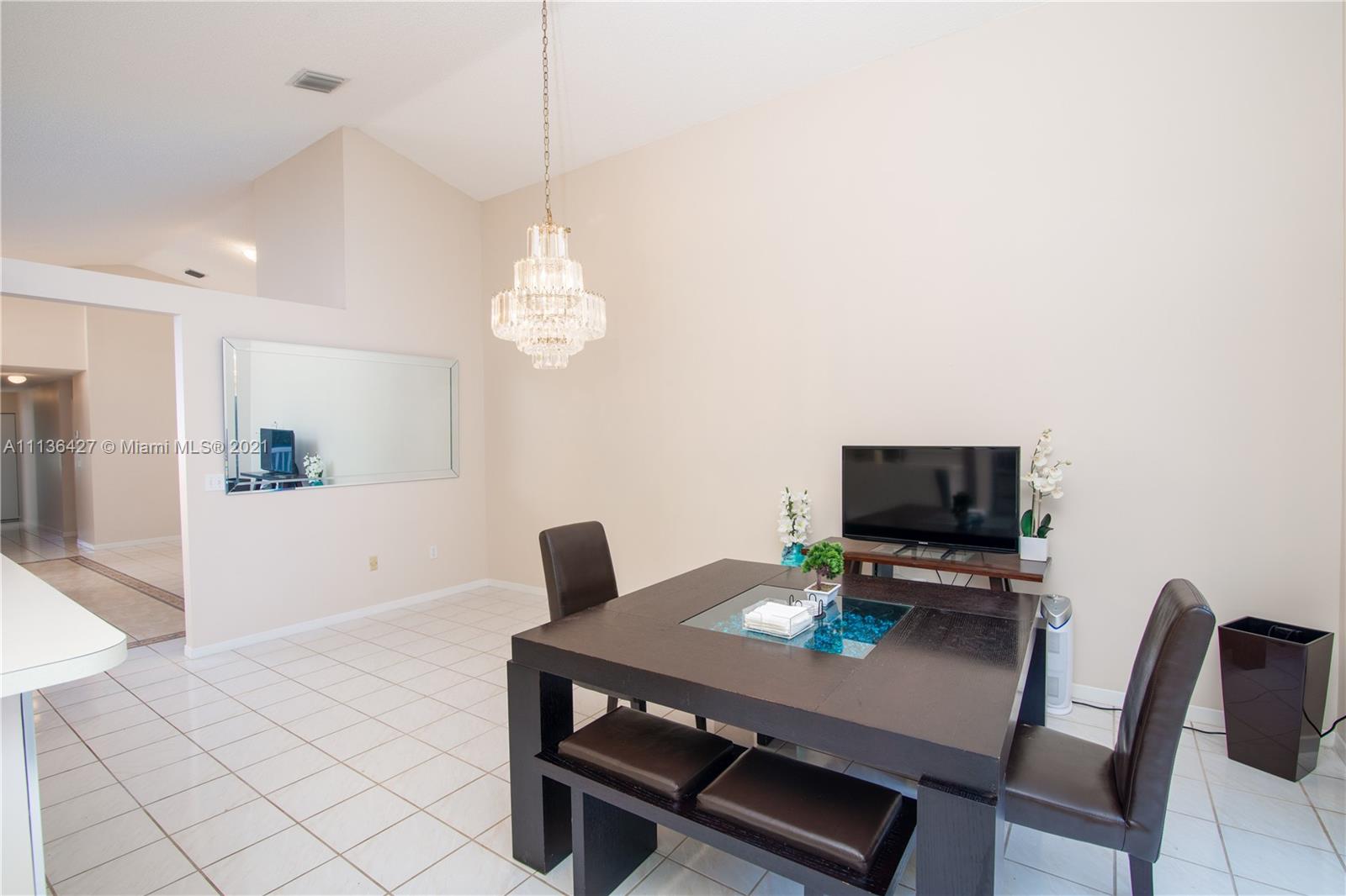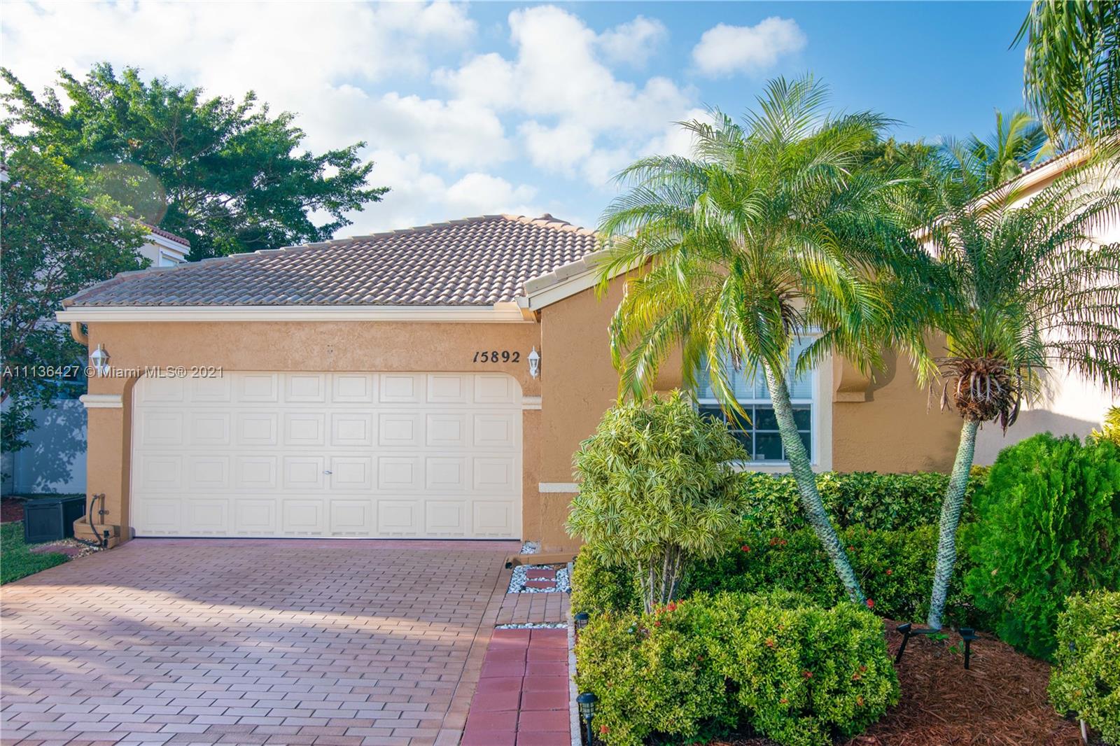 ONLY A HANDFUL OF ONE STORY HOMES LEFT IN TOWNGATE! Live in one of the most sought after communities in West Pembroke Pines, Towngate! Highly desired model with 3 bedrooms, 2 full baths and a 2-car garage. You will find it easy to call this house a home from the minute you walk in! Warm earth tone colors throughout, along with vaulted ceilings in the kitchen, dining room, living room and master bedroom. Easy to keep this home clean due to all tile floors throughout. Walking distance to lake, clubhouse gym, clubhouse pool, subdivision pool, park, baseball field, soccer field, basketball court, tennis court and playground! Zoned for great schools, one of which is walking distance away! Feel safe living here in this gated community which has 24 hour security guards patrolling the premises.