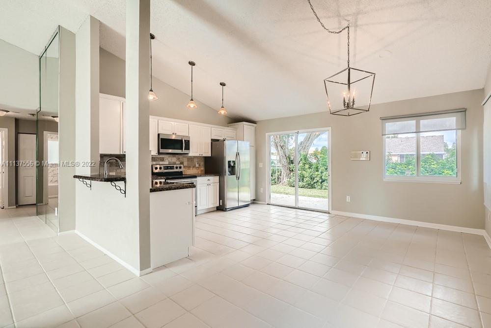 Welcome to your beautiful 3 bedroom, 2 bathroom home in the sought-after Country Park neighborhood! Prepare to be impressed with the vaulted ceilings as you enter the home into the spacious living room. Continue past the dining room featuring a modern chandelier to the elegant kitchen that boasts white cabinetry, durable countertops, and stainless steel appliances. Retreat to the primary bedroom offering generous closet space and an en suite bathroom with a tiled shower. A large patio and landscaped backyard completes this home. Just minutes from several golf courses and easy access to Florida’s Turnpike, you will not want to miss out on this home!